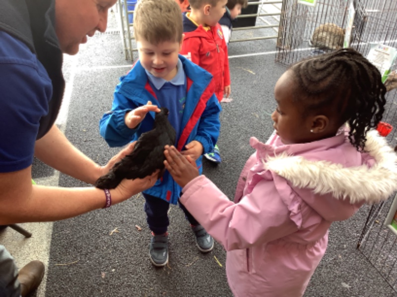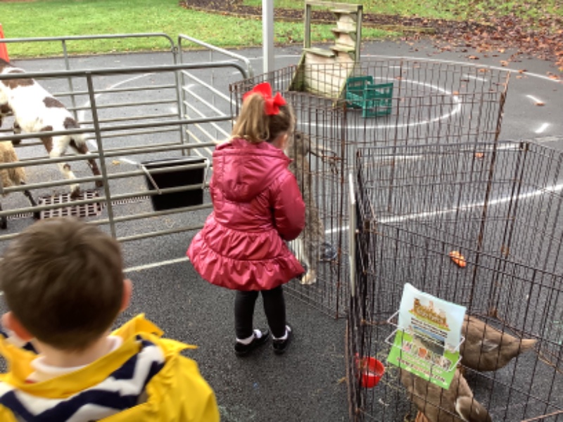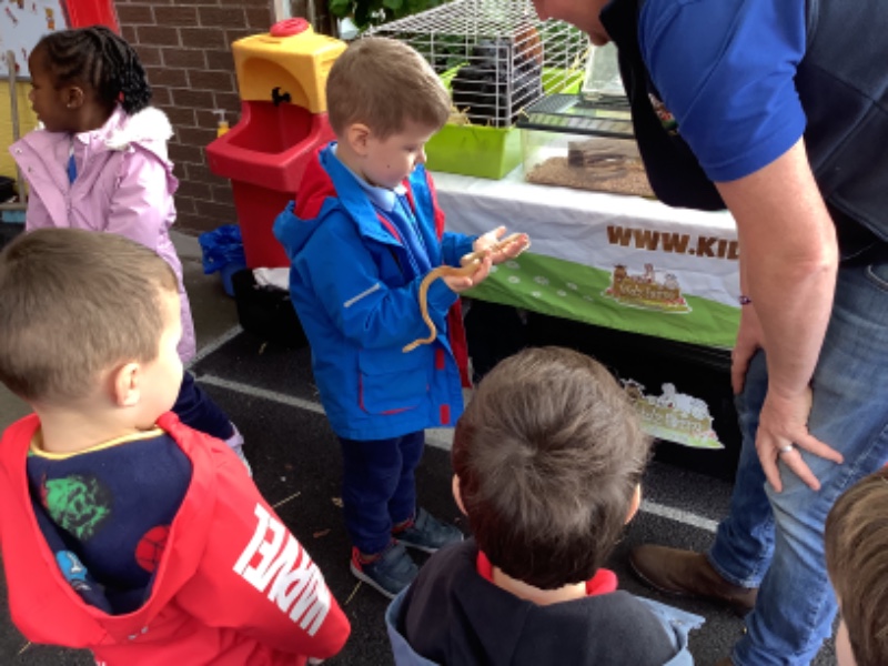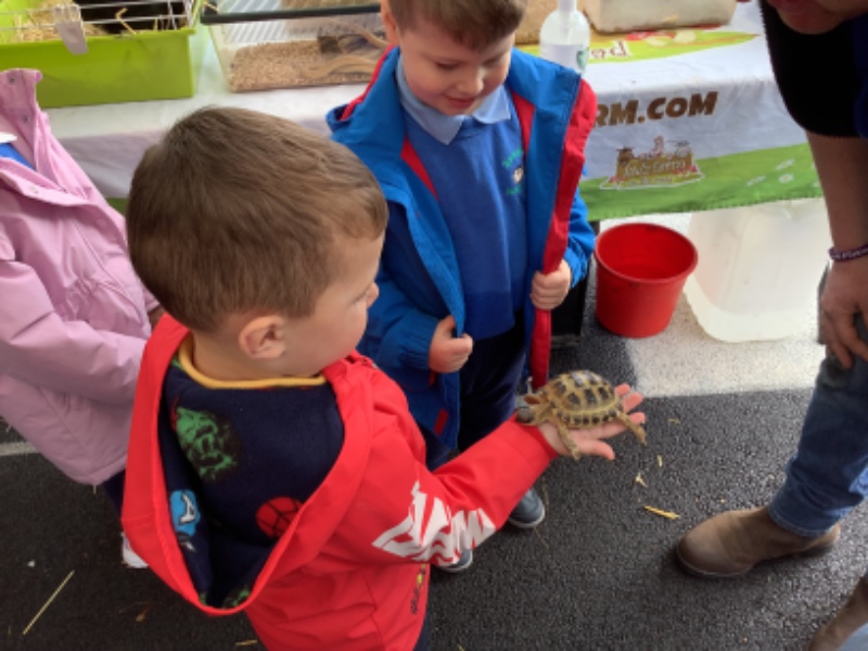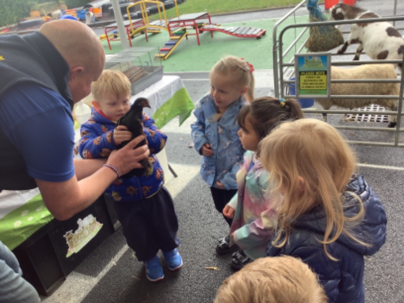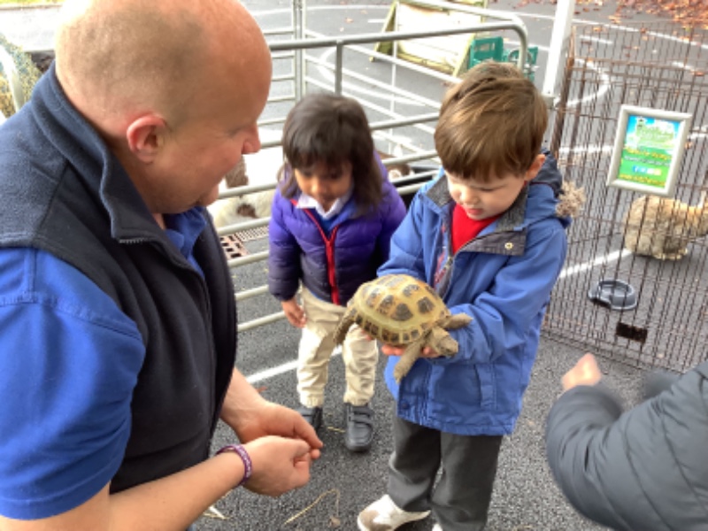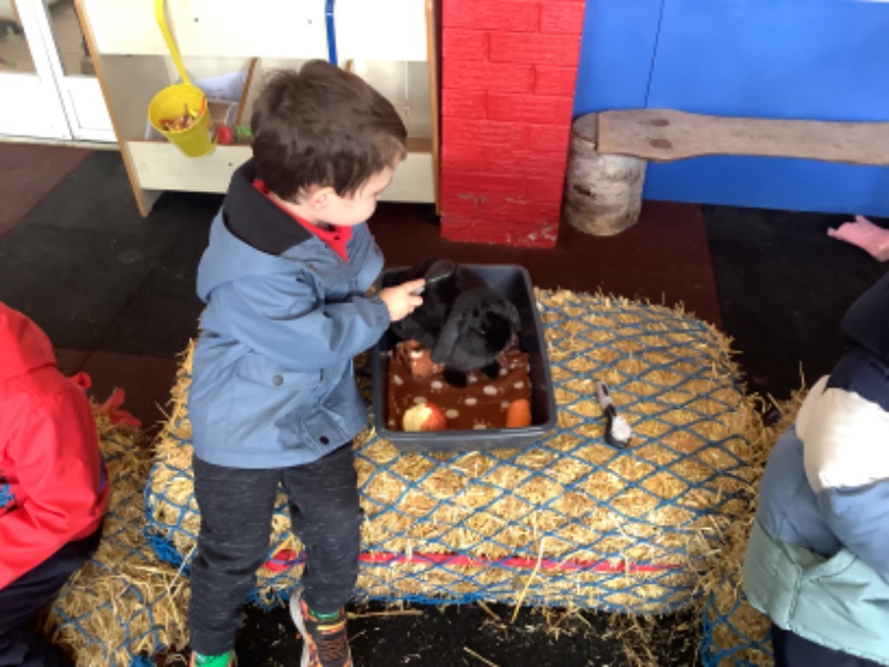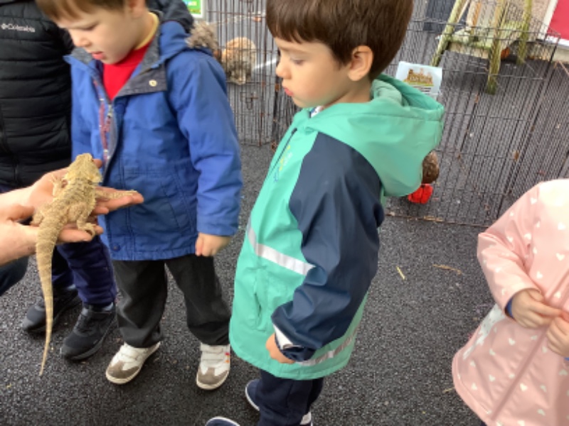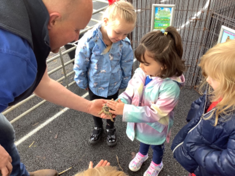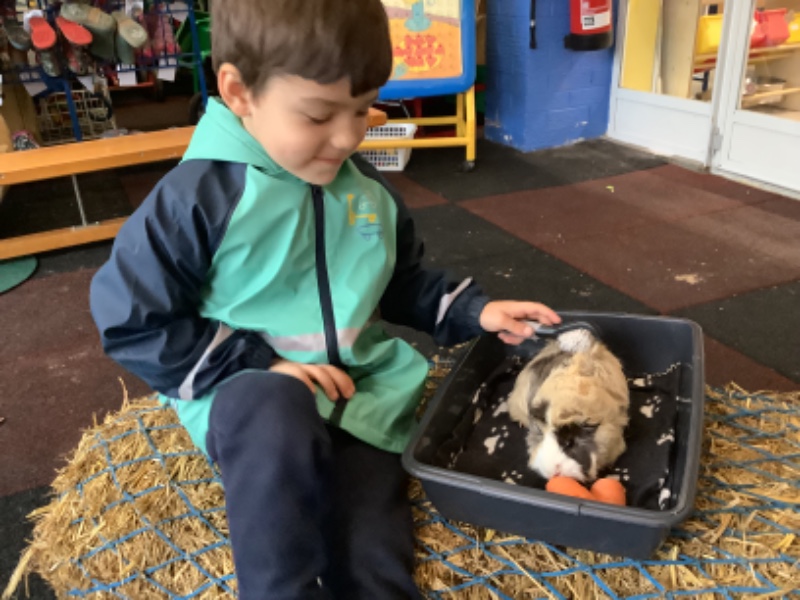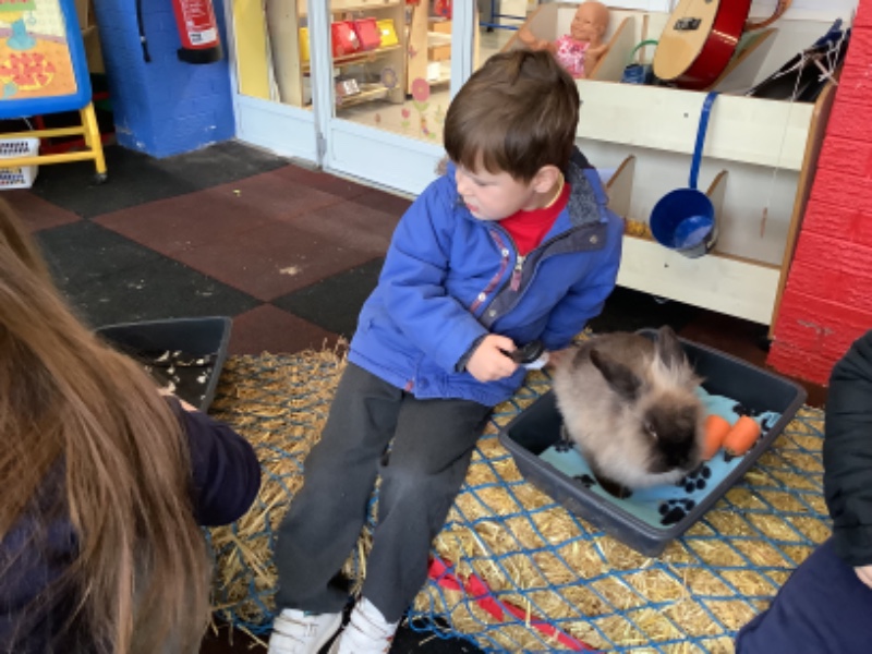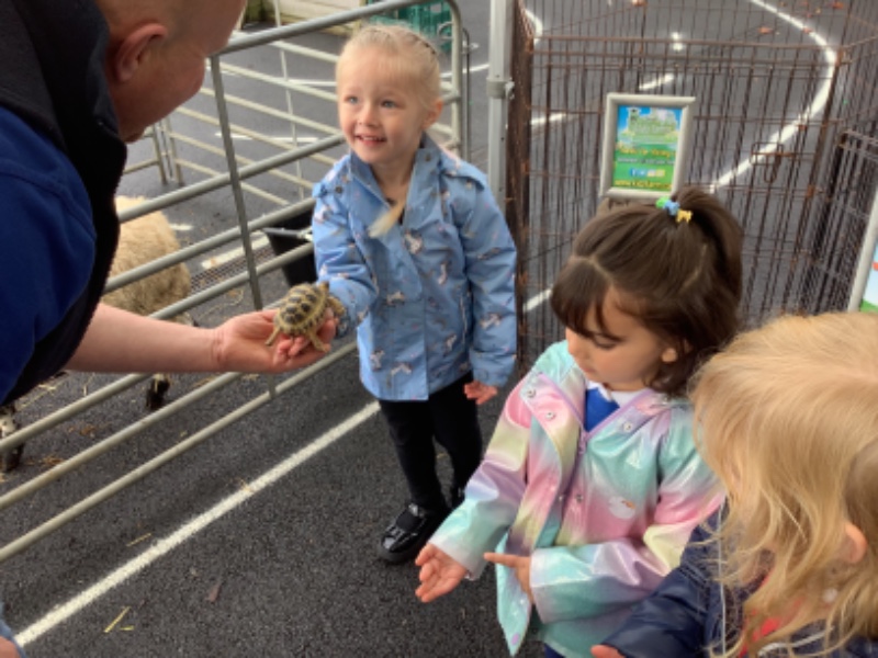 Kidz Farm visited nursery school to coincide with our farm theme in class. We got to brush/feed the Guinea pigs and rabbits, stroke the tarantula,snake and tortoises and some brave boys and girls even tried on a chicken hat. Fantastic fun had by all the children and great to learn about what the animals eat and where they originate from.