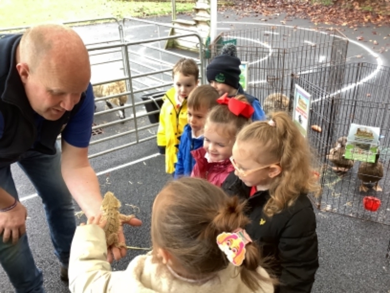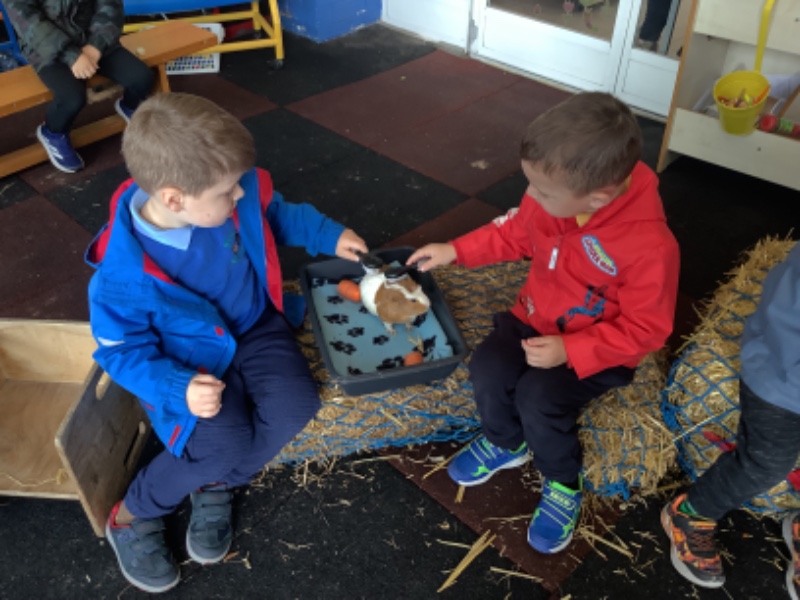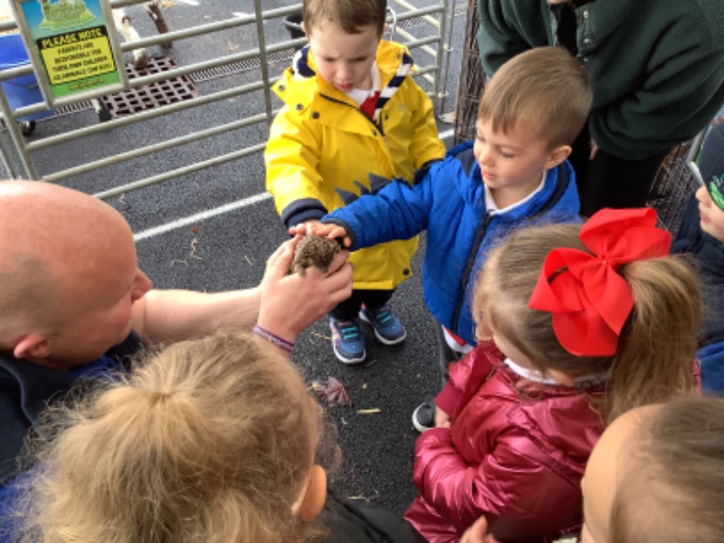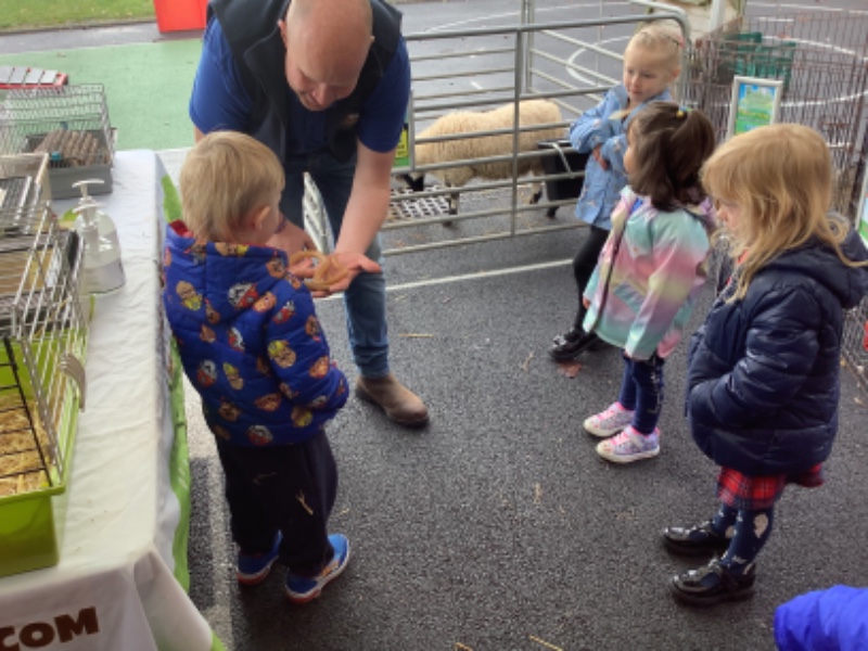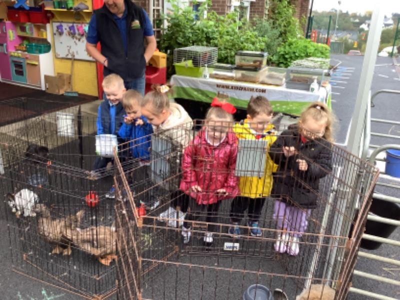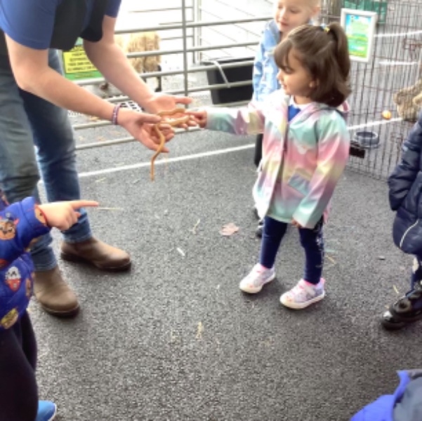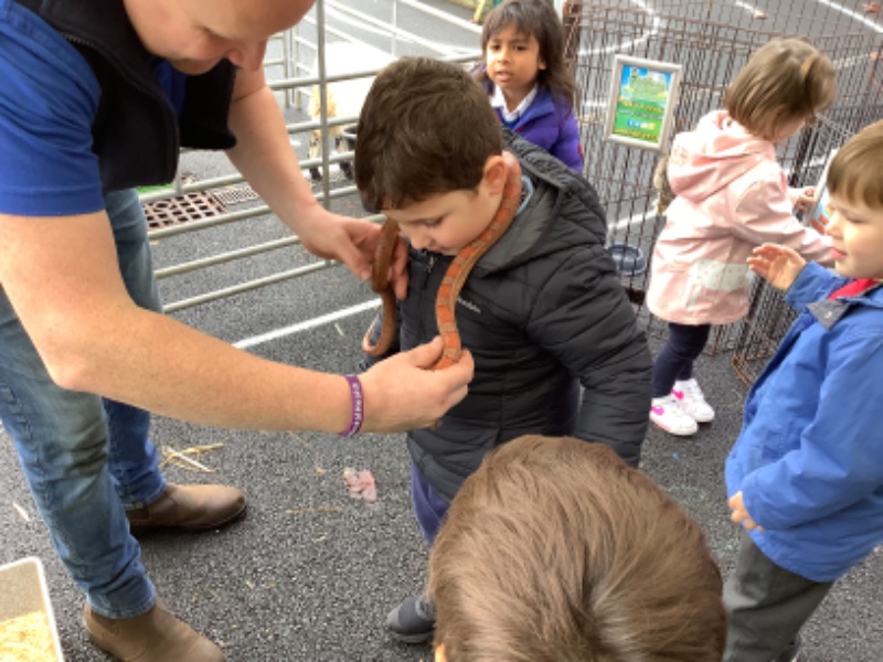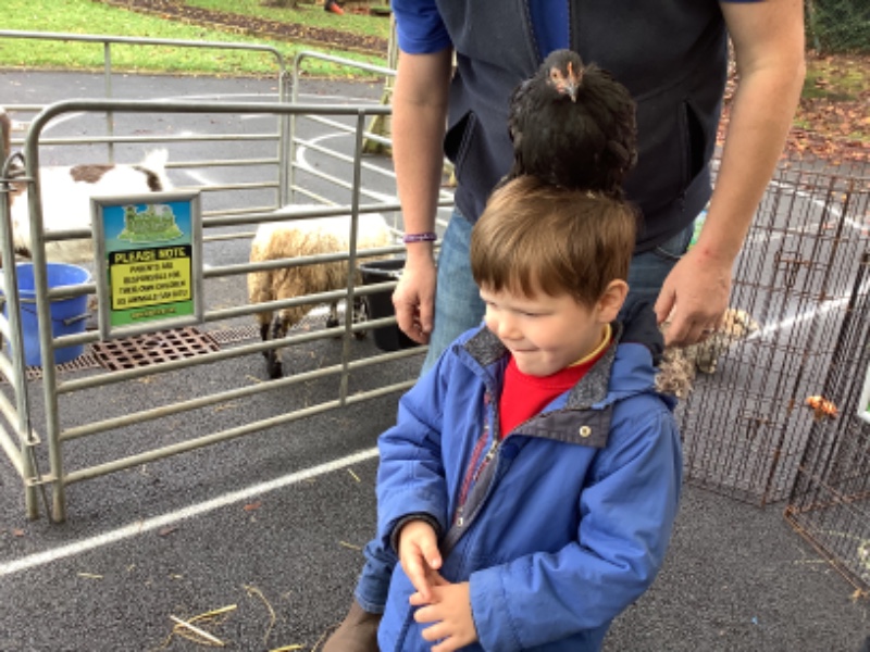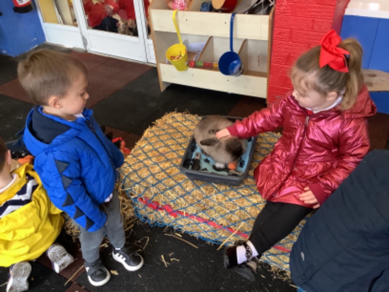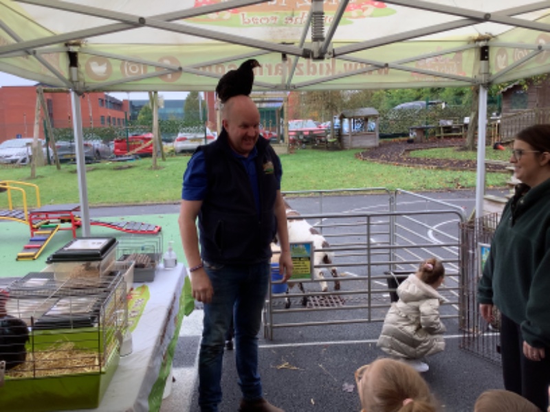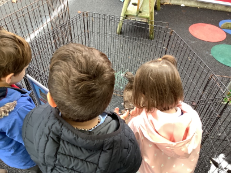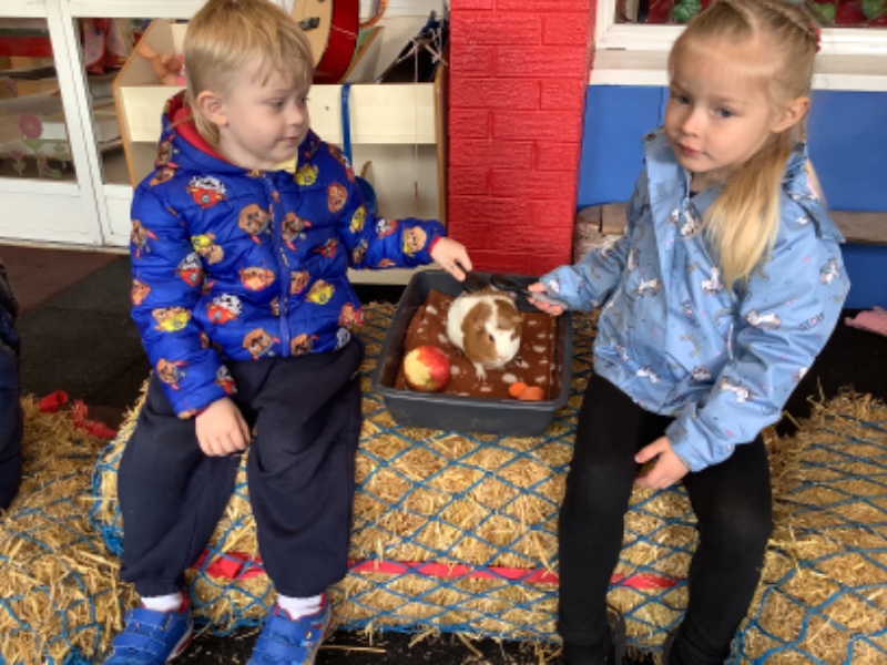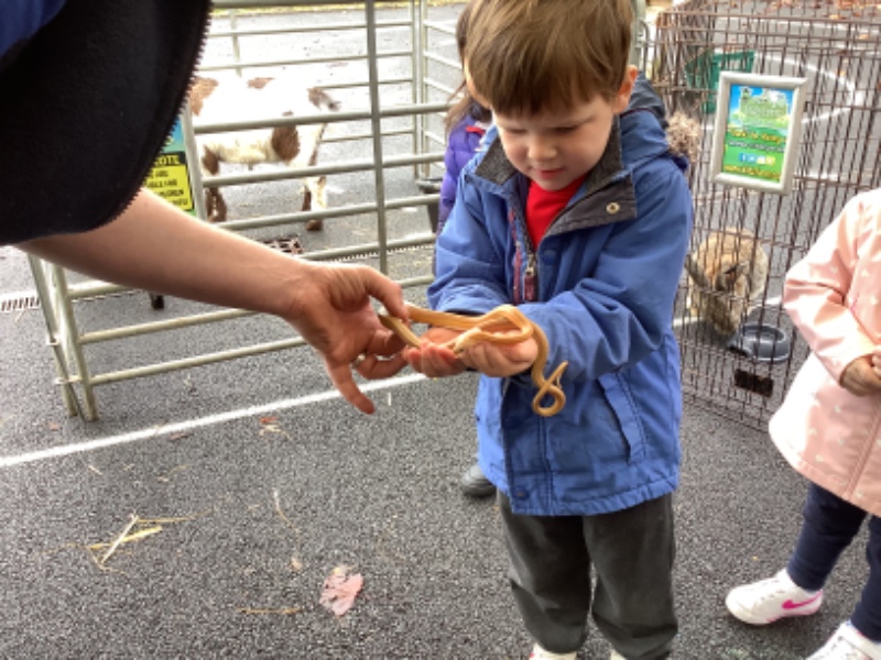 Kidz Farm visited nursery school to coincide with our farm theme in class. We got to brush/feed the Guinea pigs and rabbits, stroke the tarantula,snake and tortoises and some brave boys and girls even tried on a chicken hat. Fantastic fun had by all the children and great to learn about what the animals eat and where they originate from.