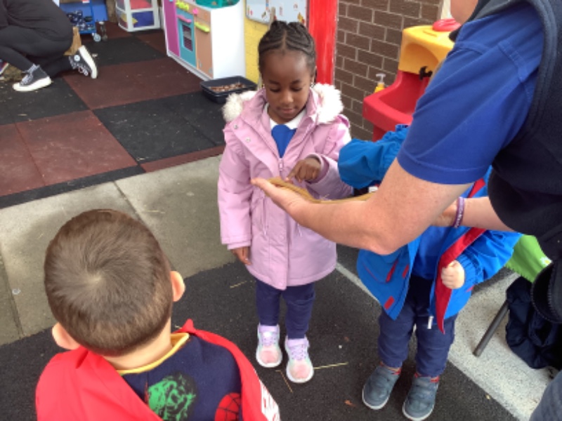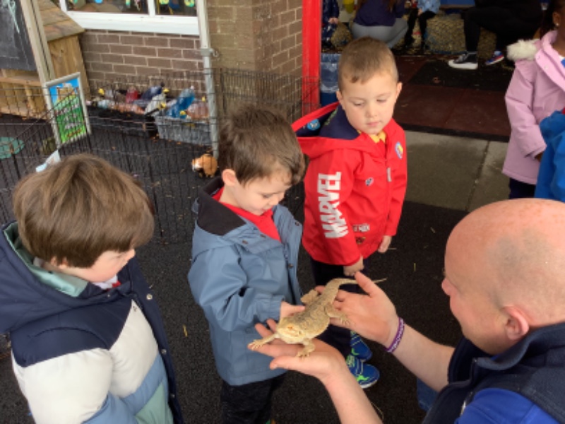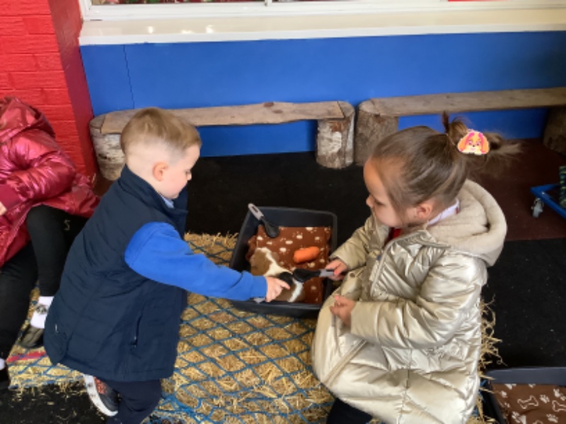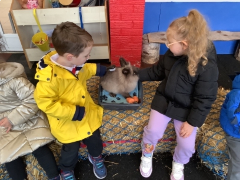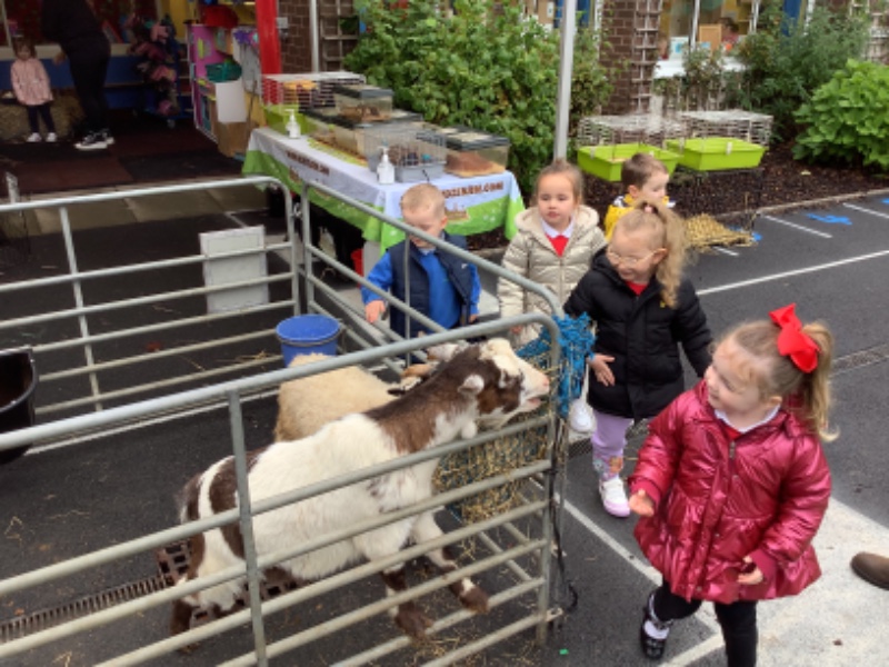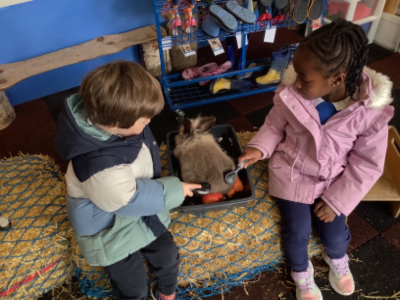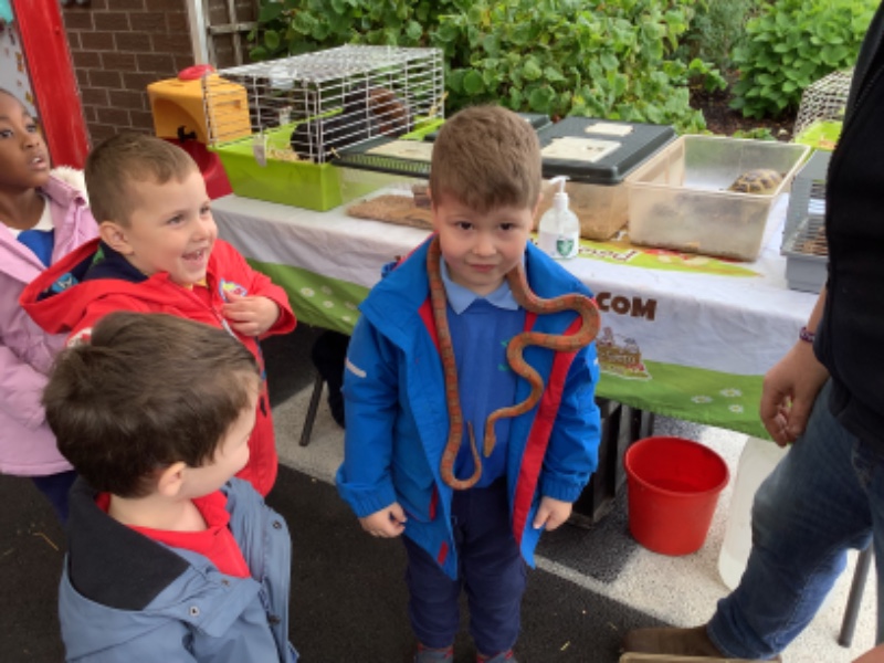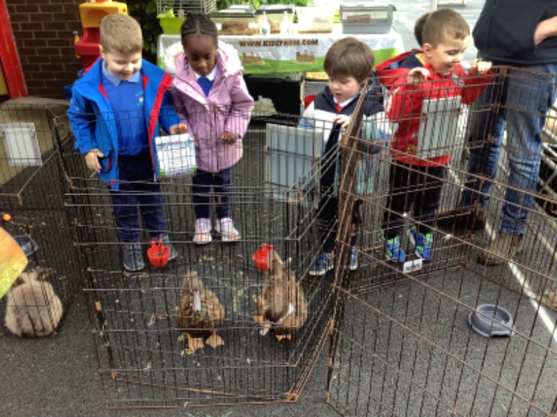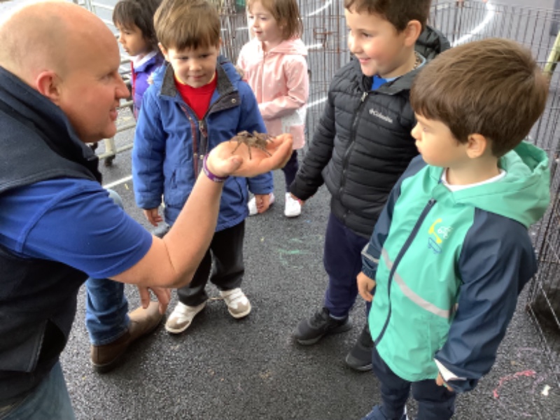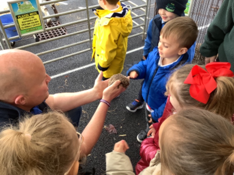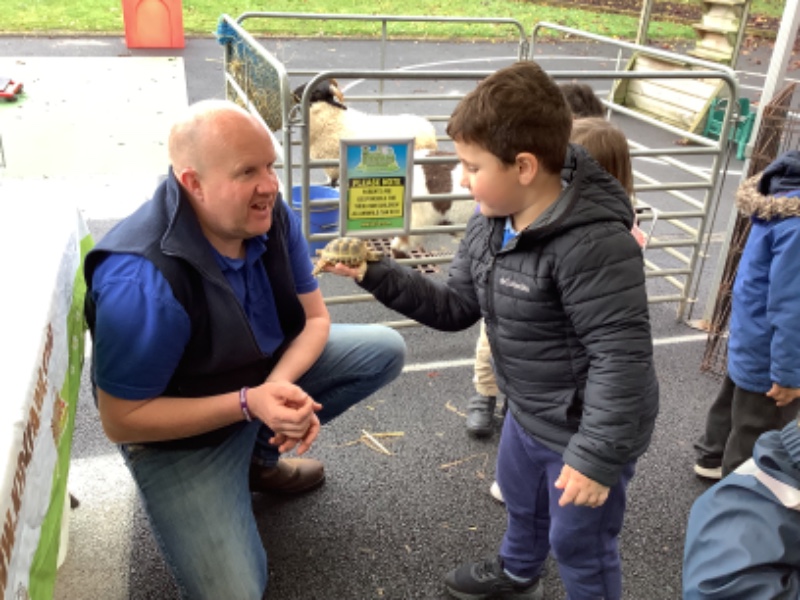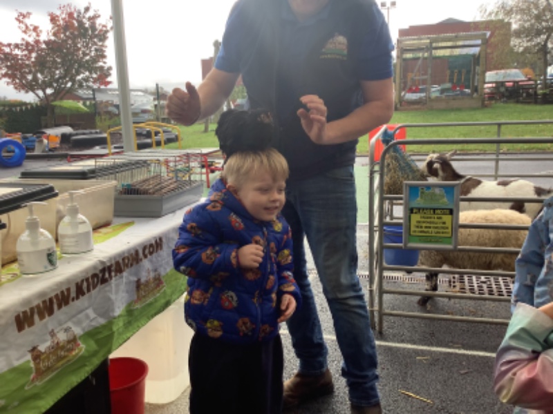 Kidz Farm visited nursery school to coincide with our farm theme in class. We got to brush/feed the Guinea pigs and rabbits, stroke the tarantula,snake and tortoises and some brave boys and girls even tried on a chicken hat. Fantastic fun had by all the children and great to learn about what the animals eat and where they originate from.
