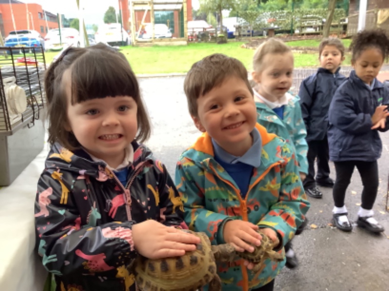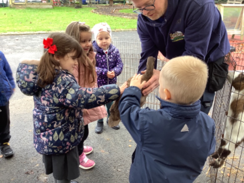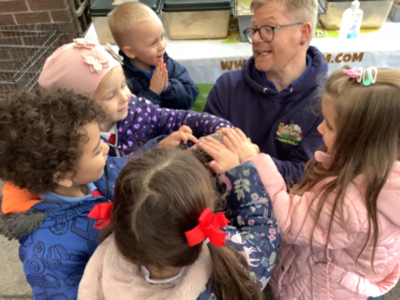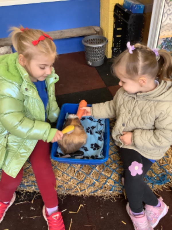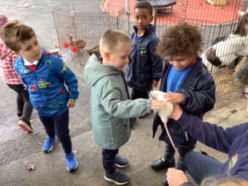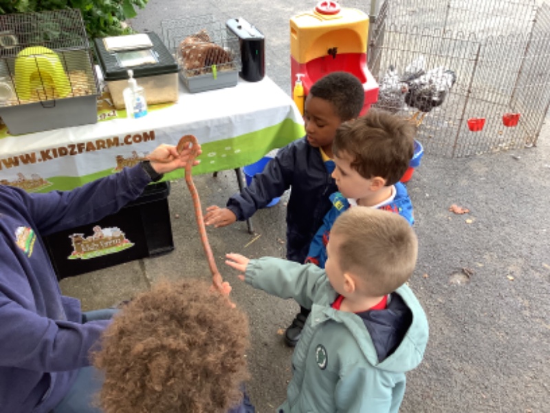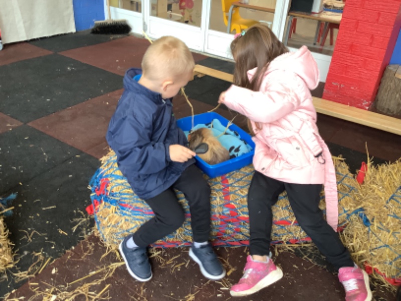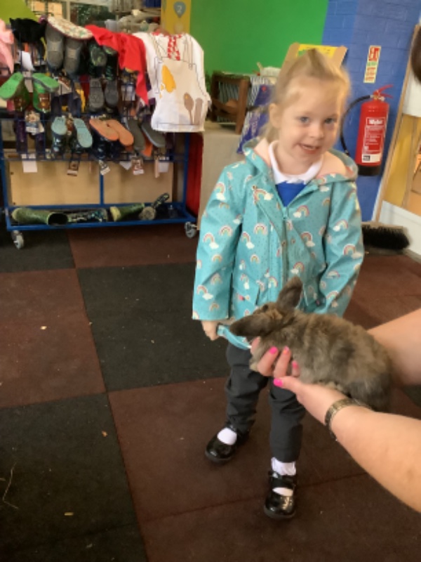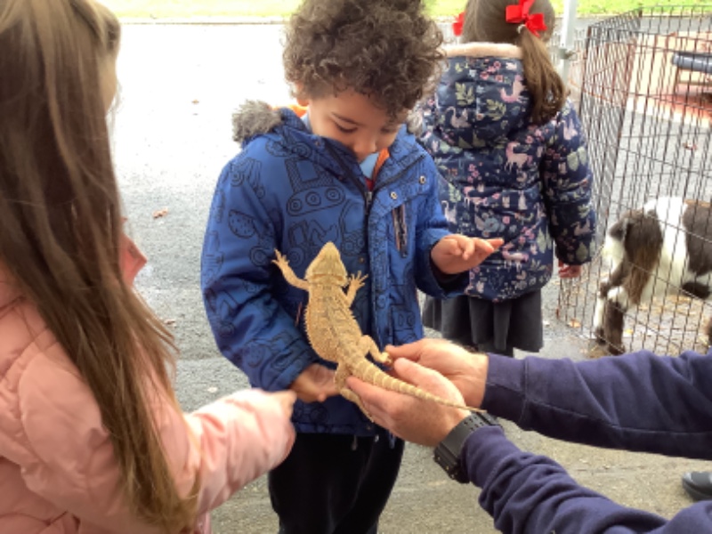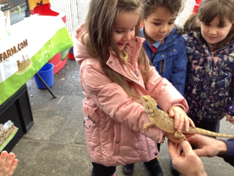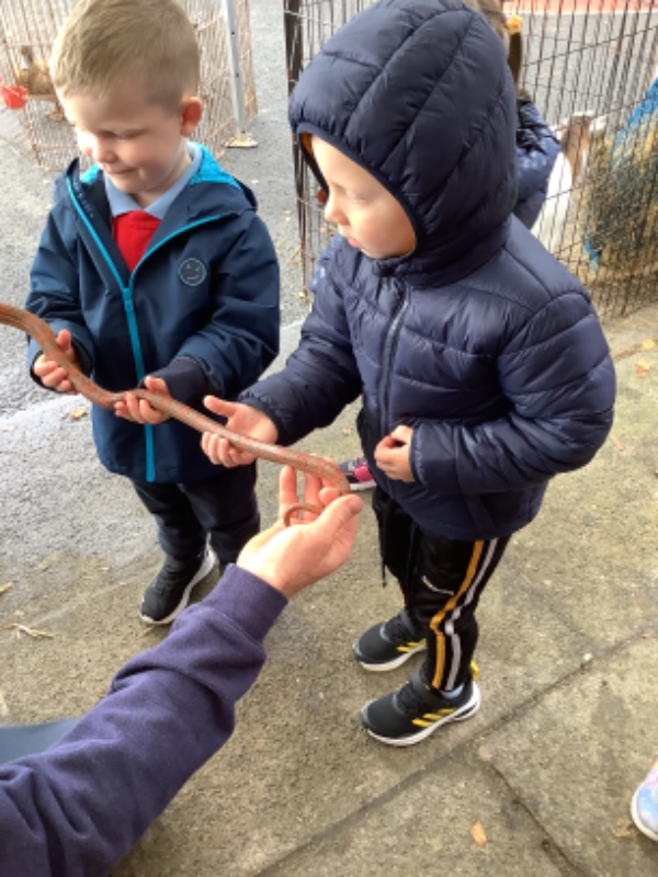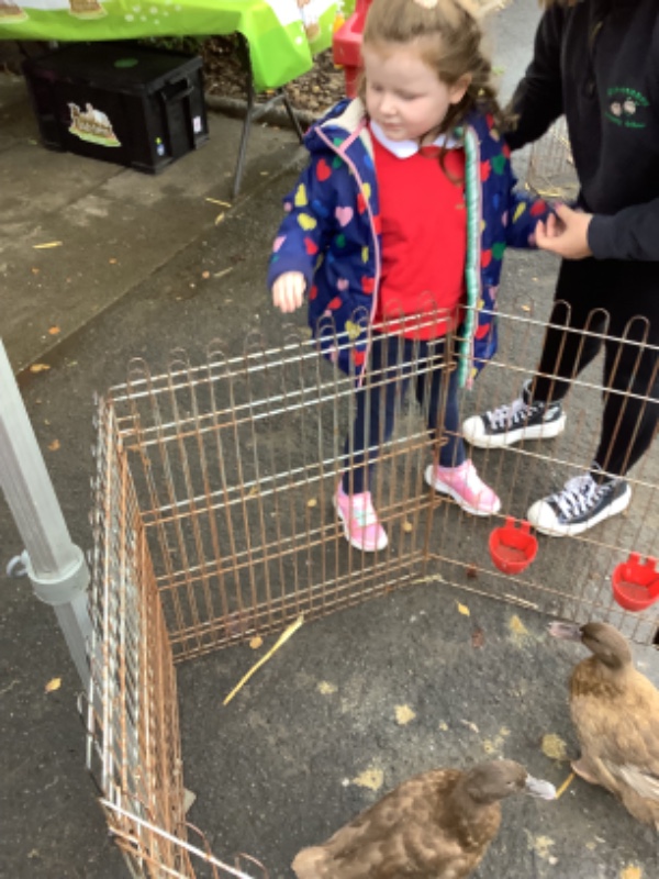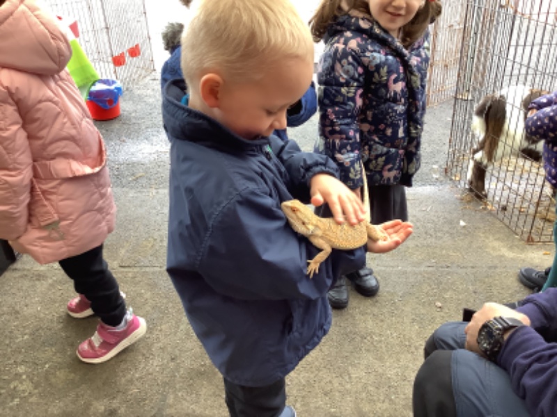 Today the children had so much fun experiencing all the noises,smells and touch of the animals. They all brushed the rabbits and Guinea pigs fur. We discussed how prickly the hedgehog was,how soft the duck was, how hard the tortoise was and how long the snake was. We practiced our best duck waddles around the playground after the ducks.