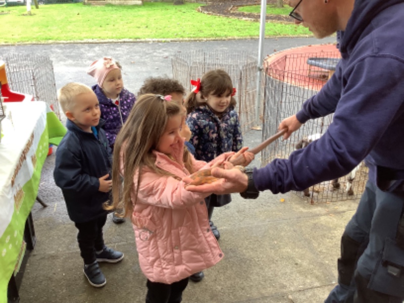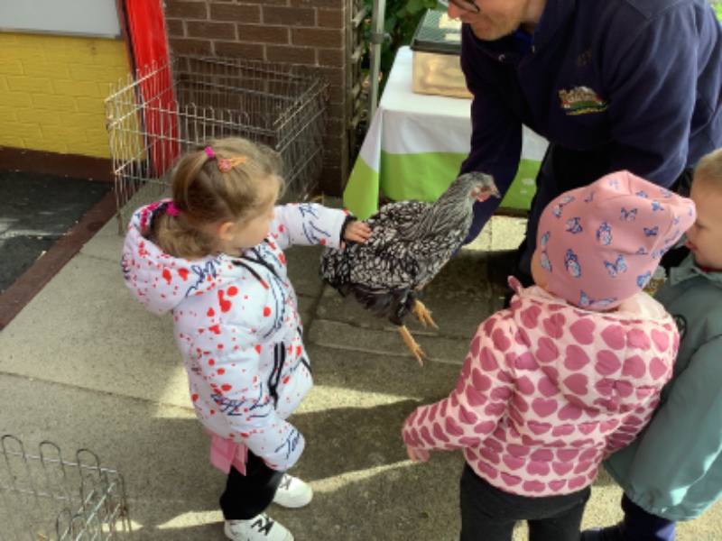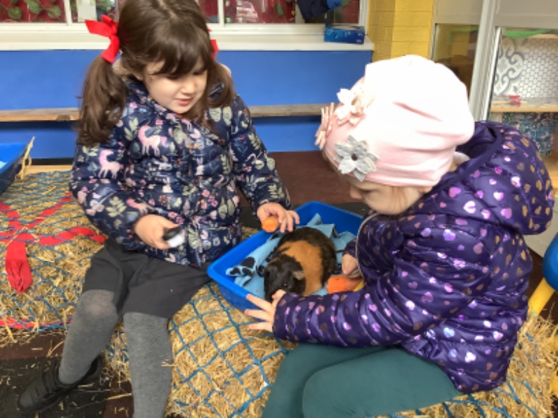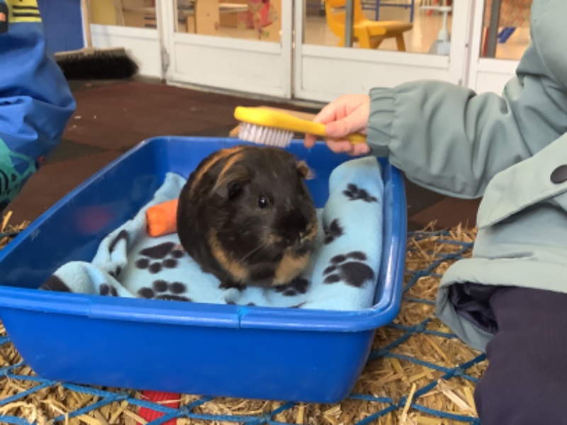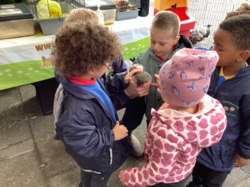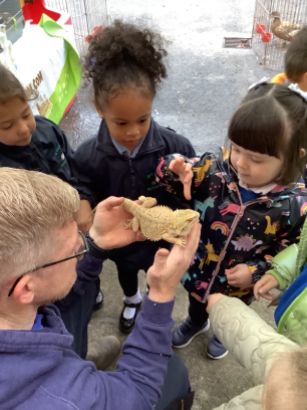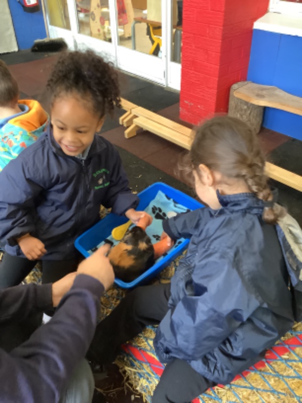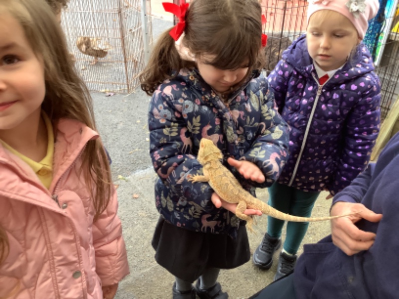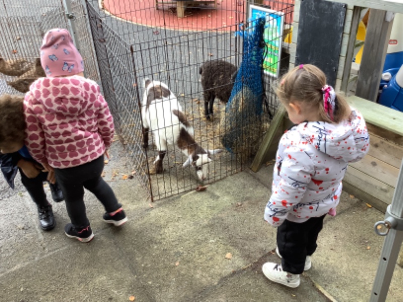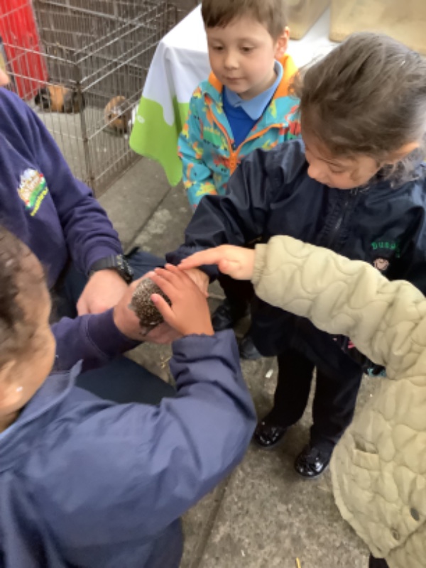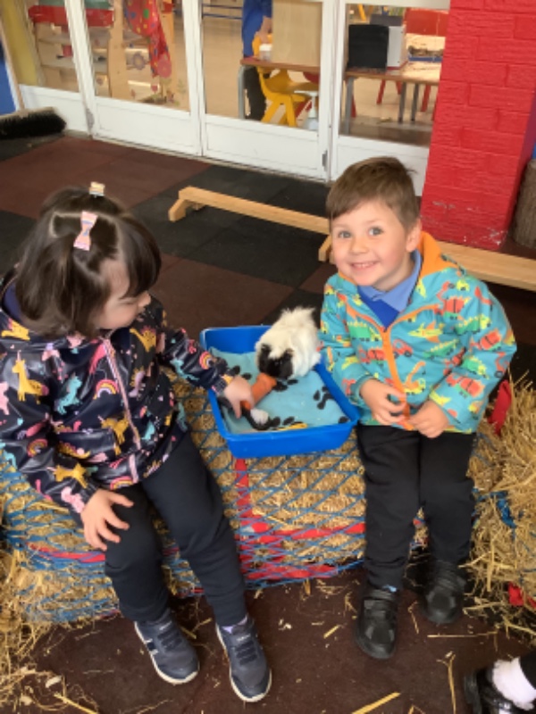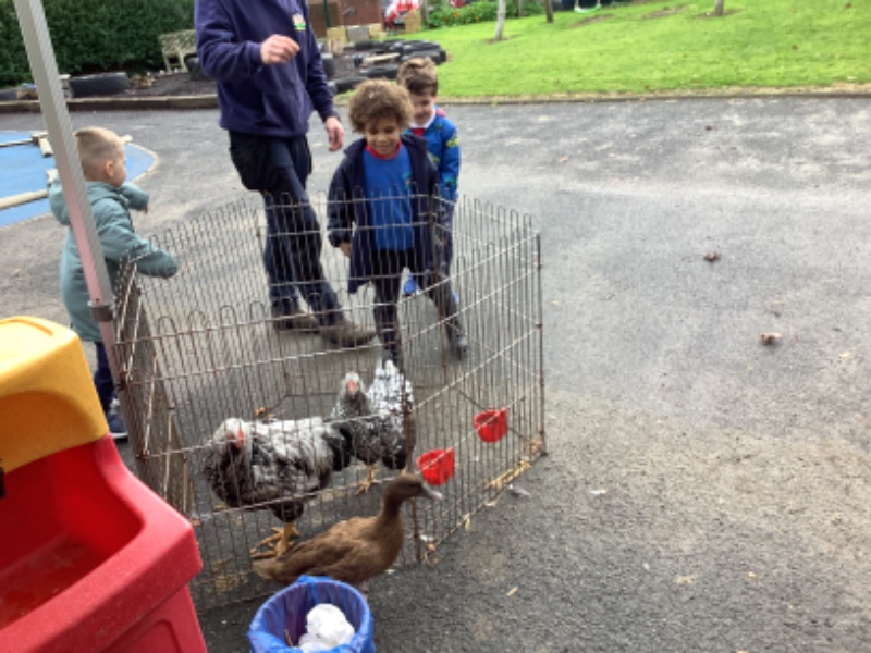Today the children had so much fun experiencing all the noises,smells and touch of the animals. They all brushed the rabbits and Guinea pigs fur. We discussed how prickly the hedgehog was,how soft the duck was, how hard the tortoise was and how long the snake was. We practiced our best duck waddles around the playground after the ducks.