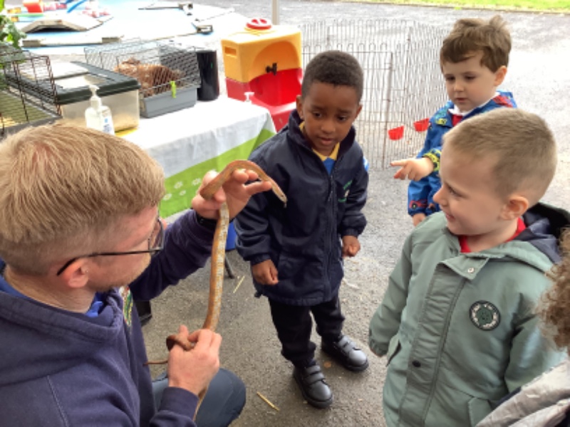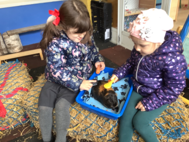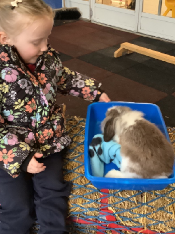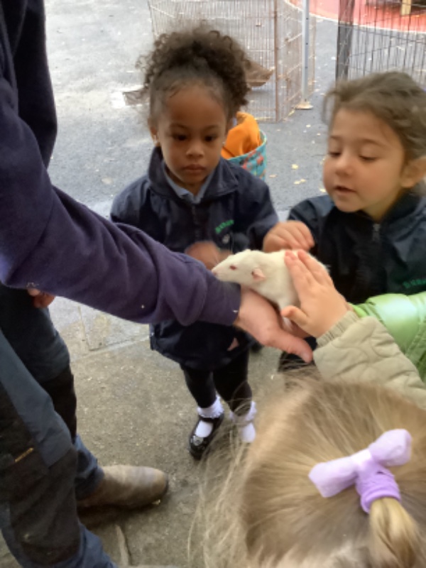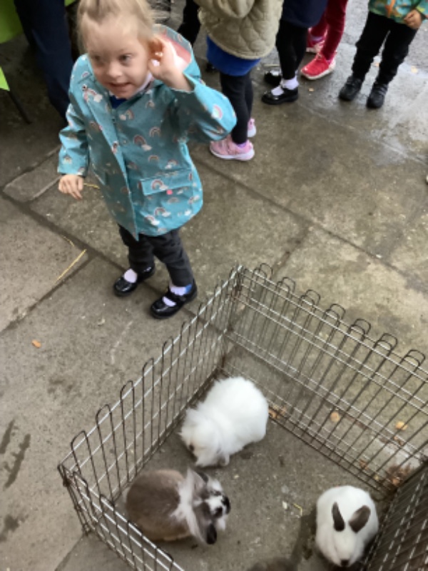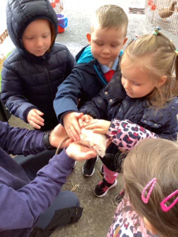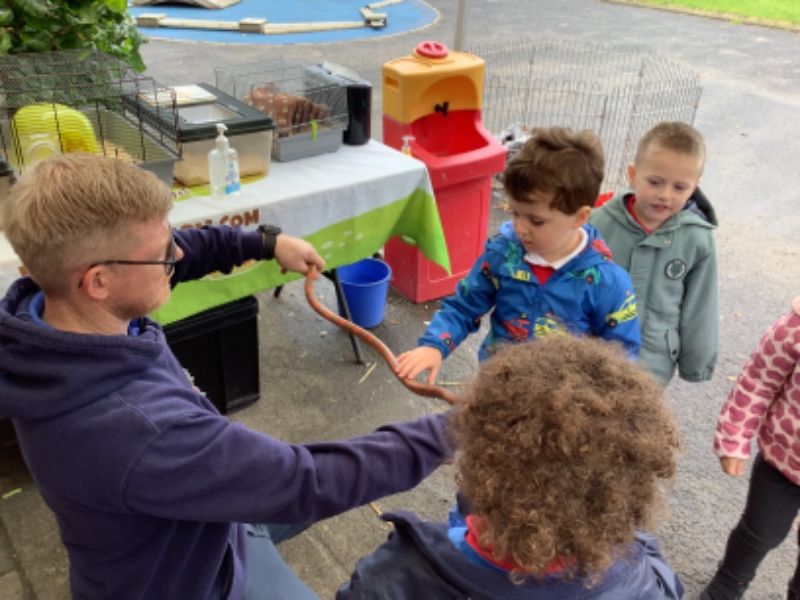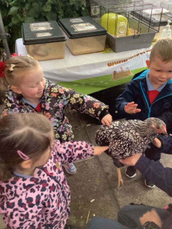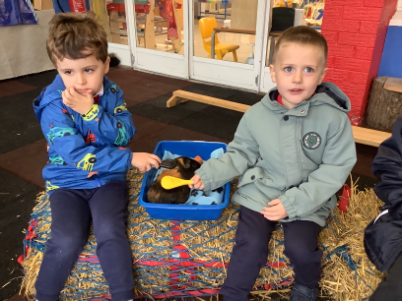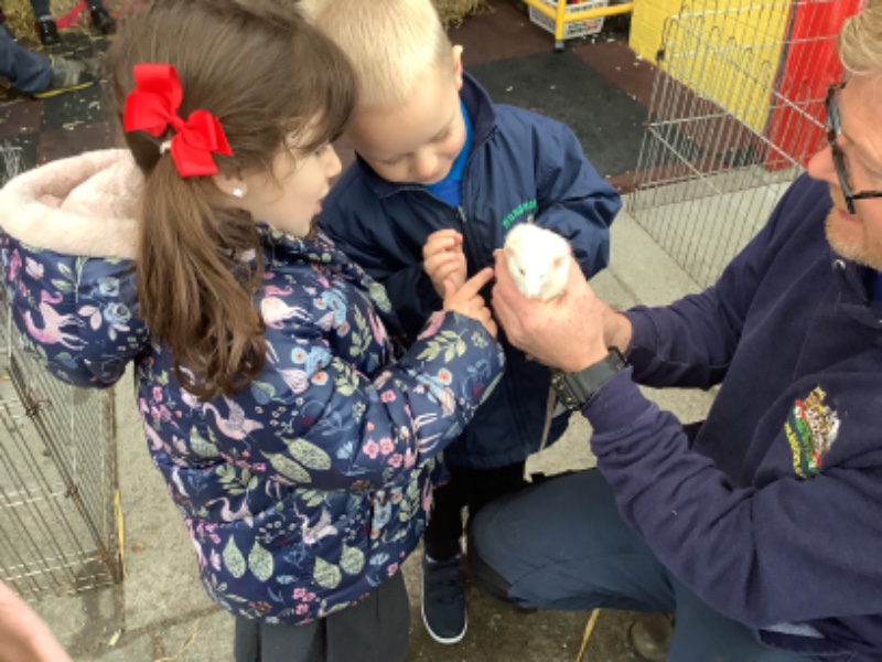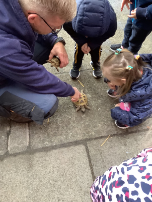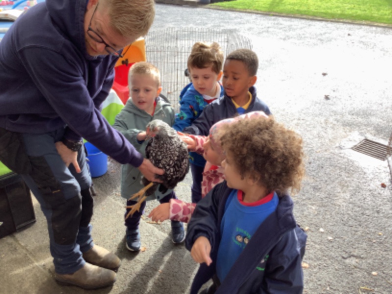 Today the children had so much fun experiencing all the noises,smells and touch of the animals. They all brushed the rabbits and Guinea pigs fur. We discussed how prickly the hedgehog was,how soft the duck was, how hard the tortoise was and how long the snake was. We practiced our best duck waddles around the playground after the ducks.