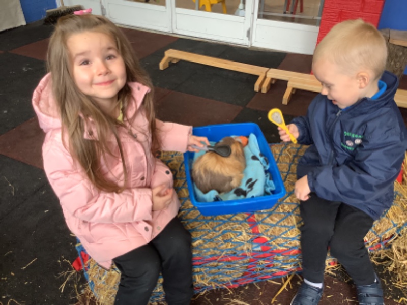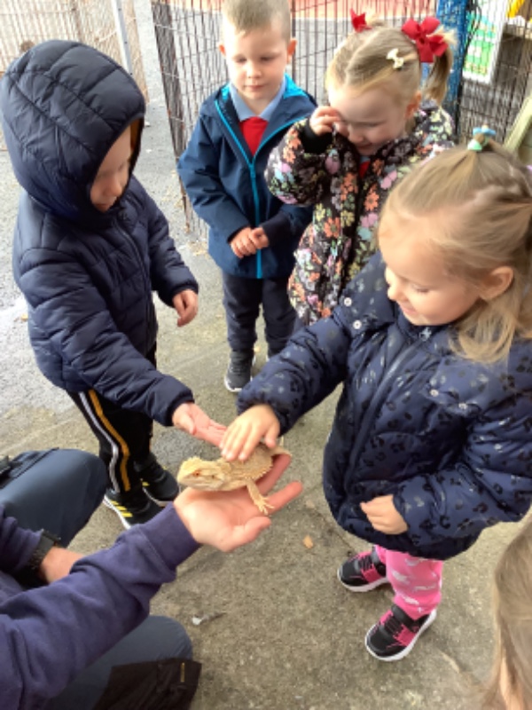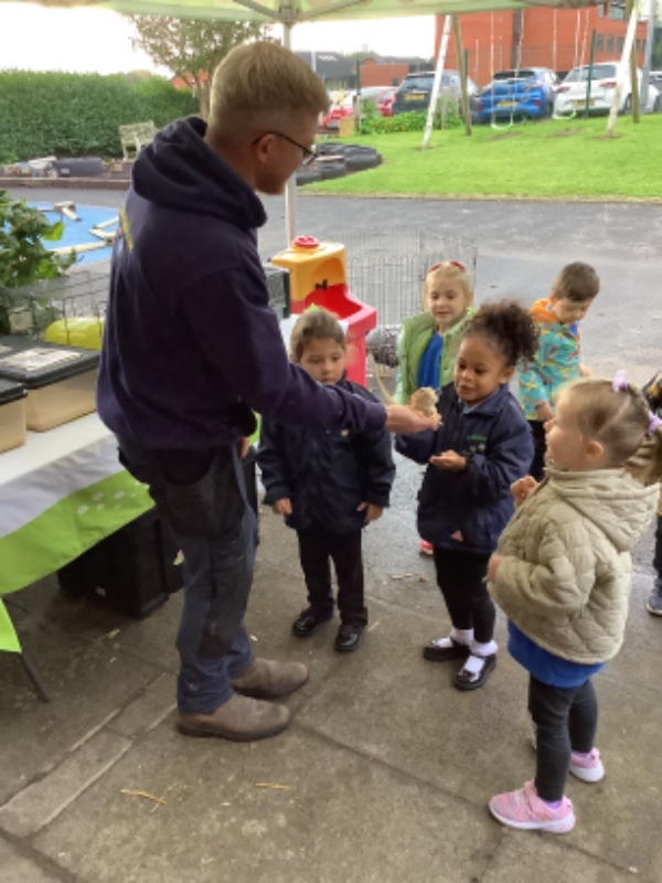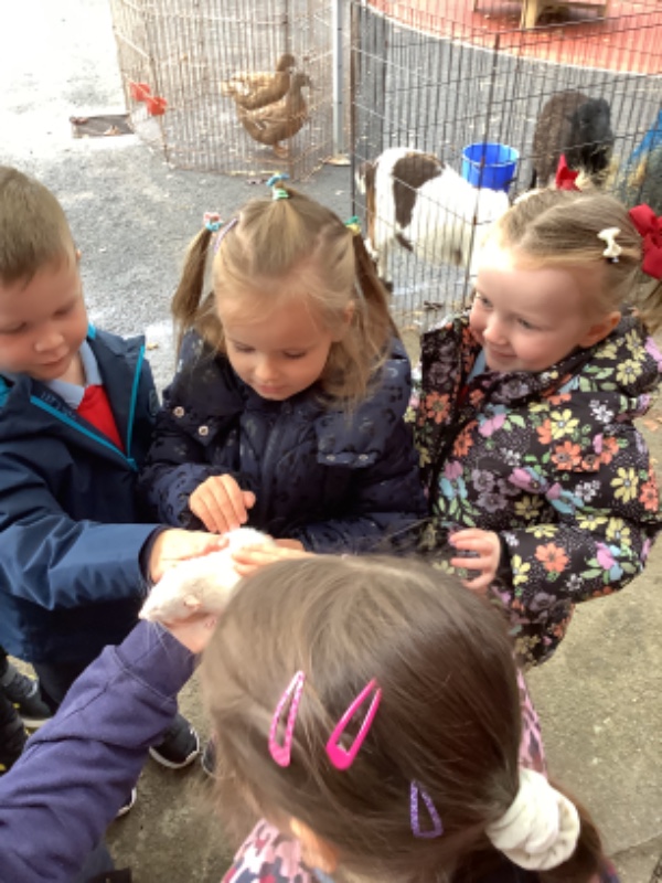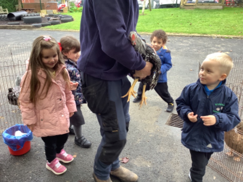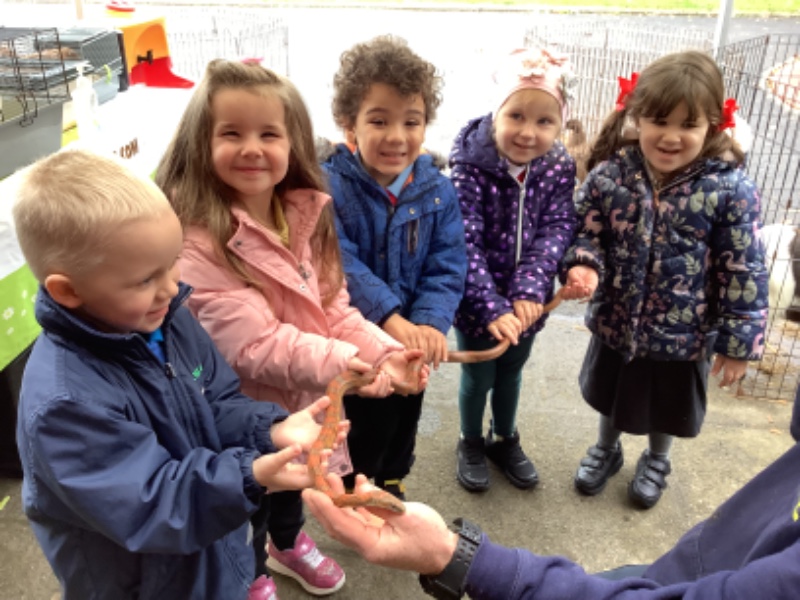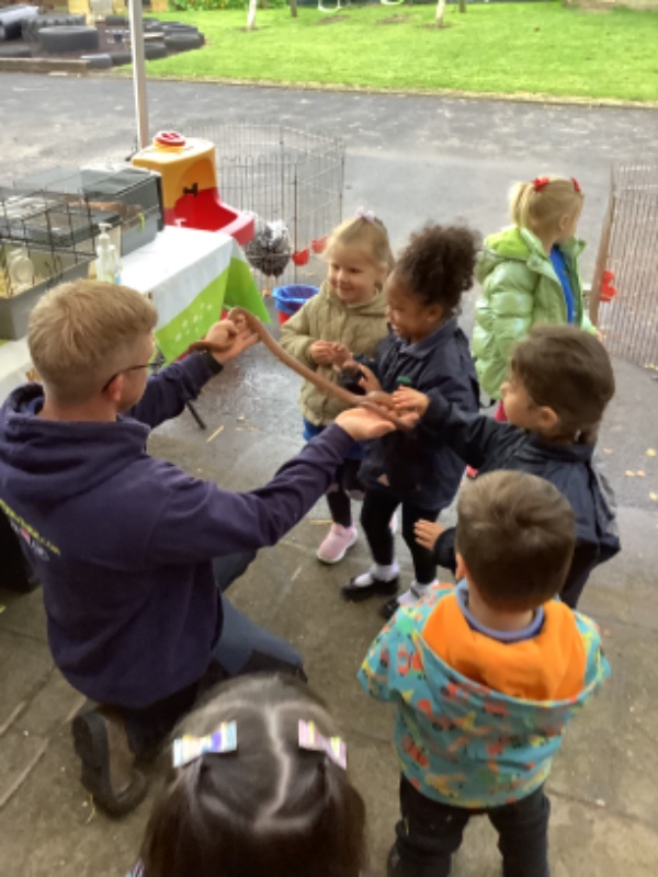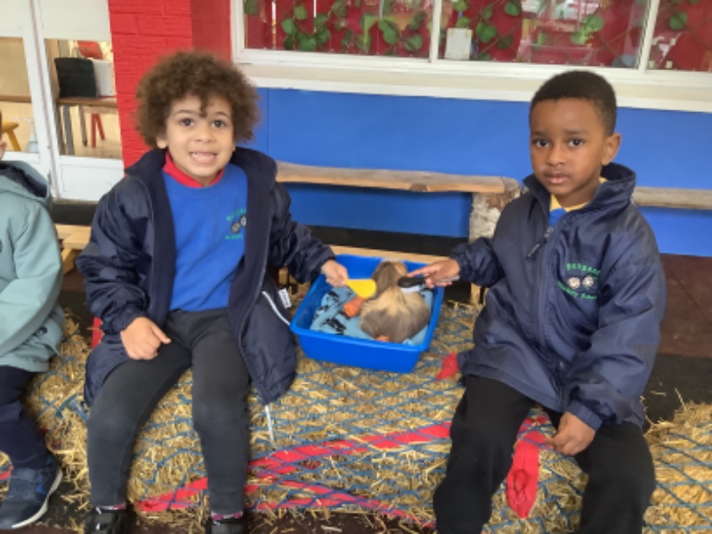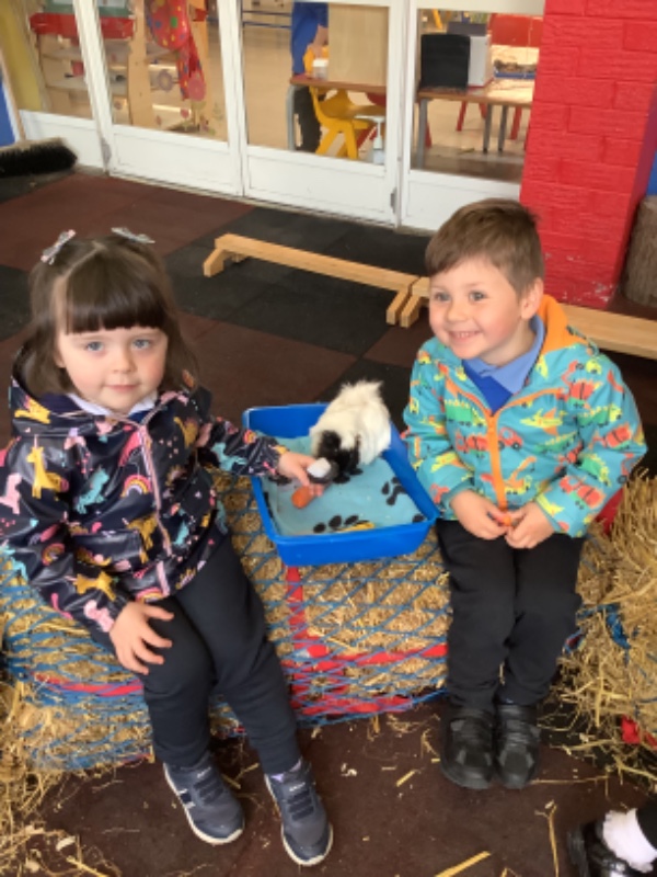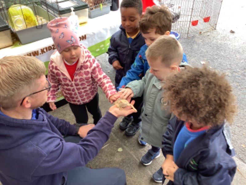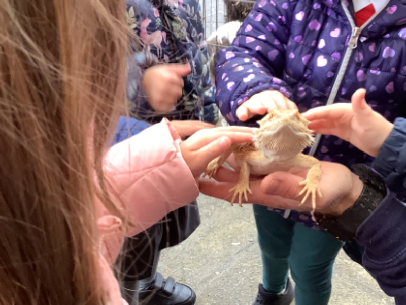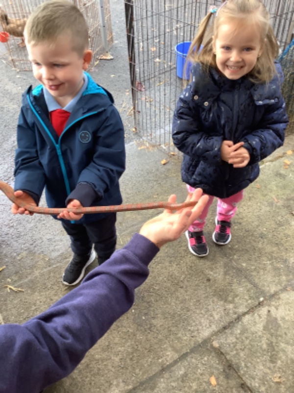 Today the children had so much fun experiencing all the noises,smells and touch of the animals. They all brushed the rabbits and Guinea pigs fur. We discussed how prickly the hedgehog was,how soft the duck was, how hard the tortoise was and how long the snake was. We practiced our best duck waddles around the playground after the ducks.