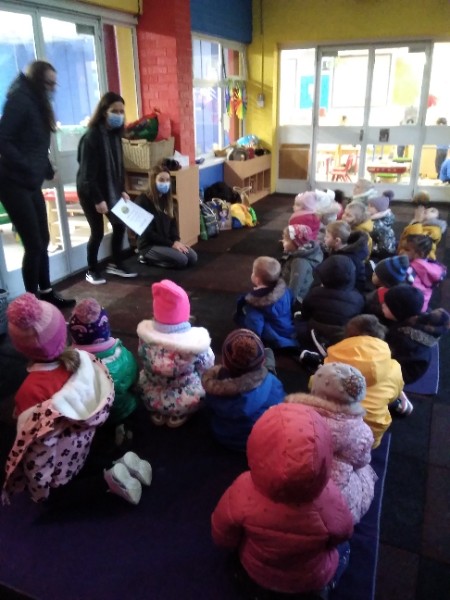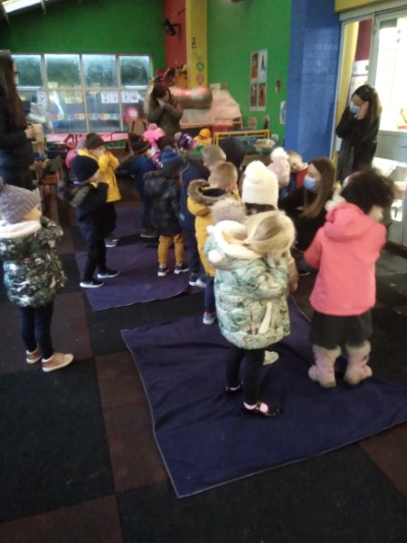 We enjoyed a visit from Kidz wellness today. Eimear and sabrina taught us about mindful breathing, yoga and pilate. Ask us about the hot chocolate breathing. Smell the hot chocolate for 3 seconds and hold it for 4 seconds, then breathe out for 5 seconds to cool it down.