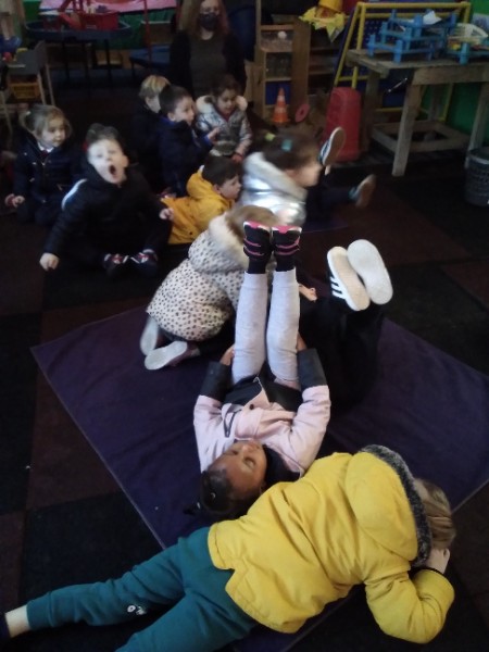 Nursery enjoyed a visit from Emear and Sabrina from Kidz Wellness today.