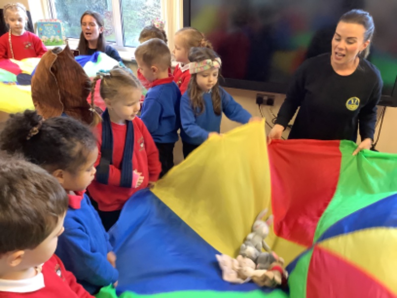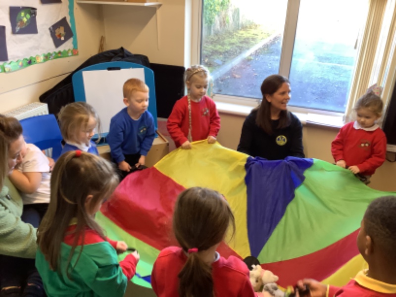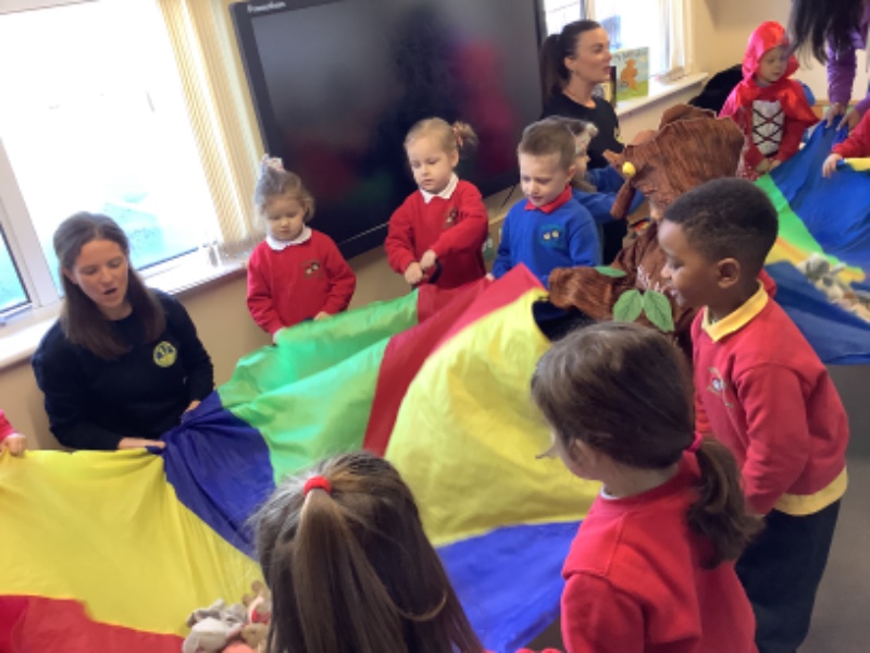 Together we practised our new super power ‘Hot Chocolate breathing’. We loved singing and doing yoga movements to sleeping bunny’s. We finished off with a parachute game.