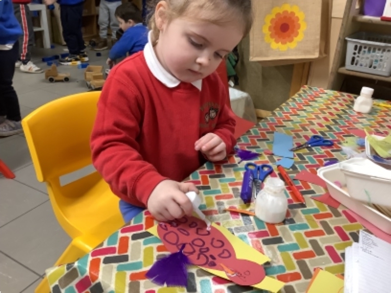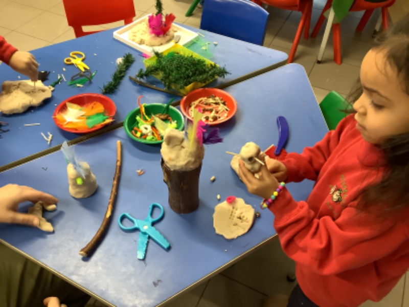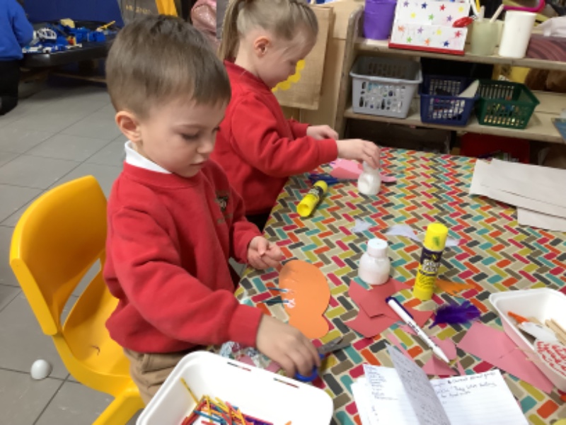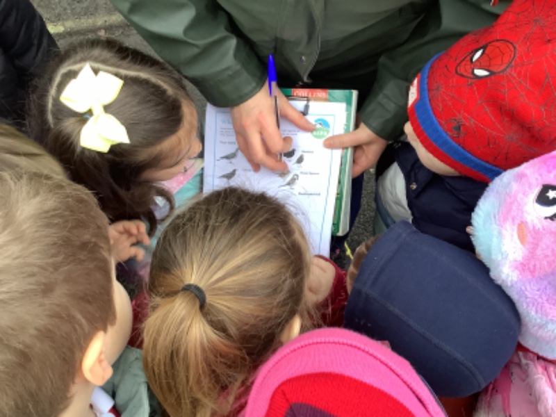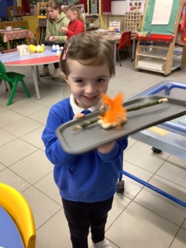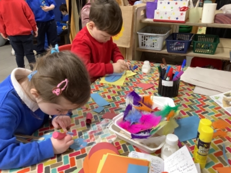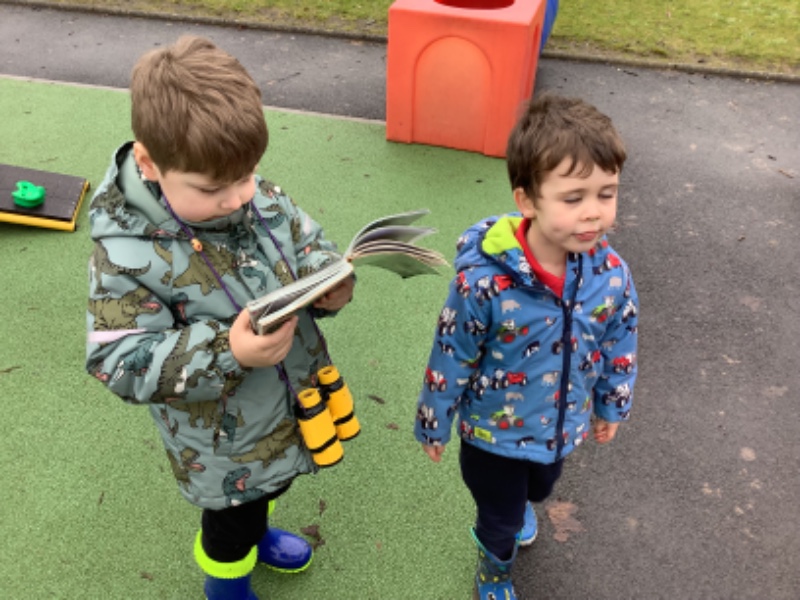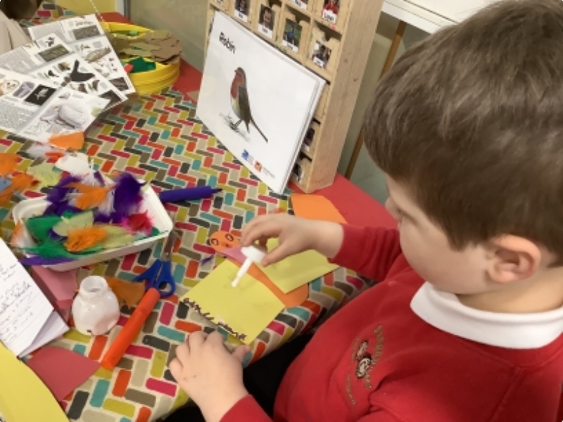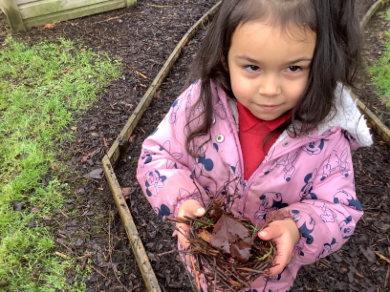 Nursery 2 made our very own binoculars in class and have been very busy using them to search for birds through the windows, in the playground and around our classroom. The children have enjoyed learning about various different types of birds we might find in our country with Mrs Allen. James and Nikita used twigs, leaves and moss from the playground to create a fantastic nest.