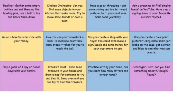 Here are some photographs of some learning activities you might like to try out at home this week.