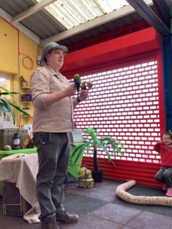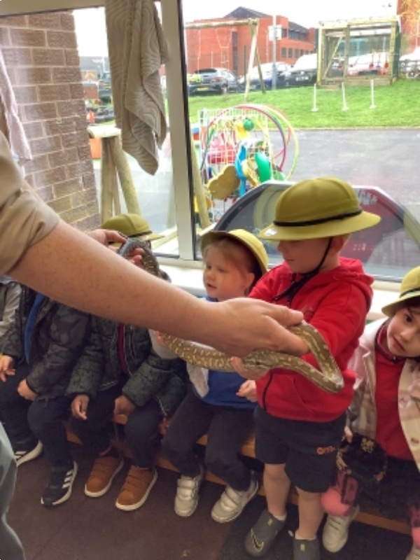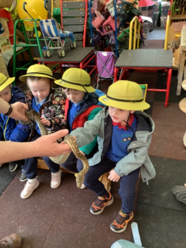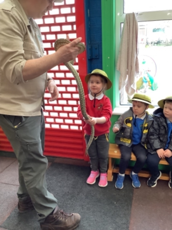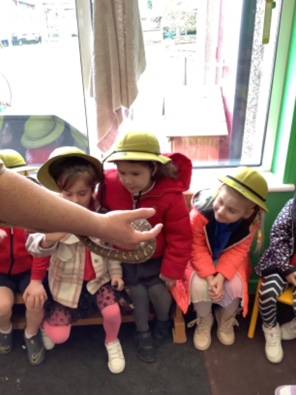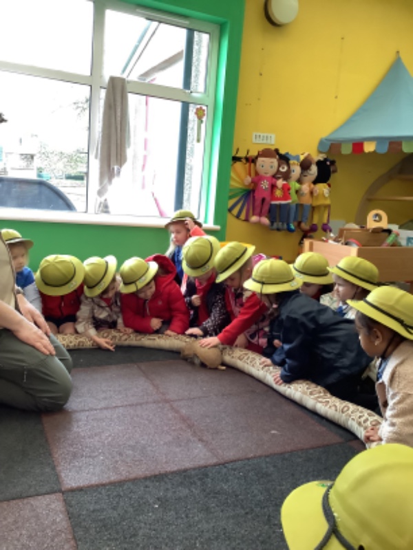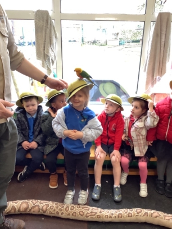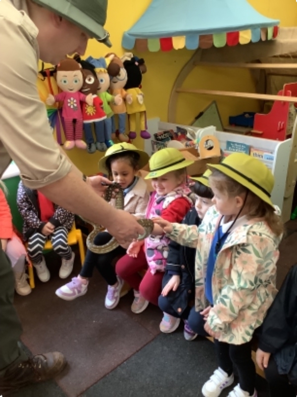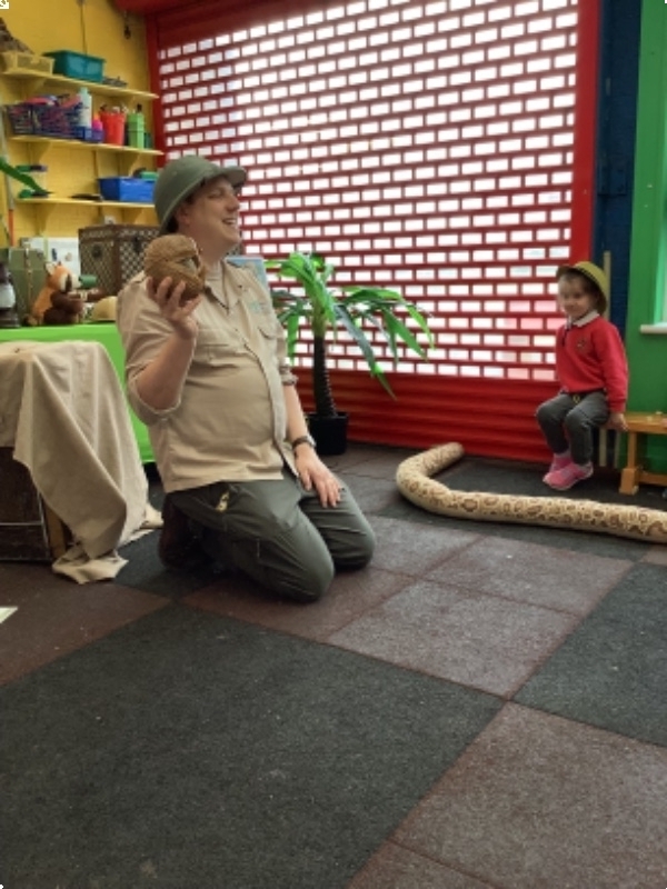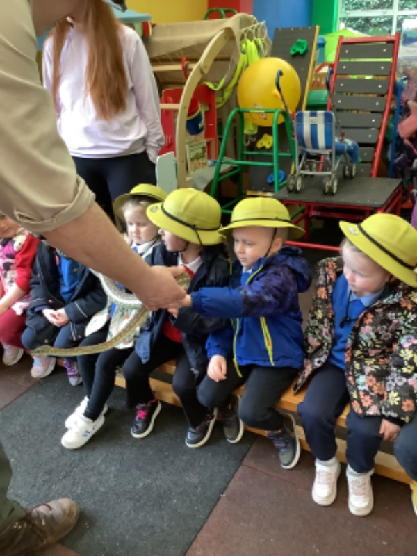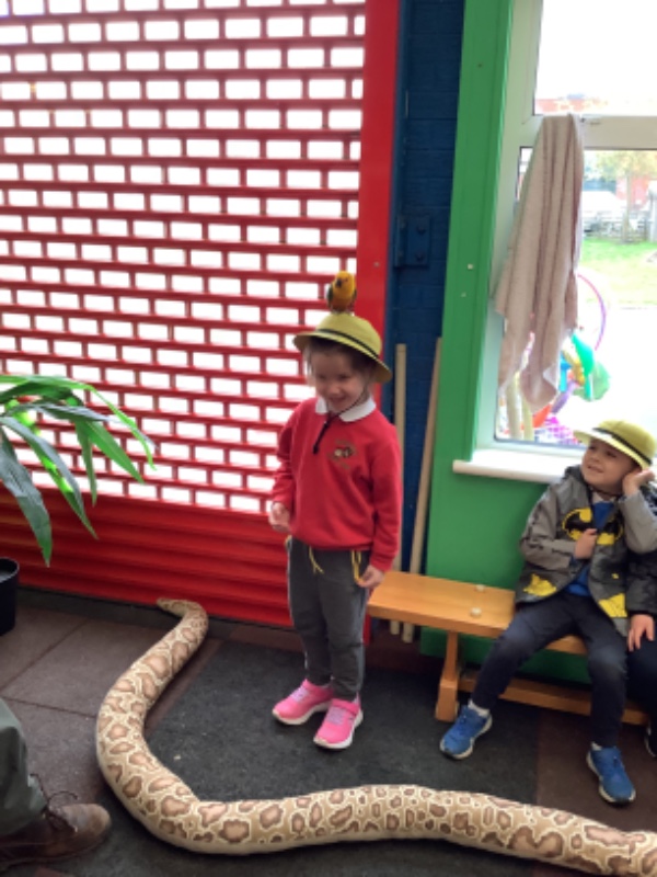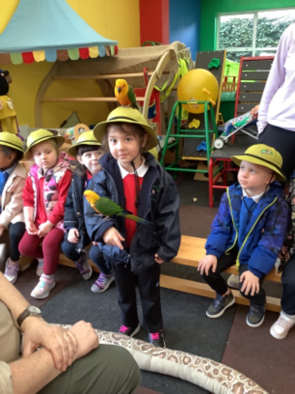 Alan brought some of his amazing animals to Nursery school to show us and share some of his knowledge on them with us. We met a slithery snake, slimy giant snails, an armadillo and 3 very beautiful parrots. The children were all very brave and had great fun.