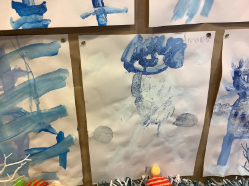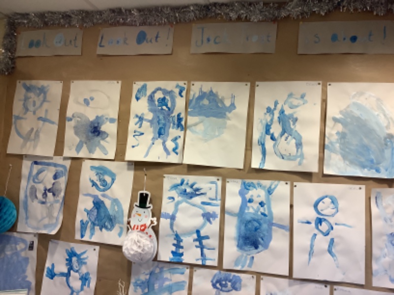 What wintry weather! The children heard a story about a little boy called Jack Frost. The children painted their pictures of a cold and frosty Jack Frost!