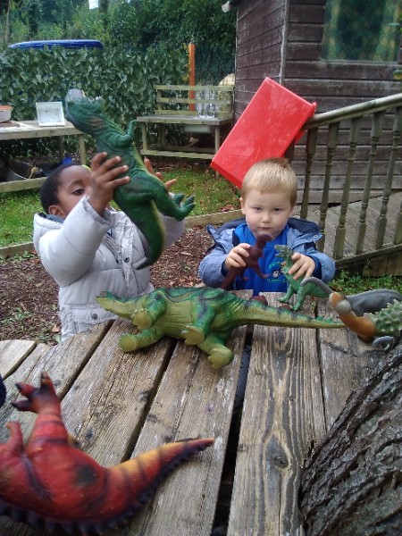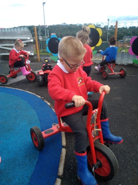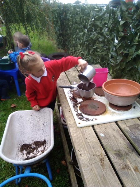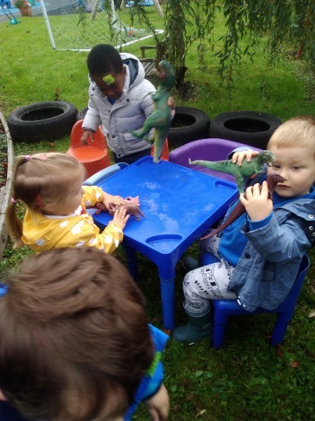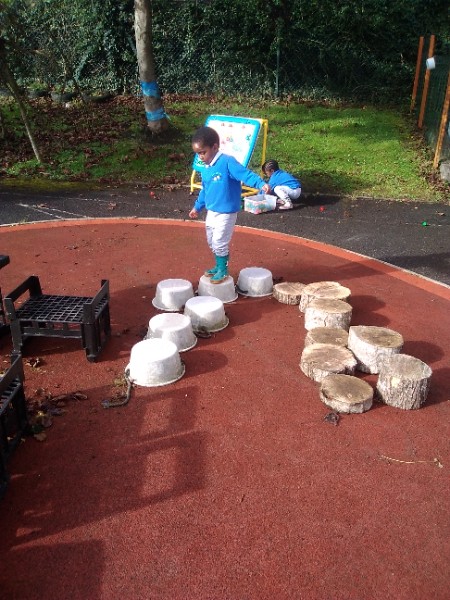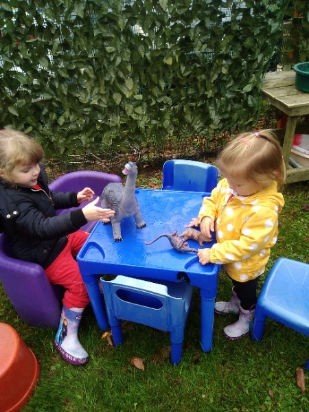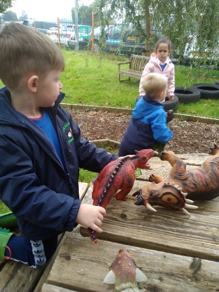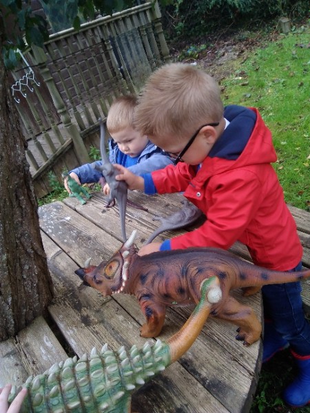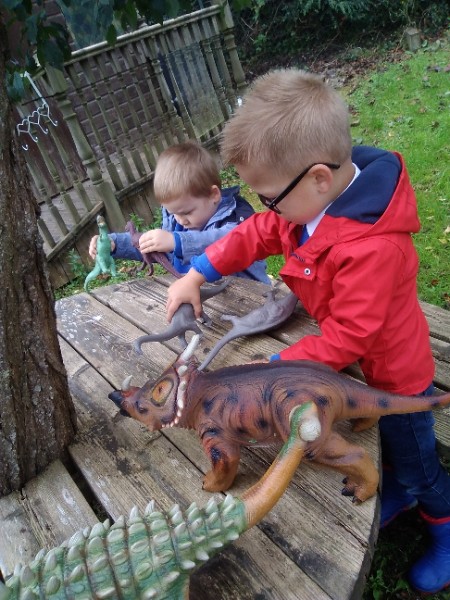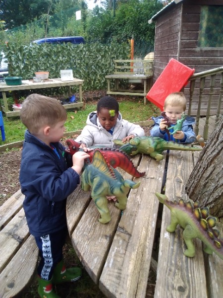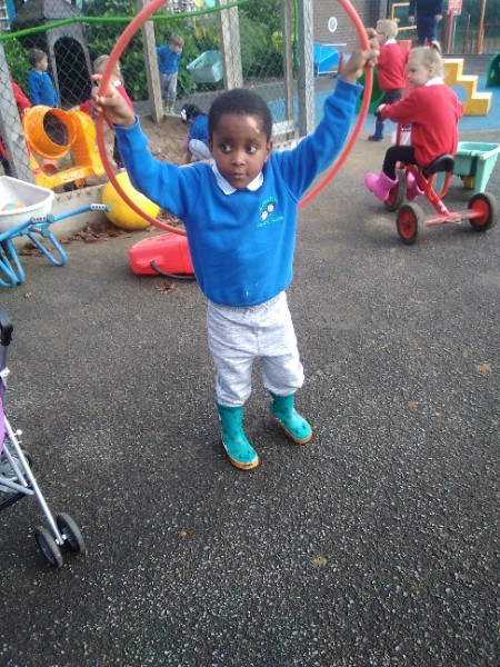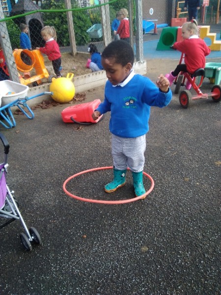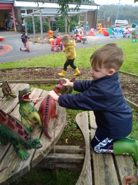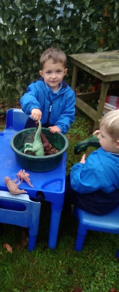The children spend up to half their day at school playing, exploring and learning outdoors. We have all enjoyed trying out new things this week. There have been hoola hoops, trikes and scooters and space hoppers too. Lots of fun at the mud kitchen and dinosaur world too.