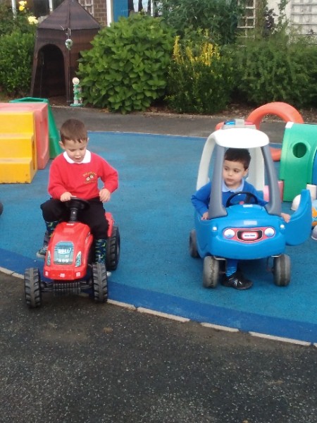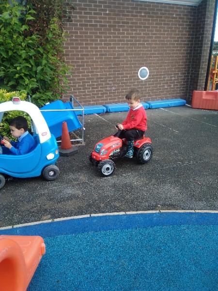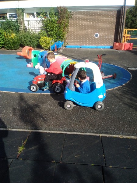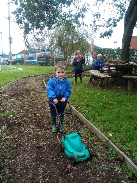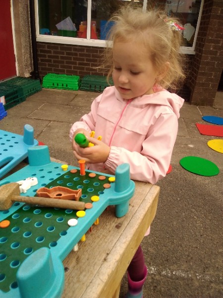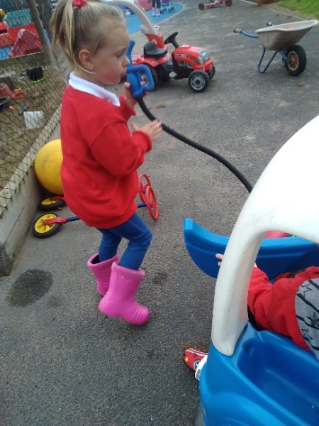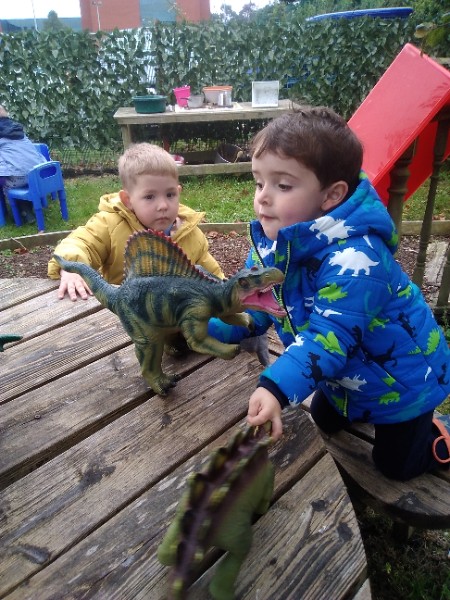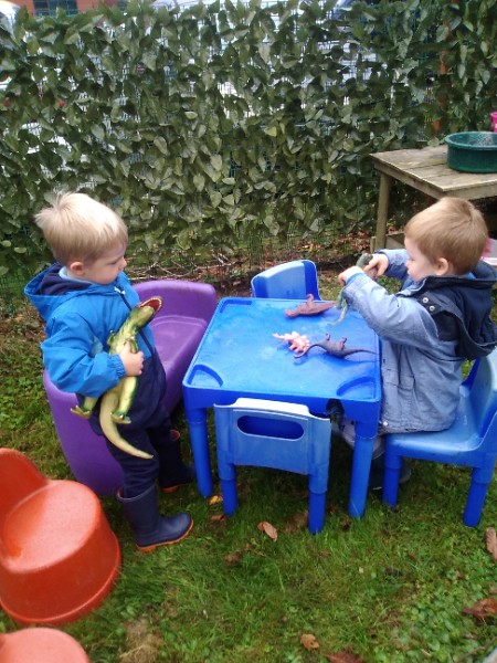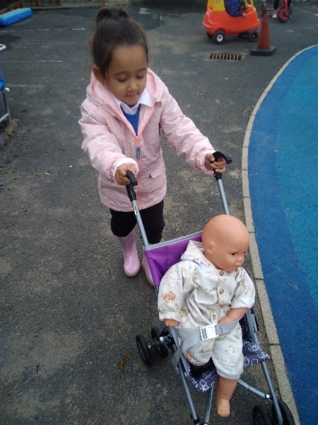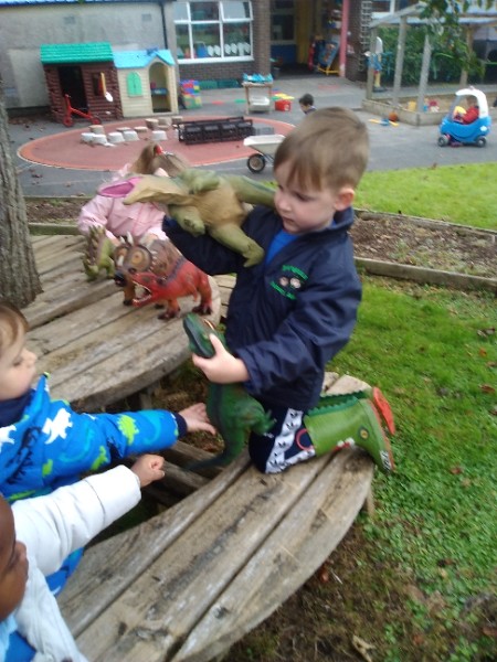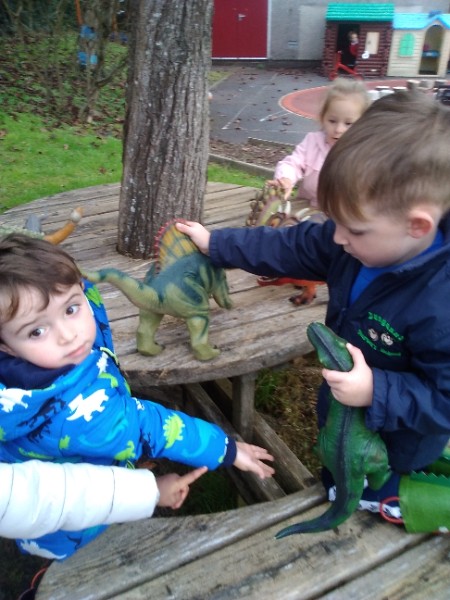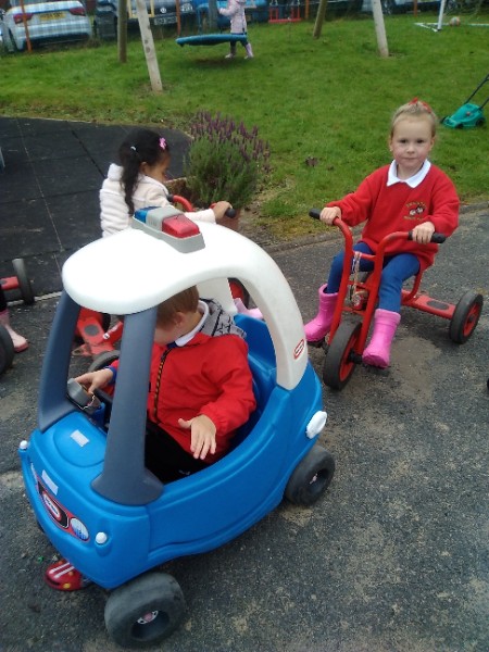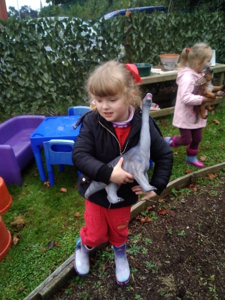 The children spend up to half their day at school playing, exploring and learning outdoors. We have all enjoyed trying out new things this week. There have been hoola hoops, trikes and scooters and space hoppers too. Lots of fun at the mud kitchen and dinosaur world too.