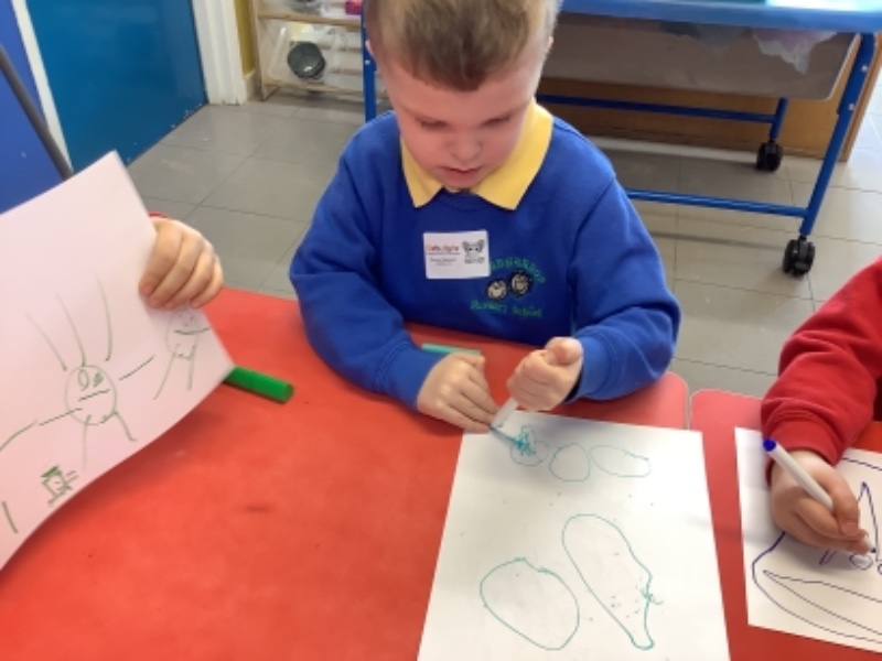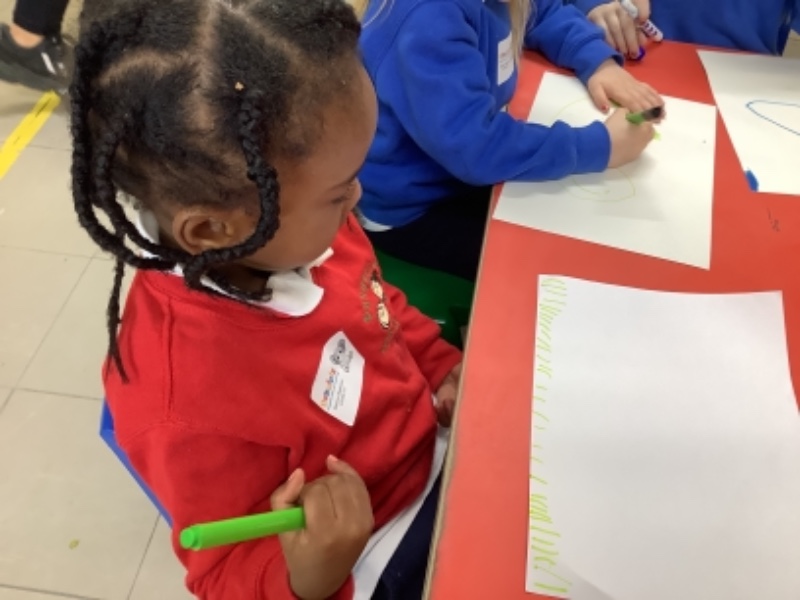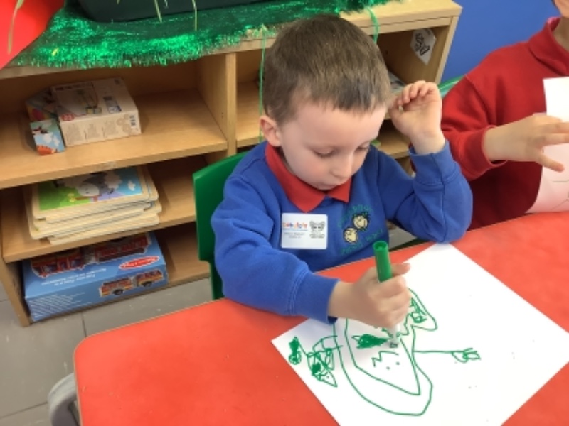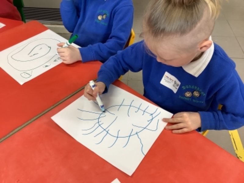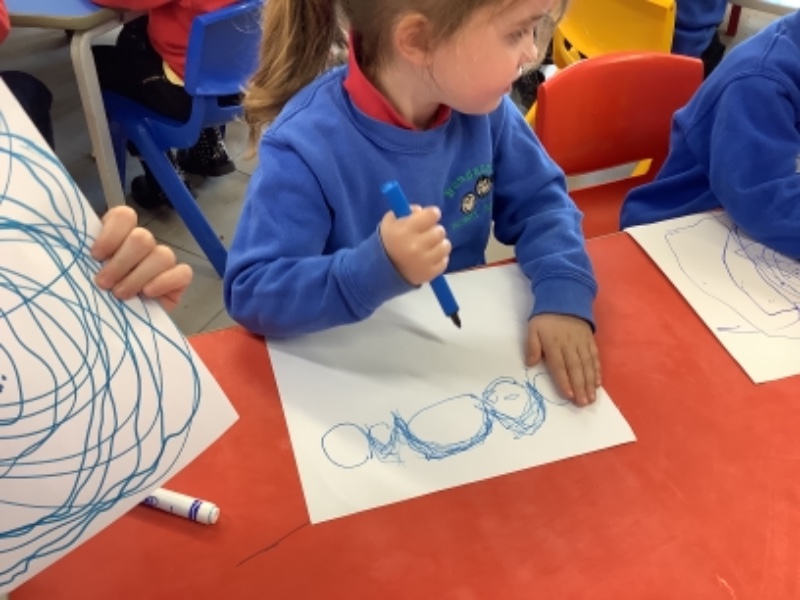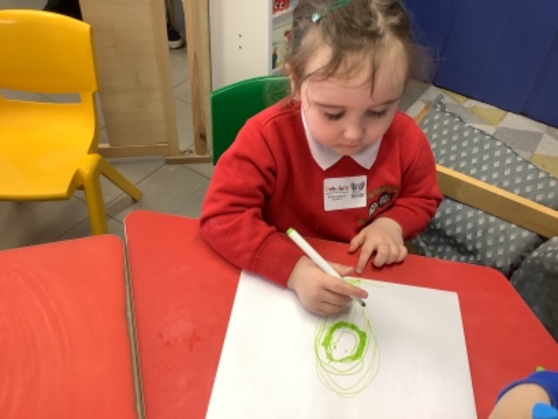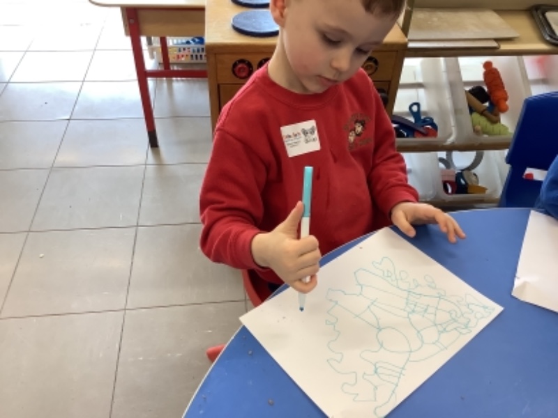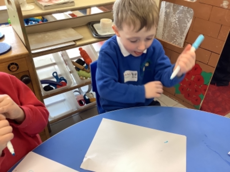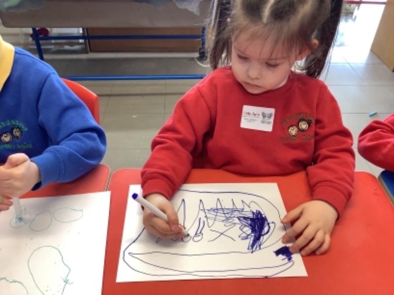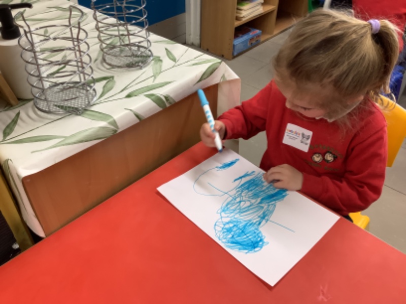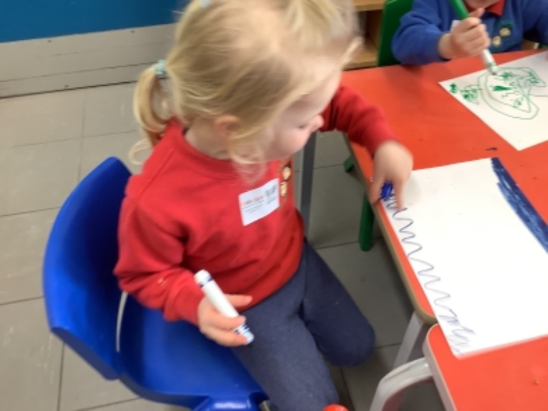 The children enjoy drawing pictures after dinner on Mark Making Monday. Developing our hand muscles and controlling our hand as it moves helps our brains get ready to write letters and words and numbers in Primary 1. To do this children will need lots of experiences to help develop their tripod grip needed to hold a pencil and form letters and numbers. That's why we build with Lego blocks, paint with brushes and take our shoes off and on and lots more as well. All these activities help our hands get ready to write!