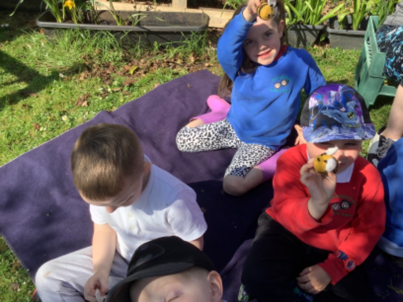 We enjoyed singing and leaning about Minibeasts with Jo Jingles and Jennifer outdoors.