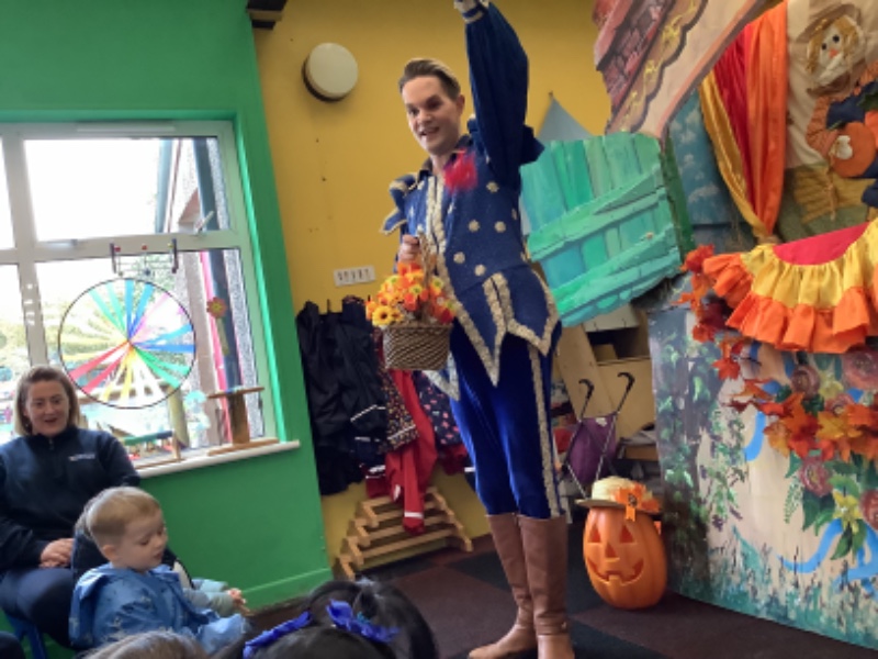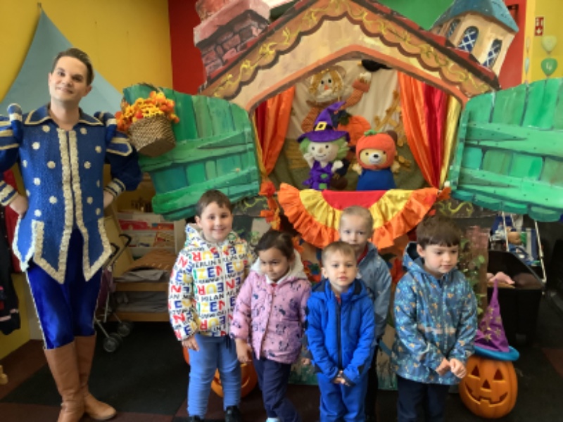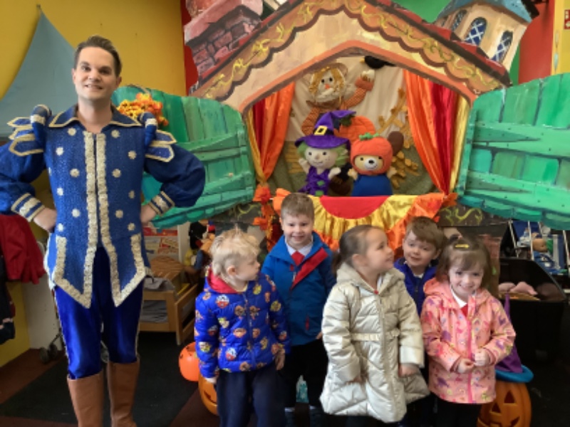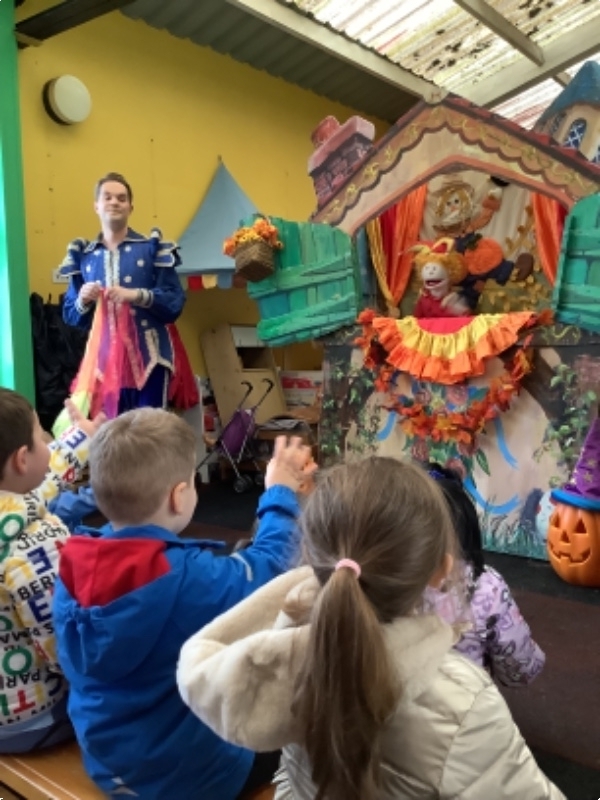 Mr Hullabaloo visited Nursery school to treat the children to a little bit of magical puppet theatre. The theme was Autumn and the children really enjoyed joining in with his songs and stories.