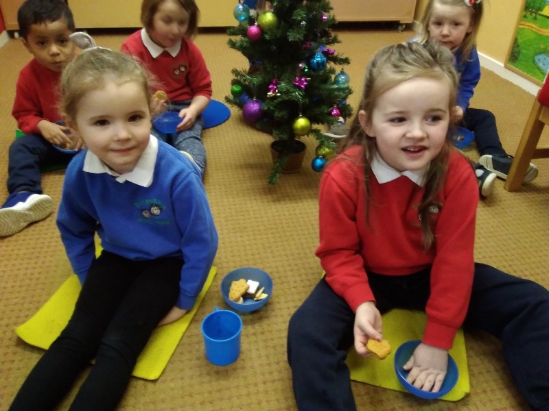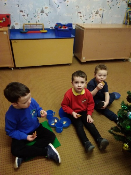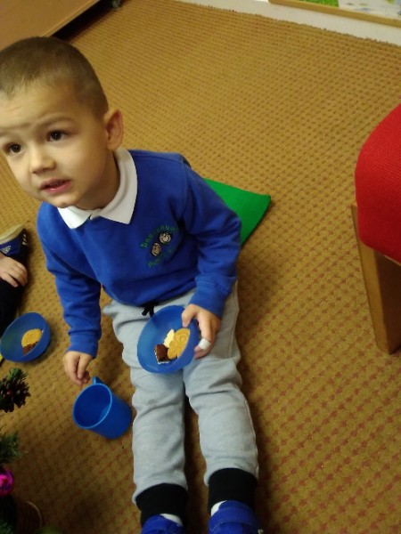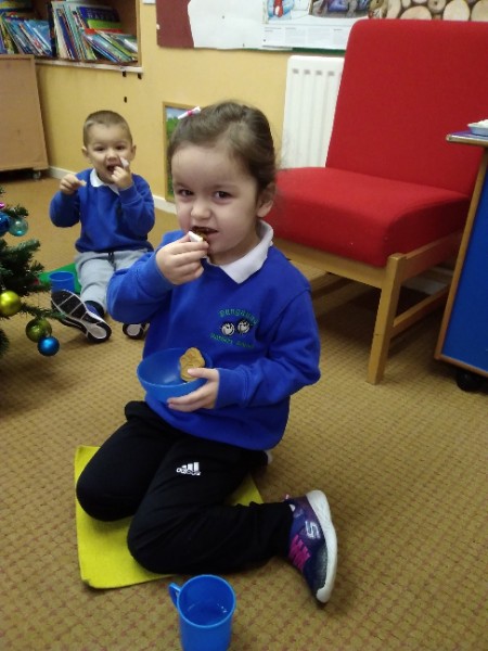The boys and girls tried Christmas snack around their Christmas Tree. We had mince pies, Christmas cake, Gingerbread cookies, Christmas tree crackers and oranges too. It was thoroughly enjoyed by everyone!