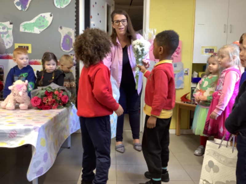 Thank you to all the boys and girls in nursery 2 for helping surprise Mrs Lagan and for all the beautiful gifts and well wishes. We will miss Mrs Lagan greatly but wish her all the very best as she enjoys her maternity leave.