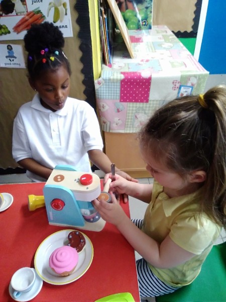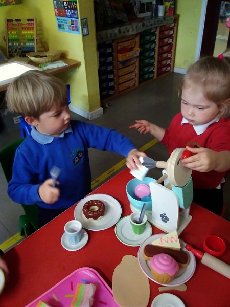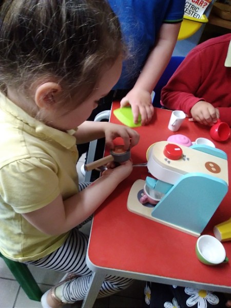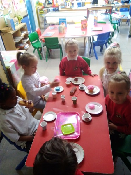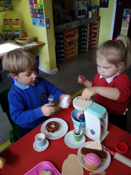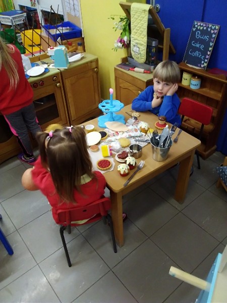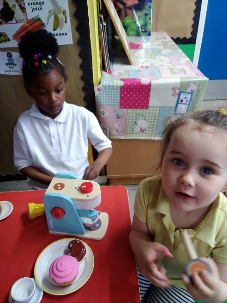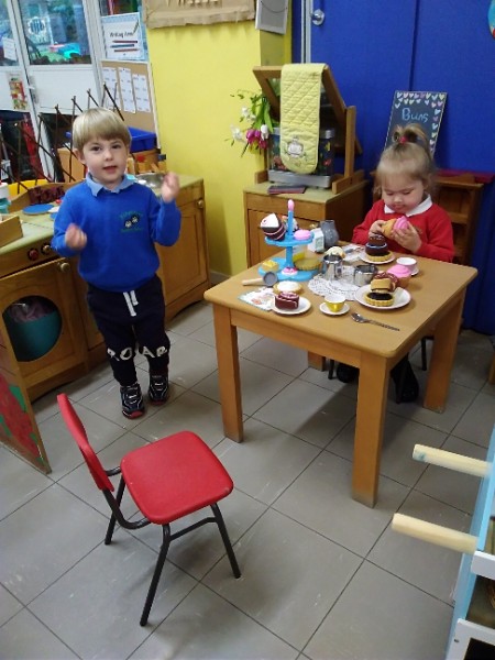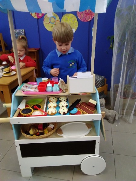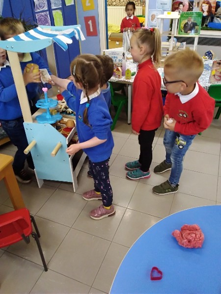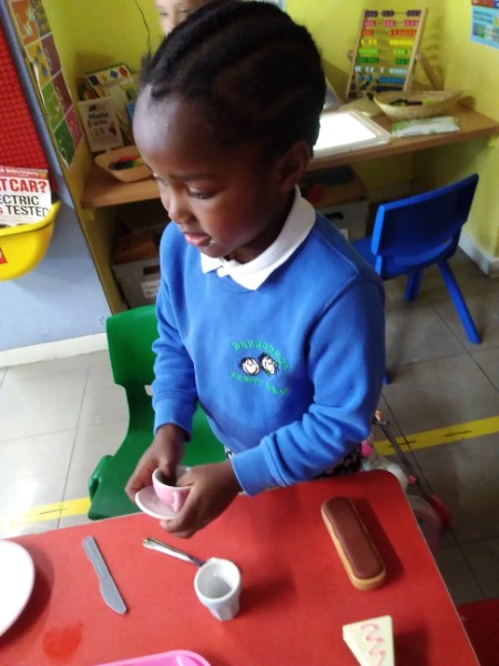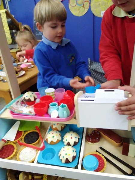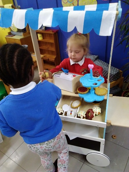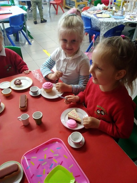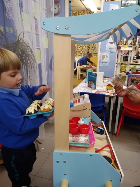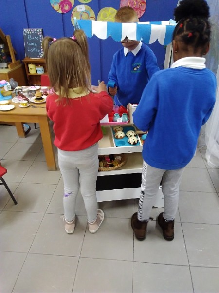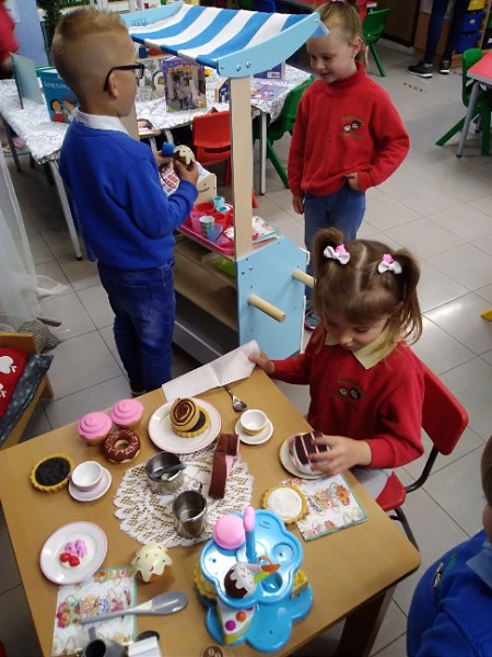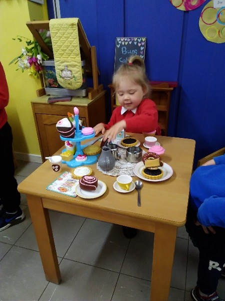 Mrs. Hudson's Class have set up a great Coffee Shop as they explore their Theme of people who help us in our community. We hope we will all enjoy getting out and about now that restrictions are eased. The children have been learning about the shapes of the cakes and buns, counting out numbers of items ordered and remembering each person's order too. We pretended to take them home and have a party with our best china.