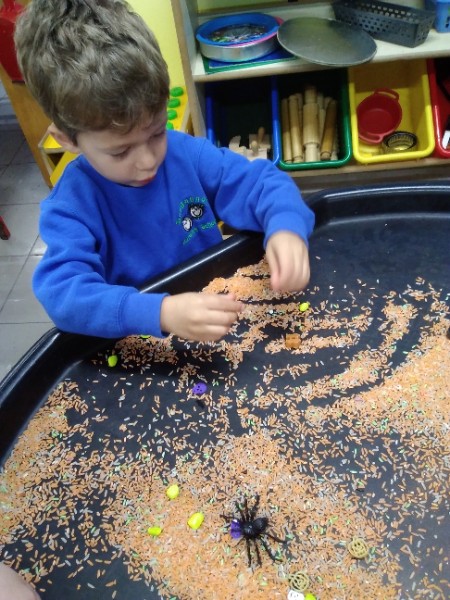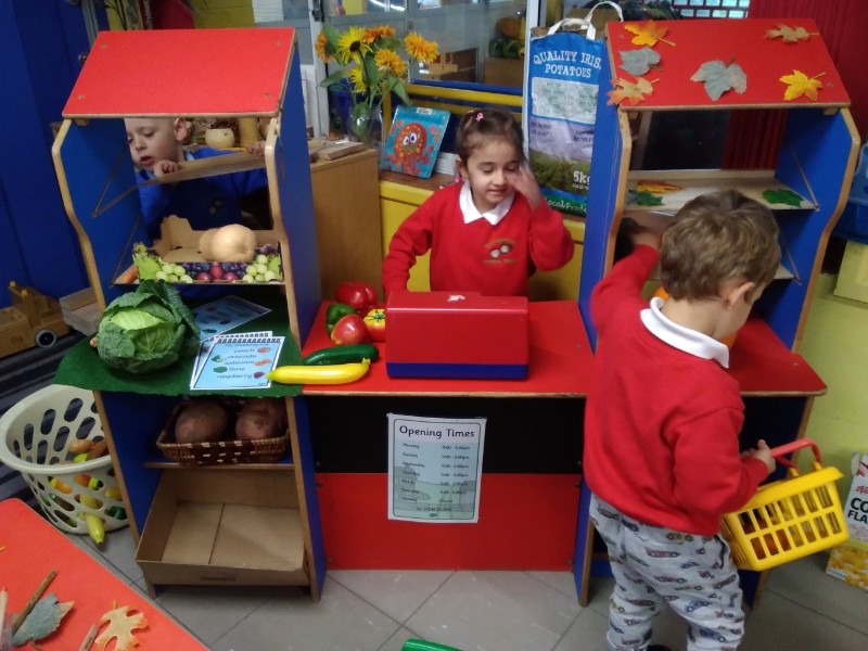 We have been busy playing with the farm toys, learning about different foods through harvest, making soup and finding out about autumn colours.