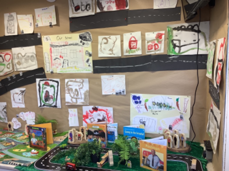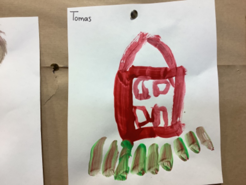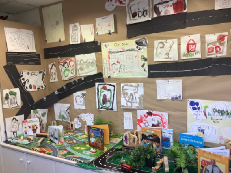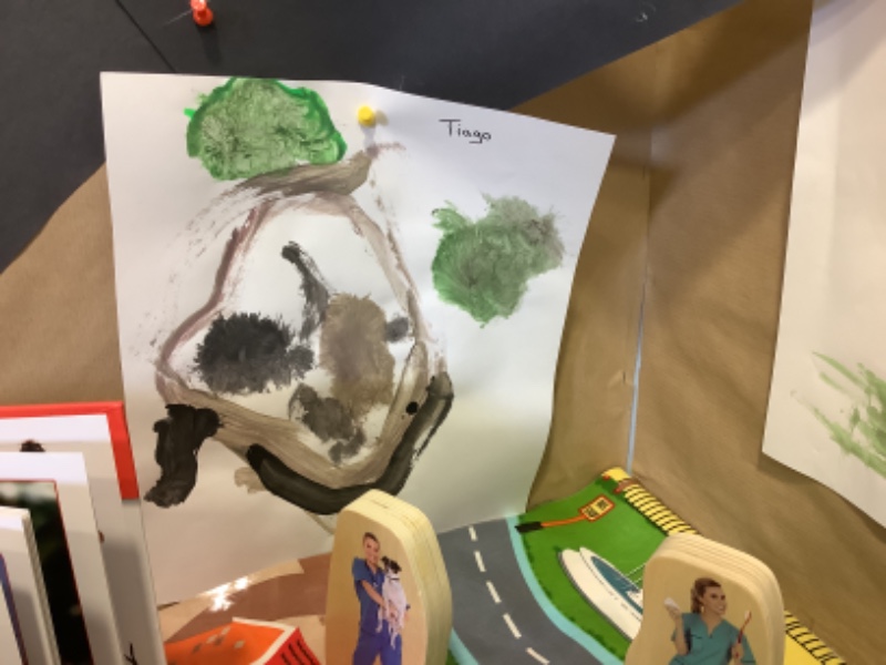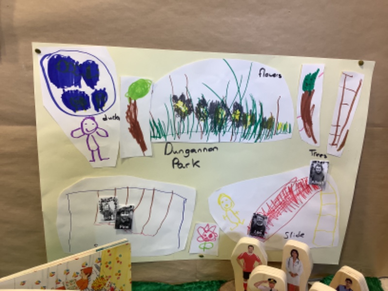 The children have been learning about their local community. They have painted pictures of their homes with Mrs. Greenaway and drawn pictures of local places like McDonalds, Tesco, Hospital, Dungannon Park and Ring of Neill with Miss Park.