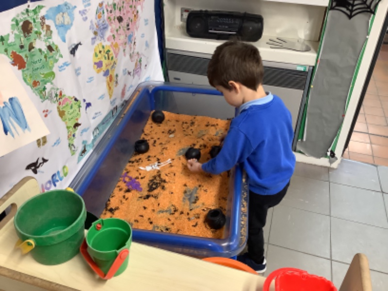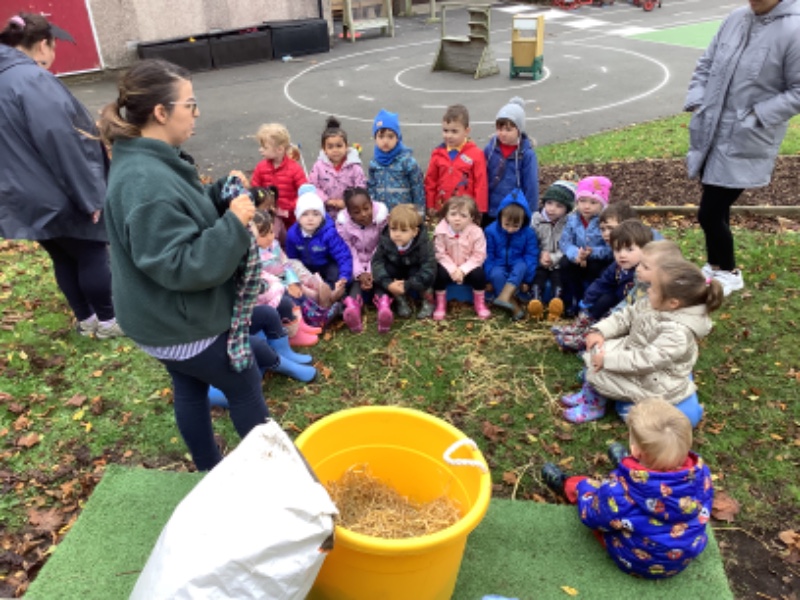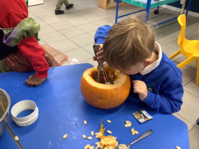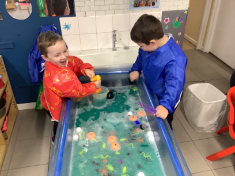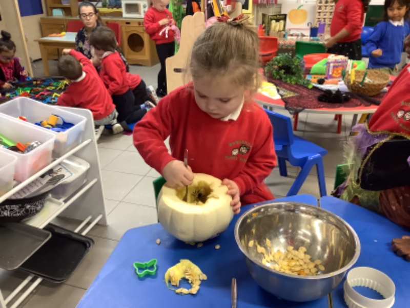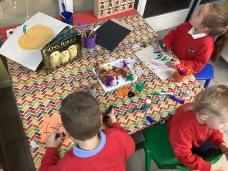 Another week of fantastic learning! We are increasing our independence by learning to pour our own drinks and continuing to practice putting on our own coats/boots to go outside. We loved helping Mrs Lagan to create our very own scarecrow which you can see on the fence in our playground. Owl babies, Halloween and Joe Jingles have all kept us very busy little bees. We look forward to our Halloween party on Monday where the children can dress up if they wish.