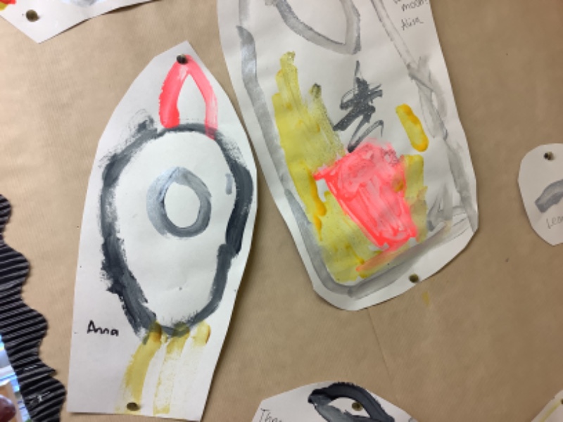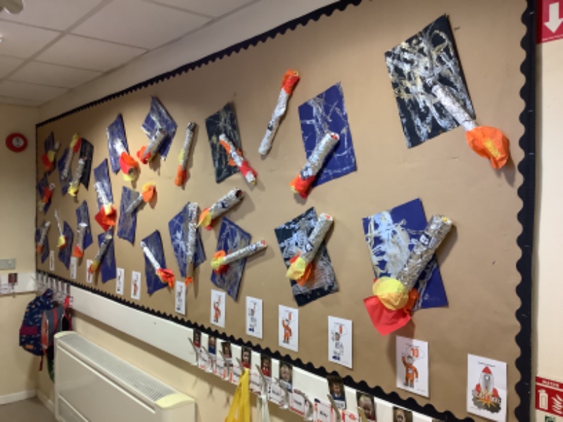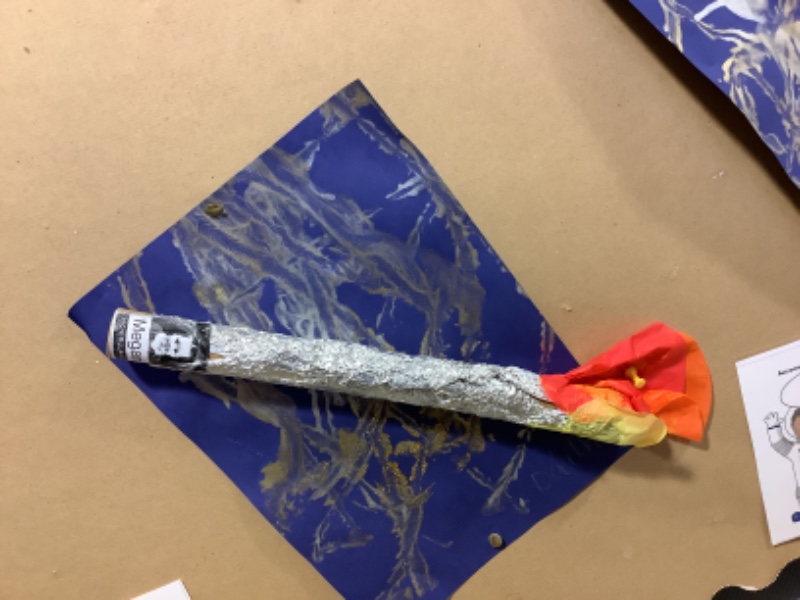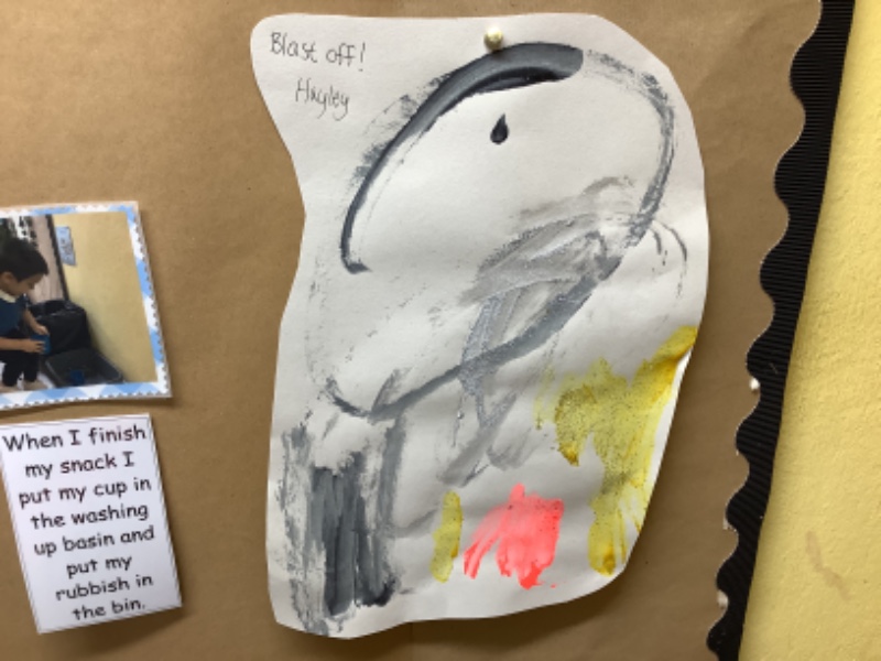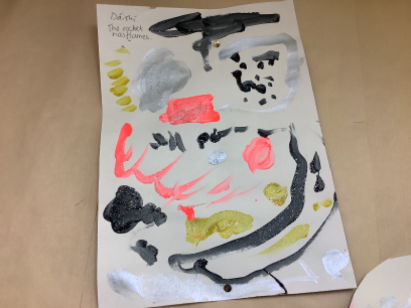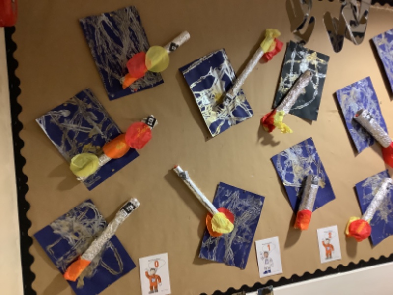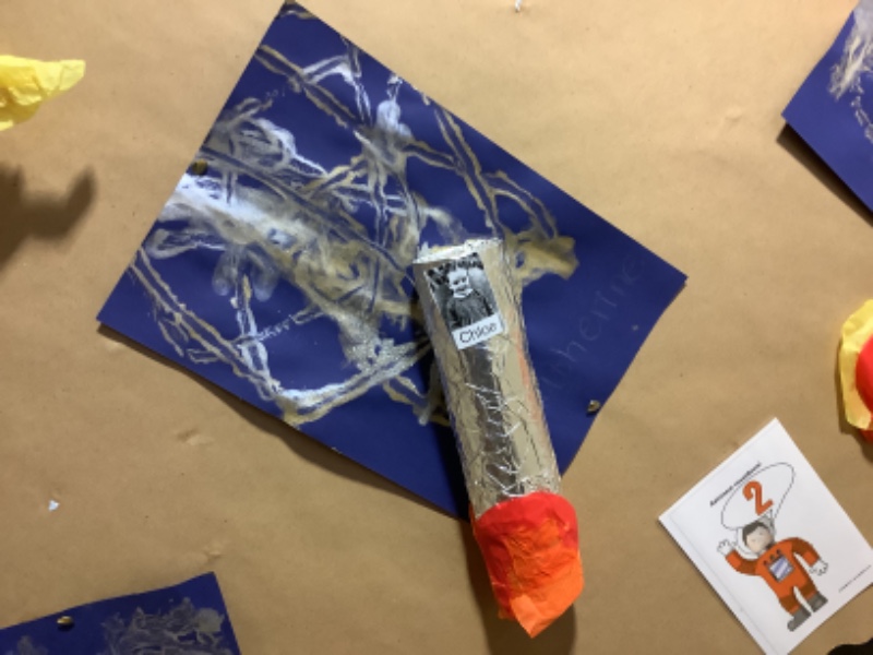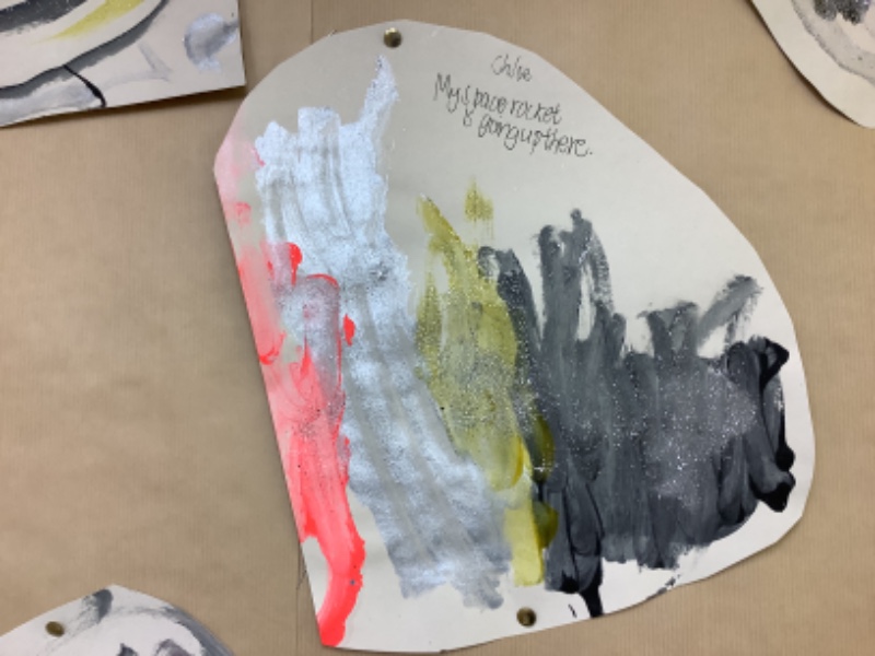 Nursery Room 1 have been busy creating and making during our theme of space. They have painted pictures of rockets, made a moon collage, printed a starry sky picture and made a space rocket too. We are learning how to cut paper using scissors and we worked together to make a super giant zebra.