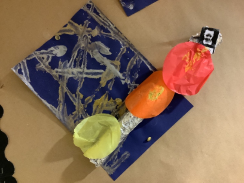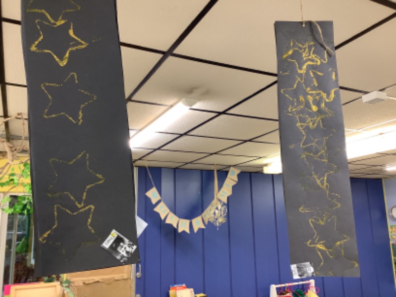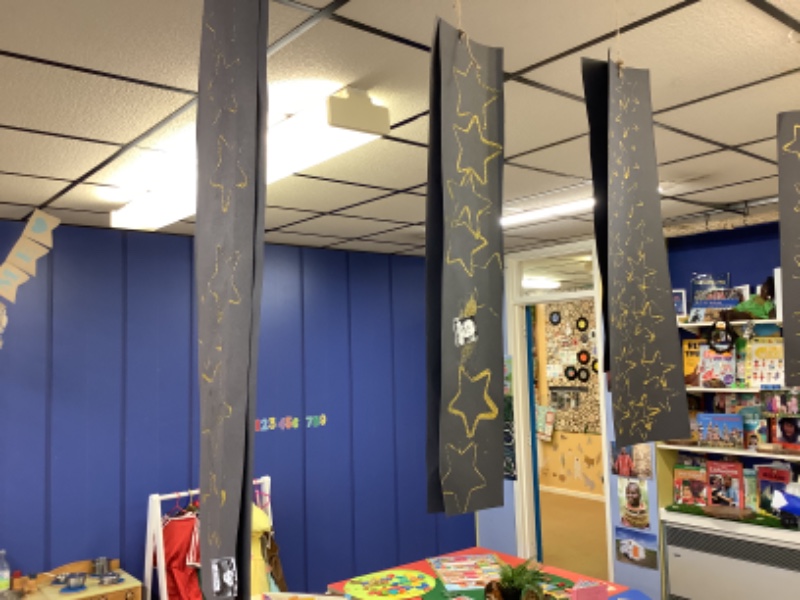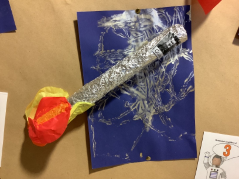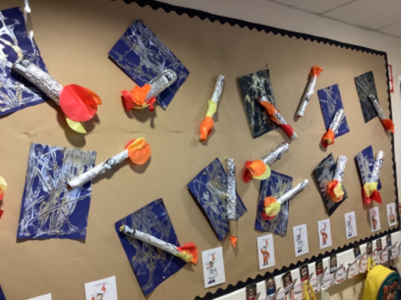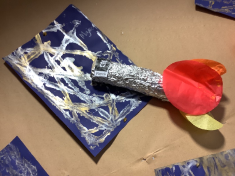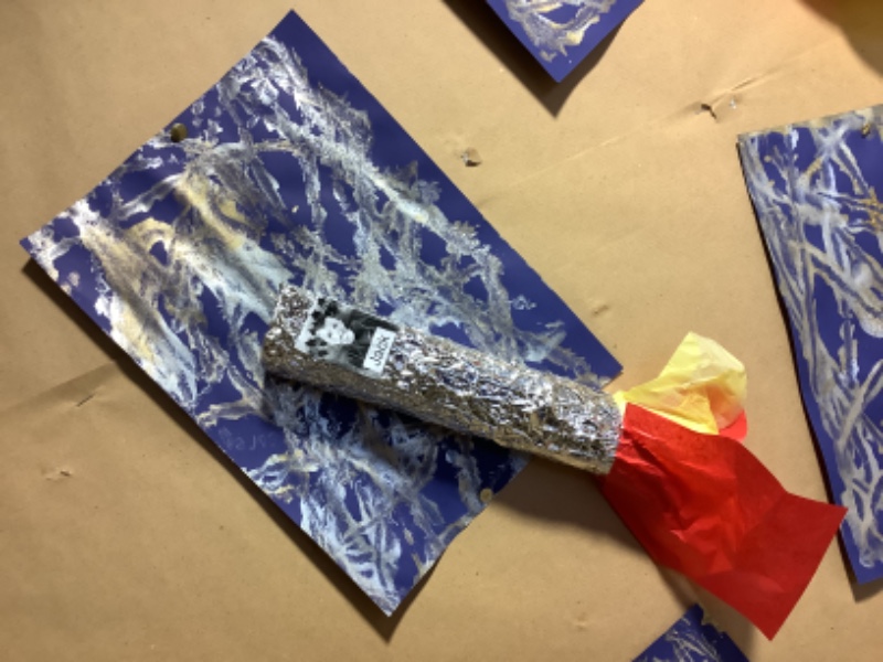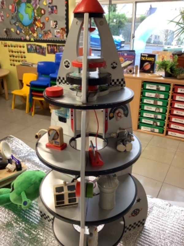 Nursery Room 1 have been busy creating and making during our theme of space. They have painted pictures of rockets, made a moon collage, printed a starry sky picture and made a space rocket too. We are learning how to cut paper using scissors and we worked together to make a super giant zebra.