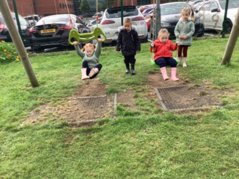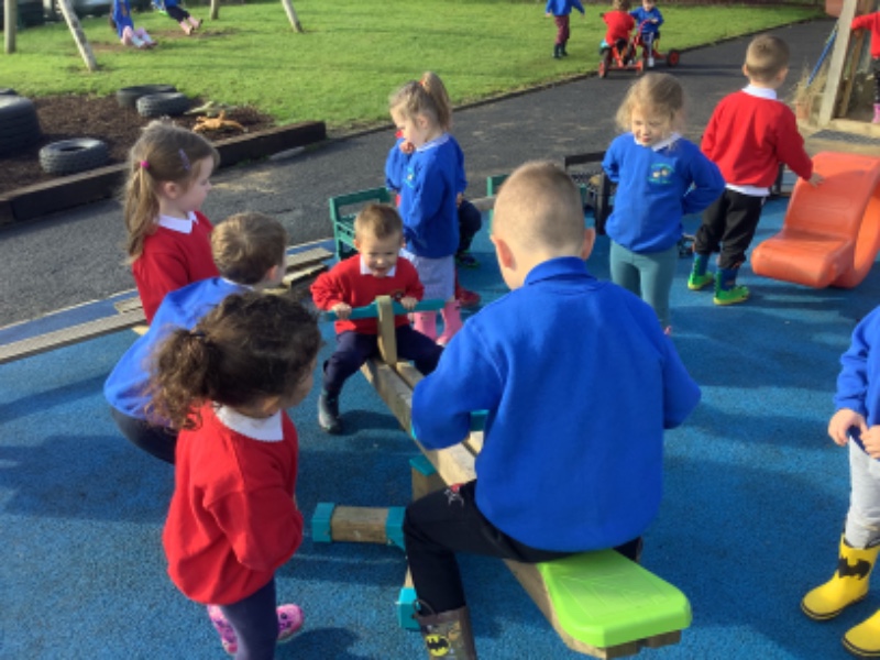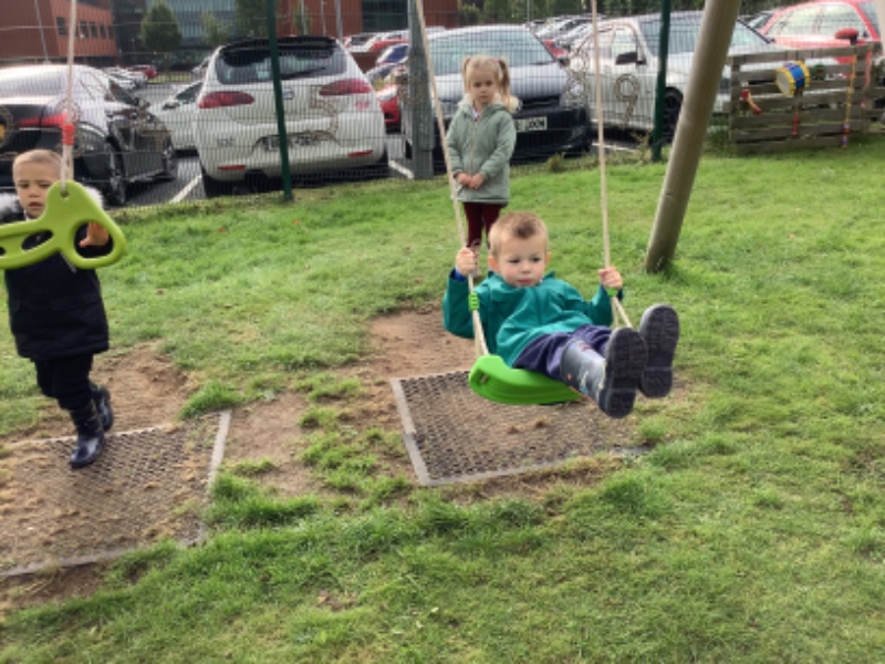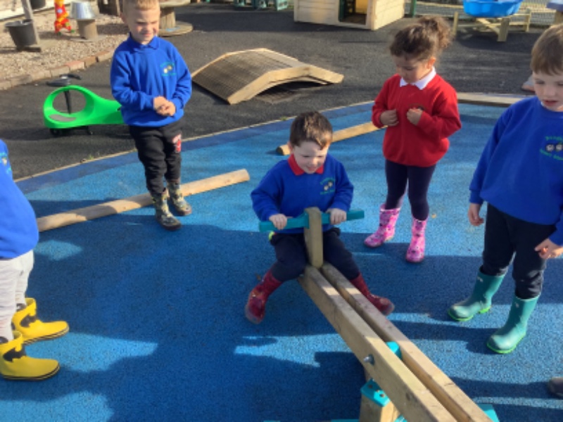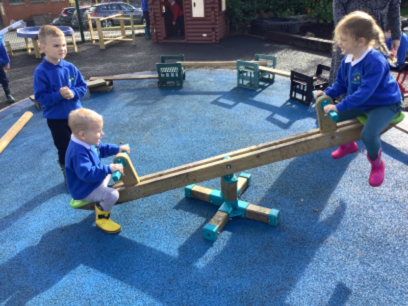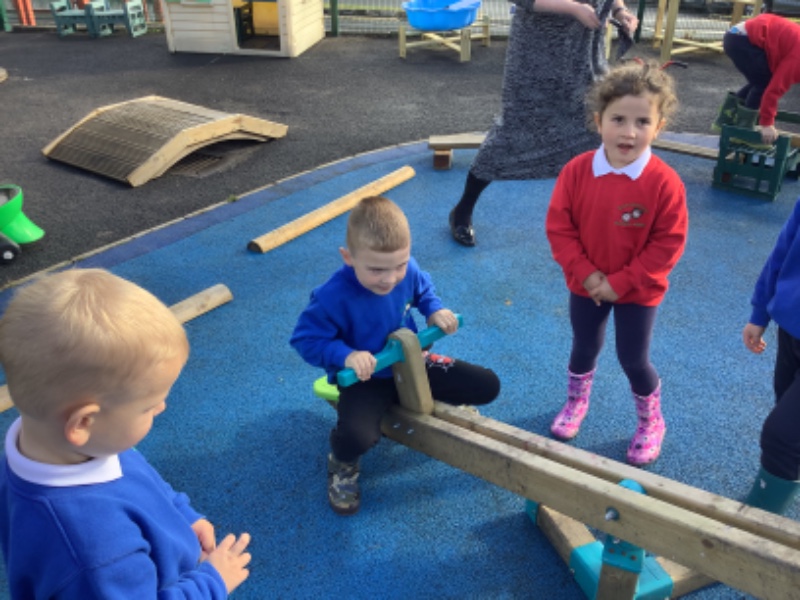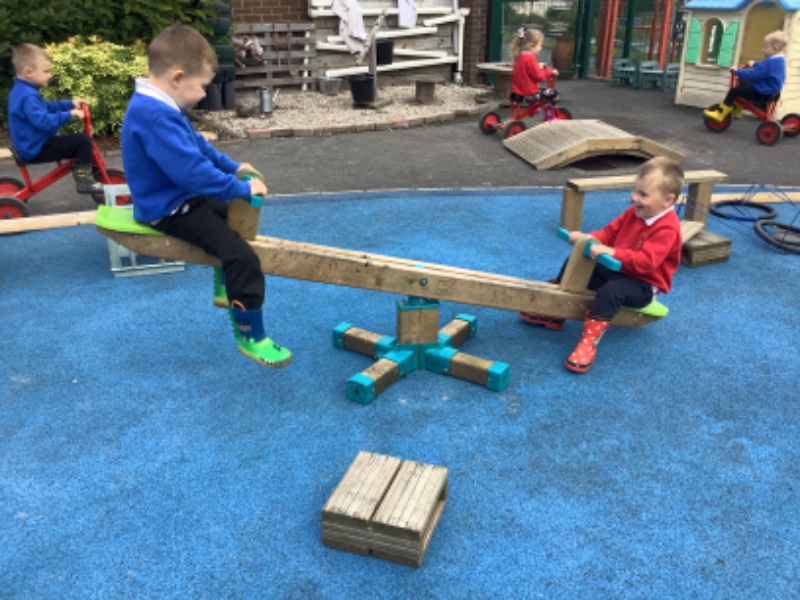 The children have been outside exploring and learning. There are 2 new types of swings to try out. There are bikes and trikes too. And 2 types of seesaws as well!