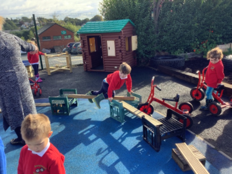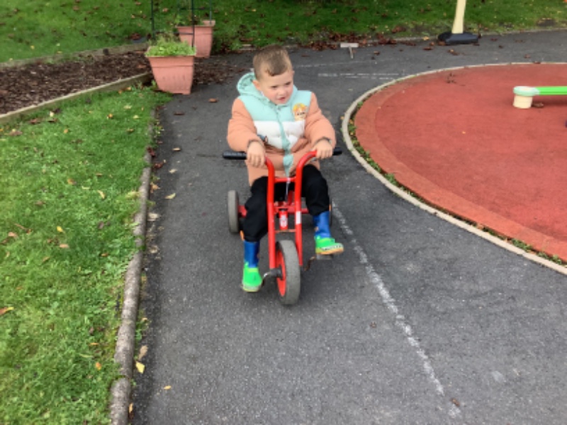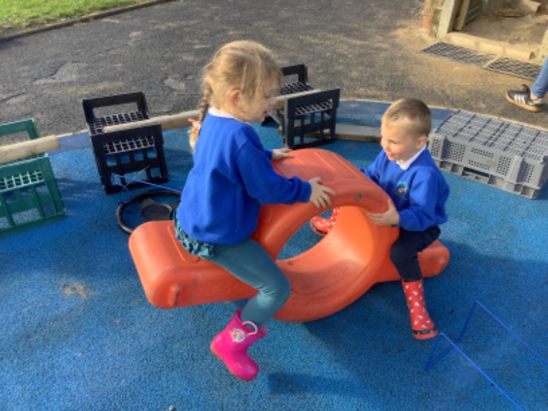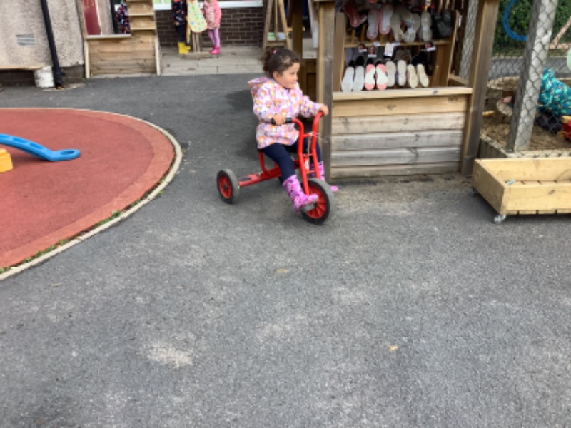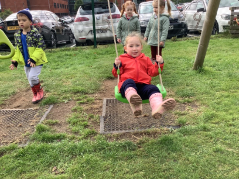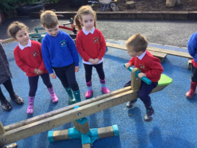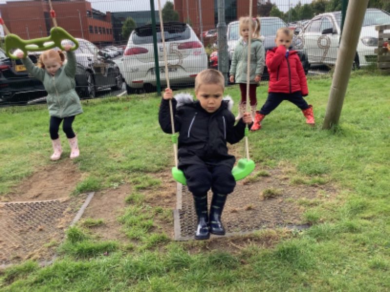 The children have been outside exploring and learning. There are 2 new types of swings to try out. There are bikes and trikes too. And 2 types of seesaws as well!