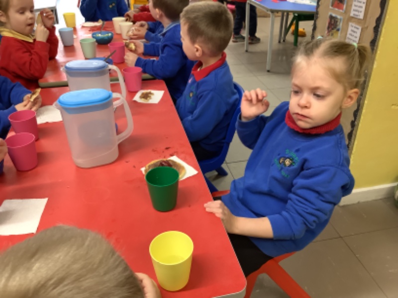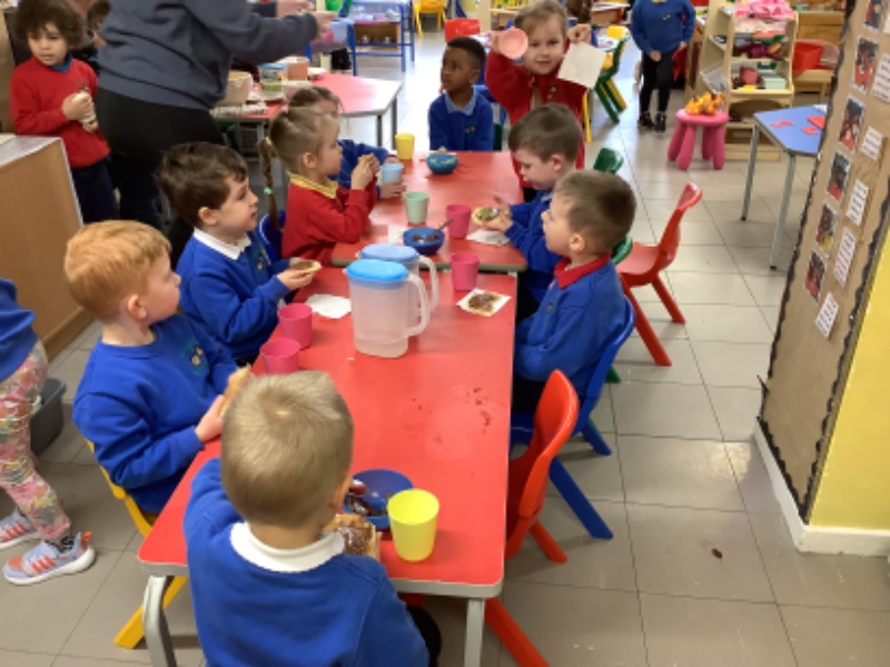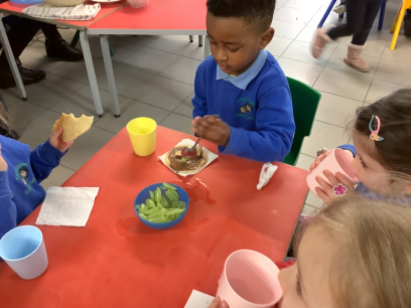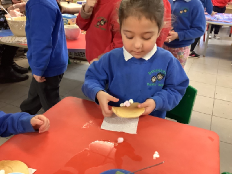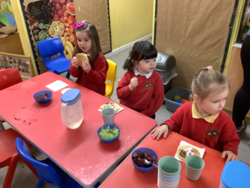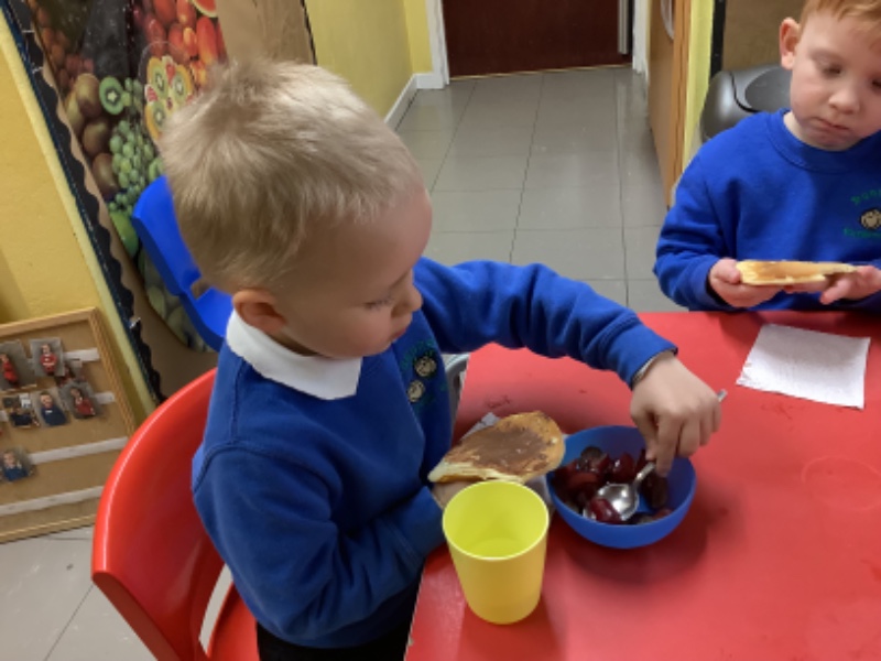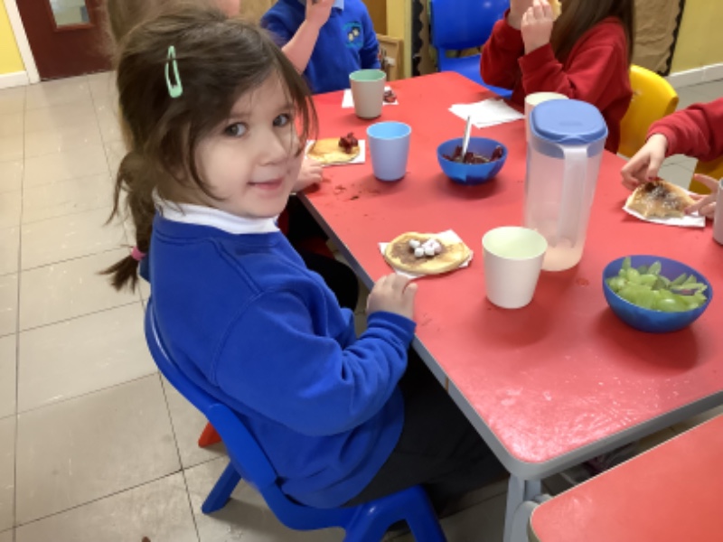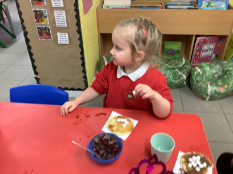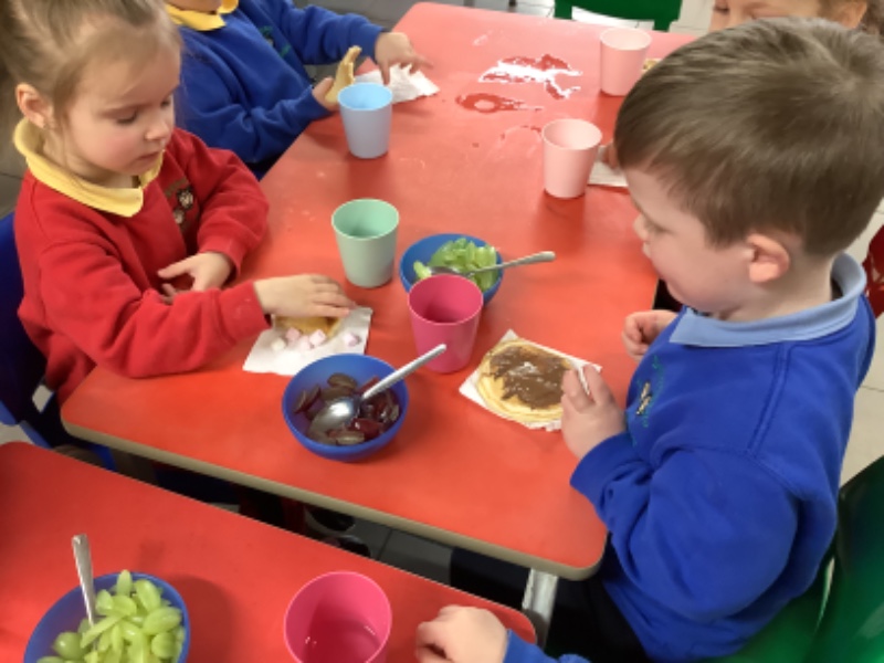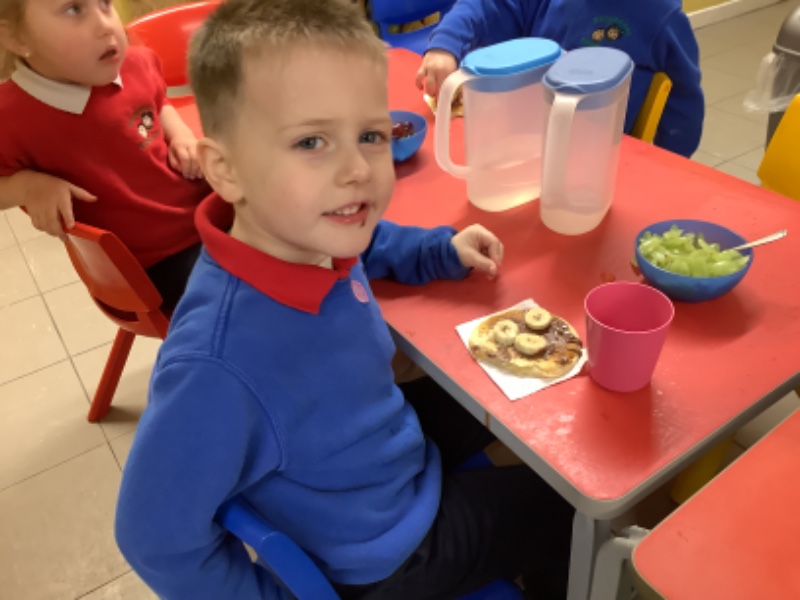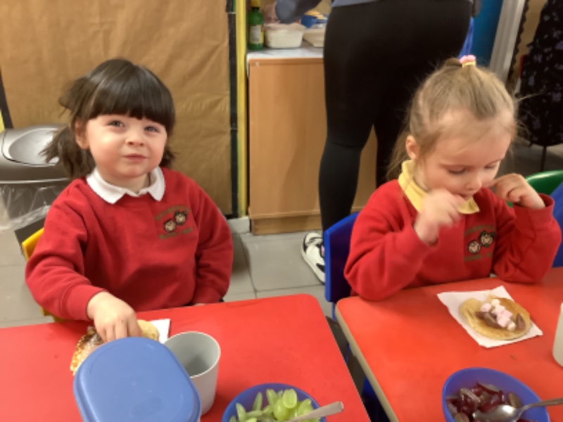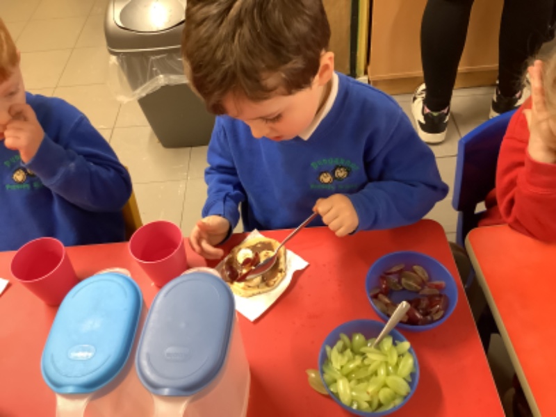 The children thoroughly enjoyed making pancakes with Mrs Hudson and choosing all their lovely toppings for snack.