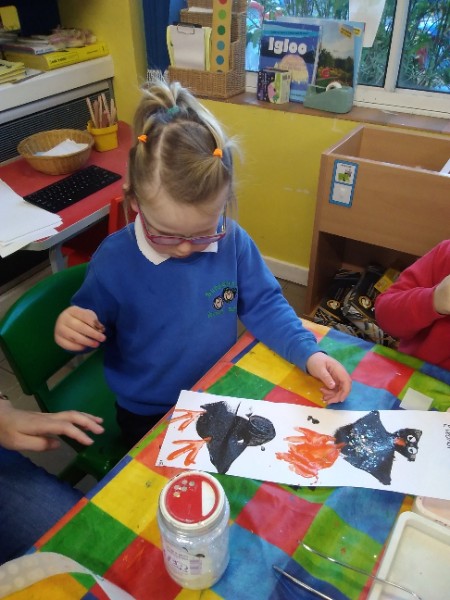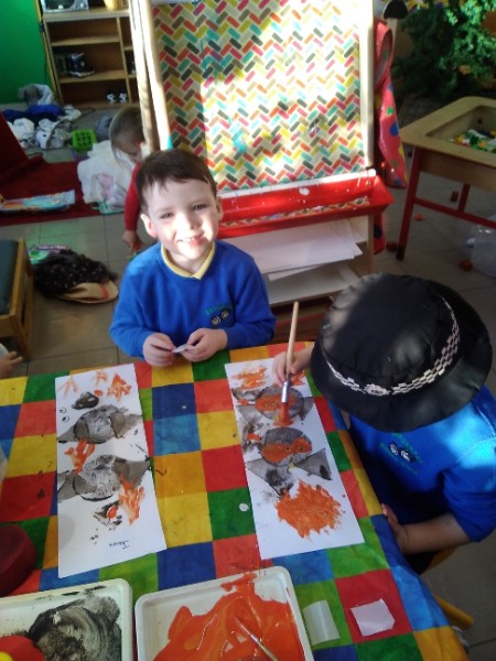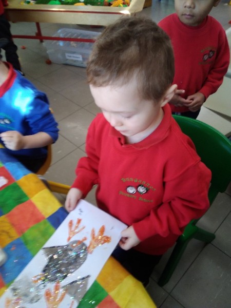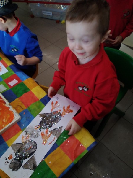Our children are exploring shapes in their learning environment. They heard a funny story about a penguin who ate some funny shaped snowballs - a square snowball, a triangle snowball and a heart snowball. The children decided to create shape penguin pictures.