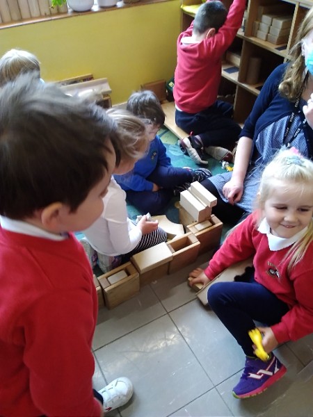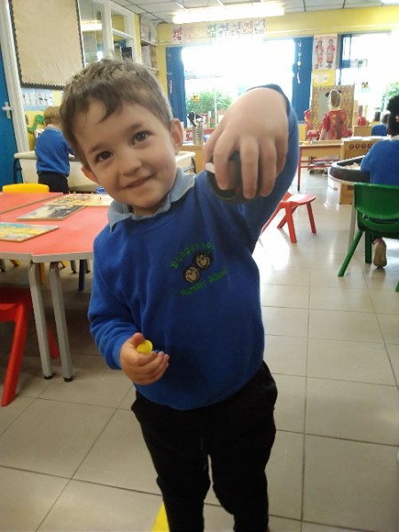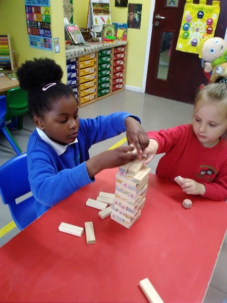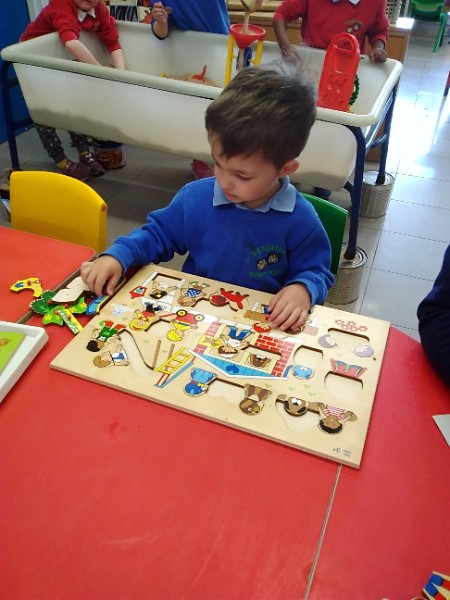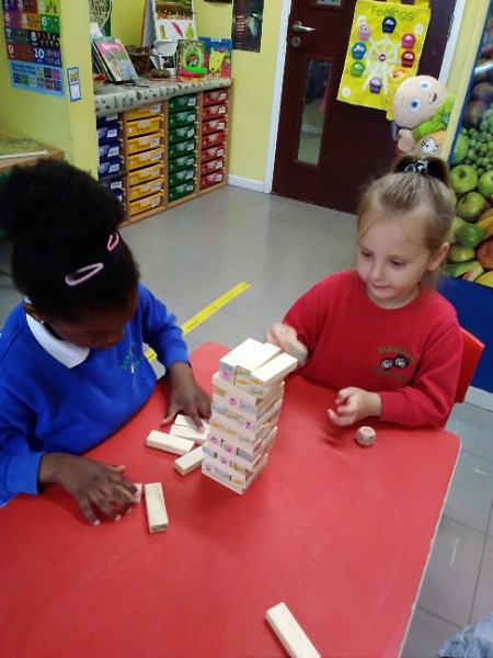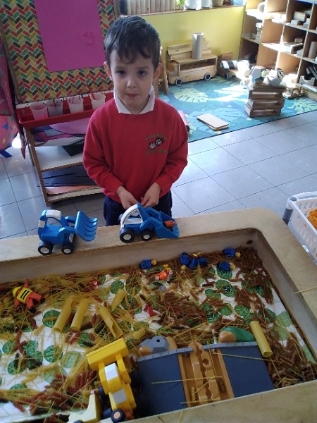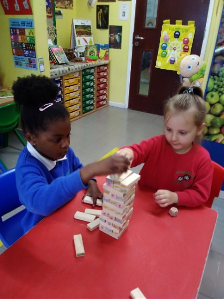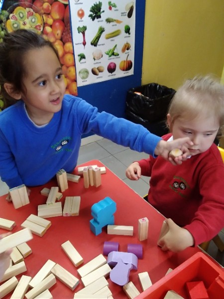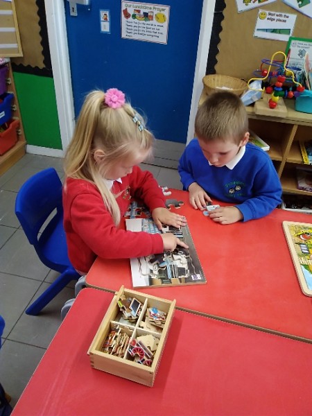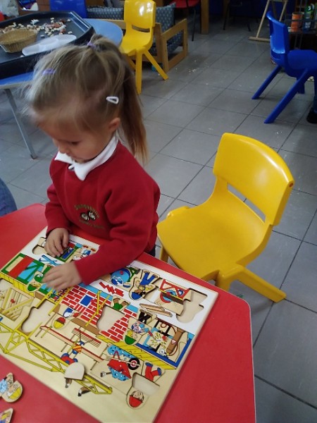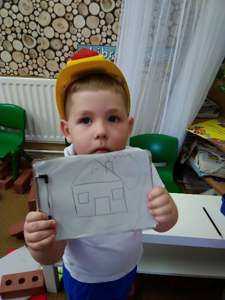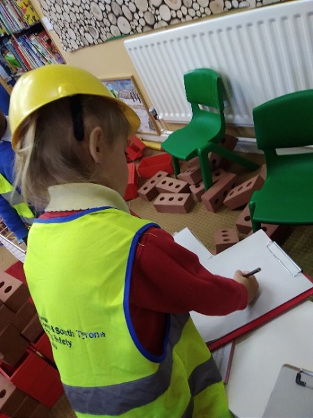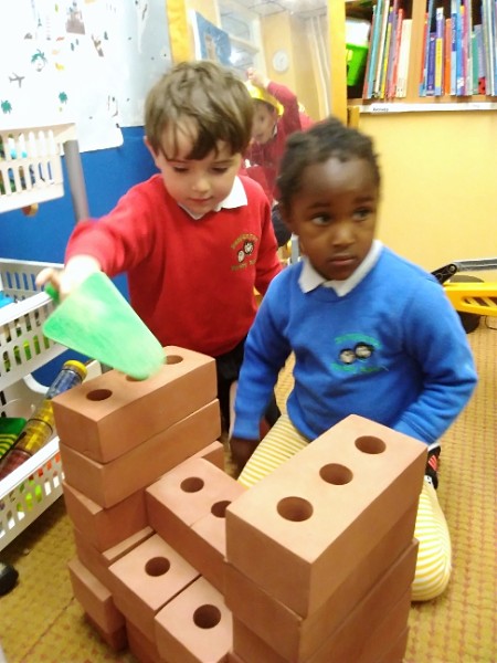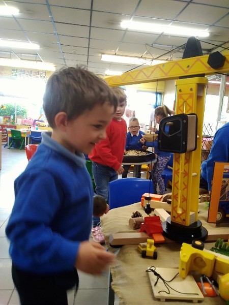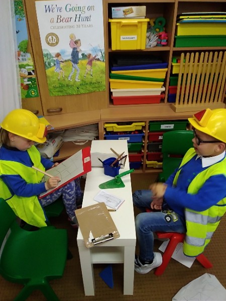 This week the children in Mrs. Hudson's Class have been thinking about how construction workers help us in out community. The children have been using large bricks, cement diggers and JCBs in out role play area as they pretend to be construction workers and develop their gross motor skills. At the small world area the children have used small figure and vehicles to create and play together, sharing and taking turns and communicating with one another.