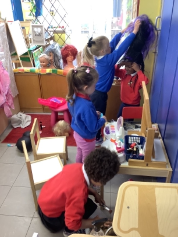 The children have been learning about people who help us everyday like construction workers, secretaries, mechanics, car washers, hairdressers and beauticians.