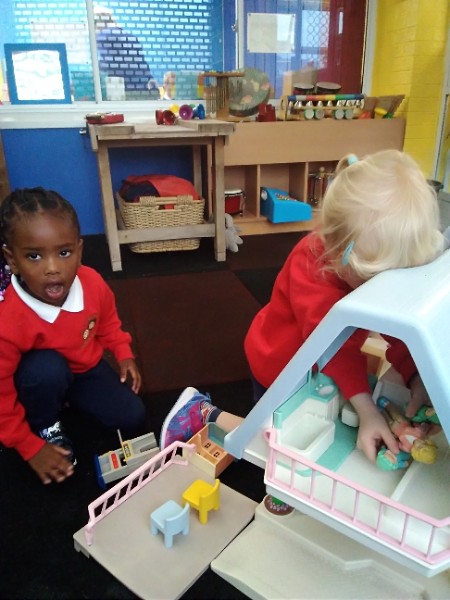 During the Nursery session the children have the opportunity to play and learn in the Covered Area. There are no tables and chairs.