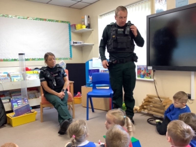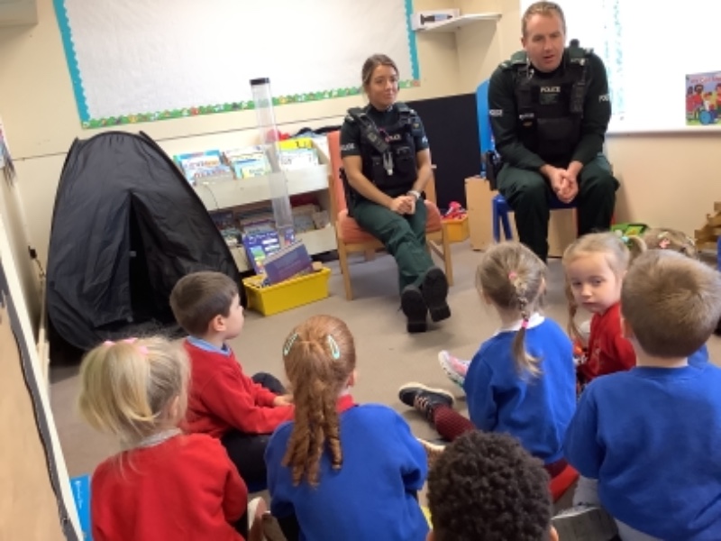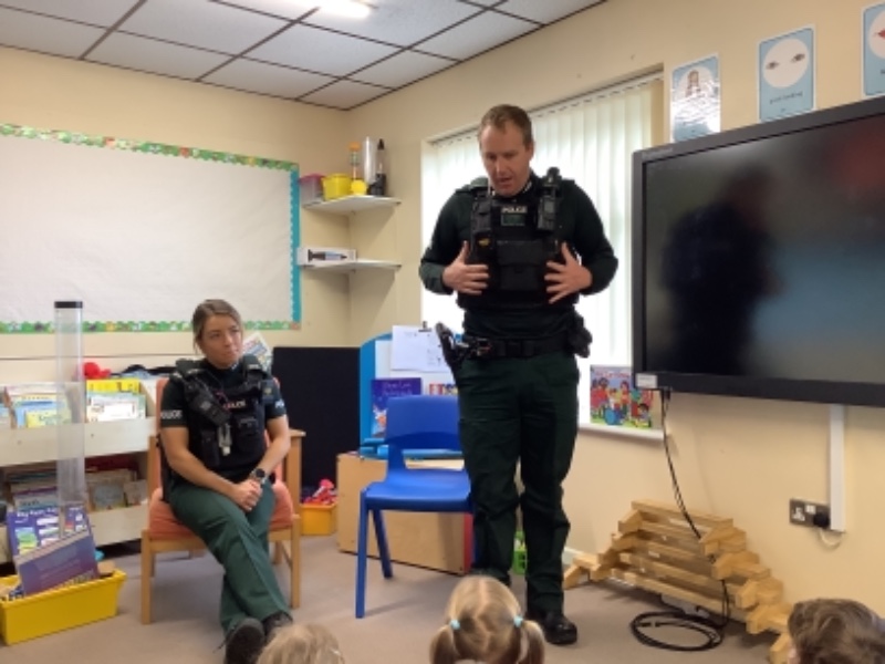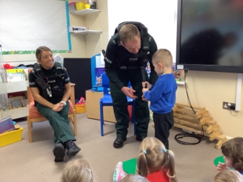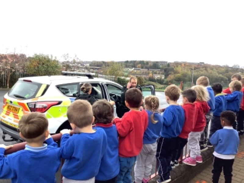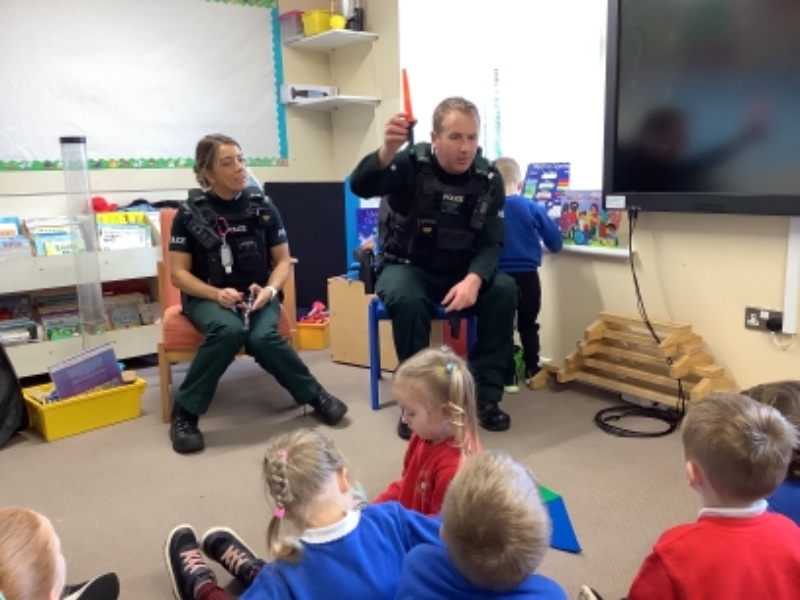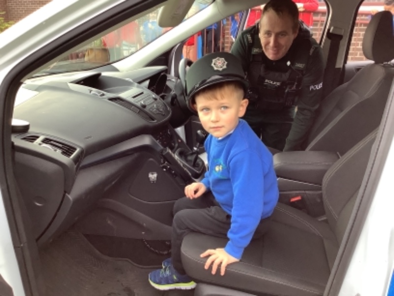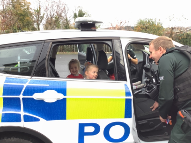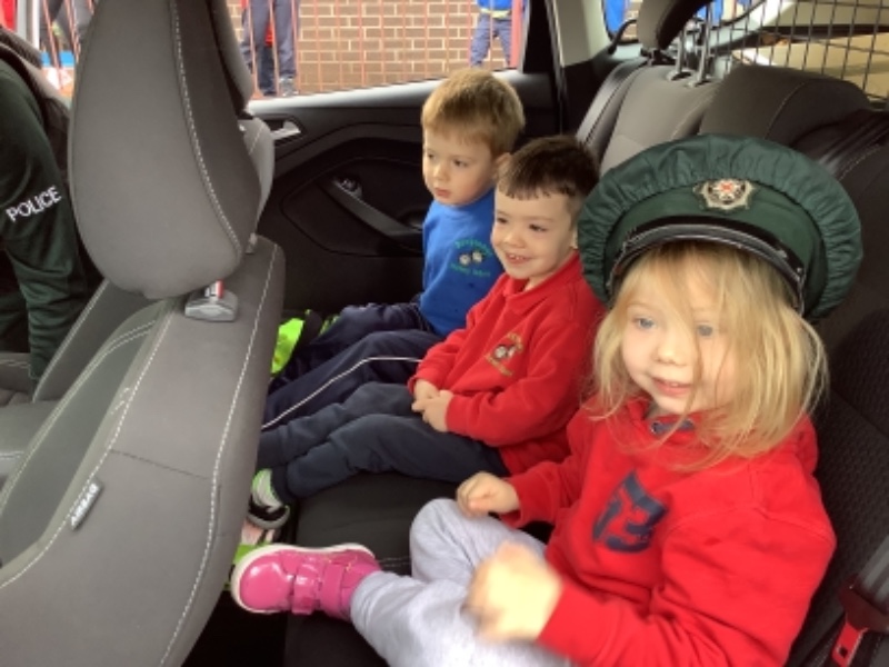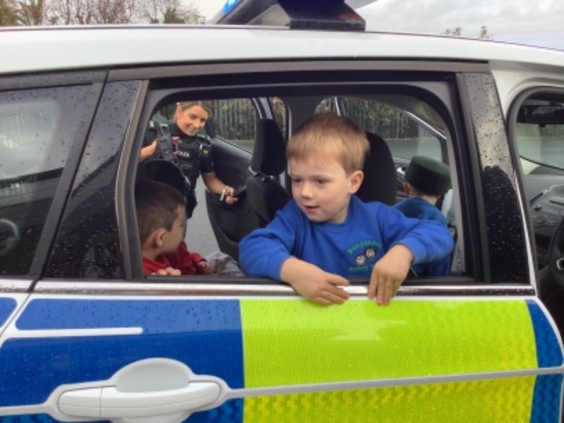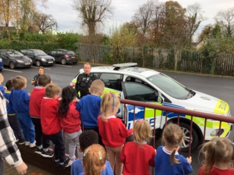 The local Police Officers visited Dungannon Nursery School. They talked about how they help to keep Dungannon a safe place to live and how we can stay safe. We know to always wear a seatbelt in the car, hold our adults hand when crossing the road, we practised shouting 'Stranger Danger'. We got to sit in the police car and Mrs Lagan turned on the siren 🚨