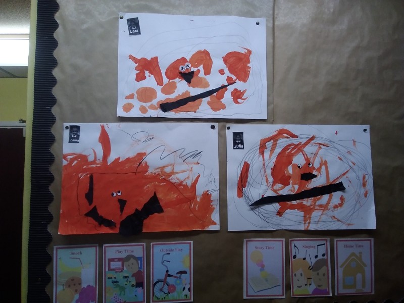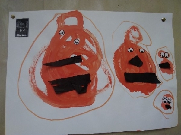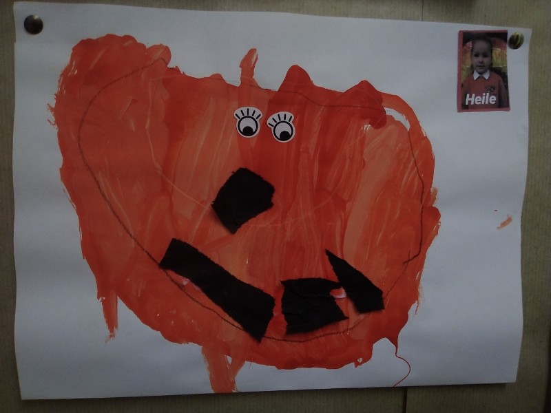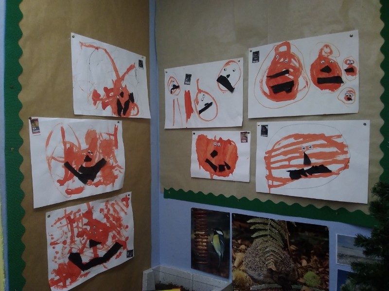 The children have been painting some pictures of Harvest Time Pumpkins.