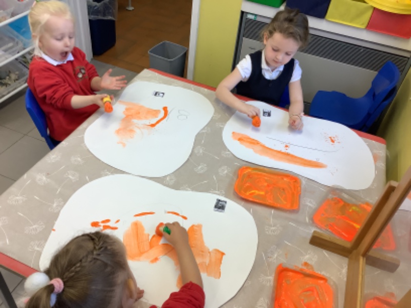 We love painting pumpkins and making pumpkin prints and pumpkin cut and stick pictures!