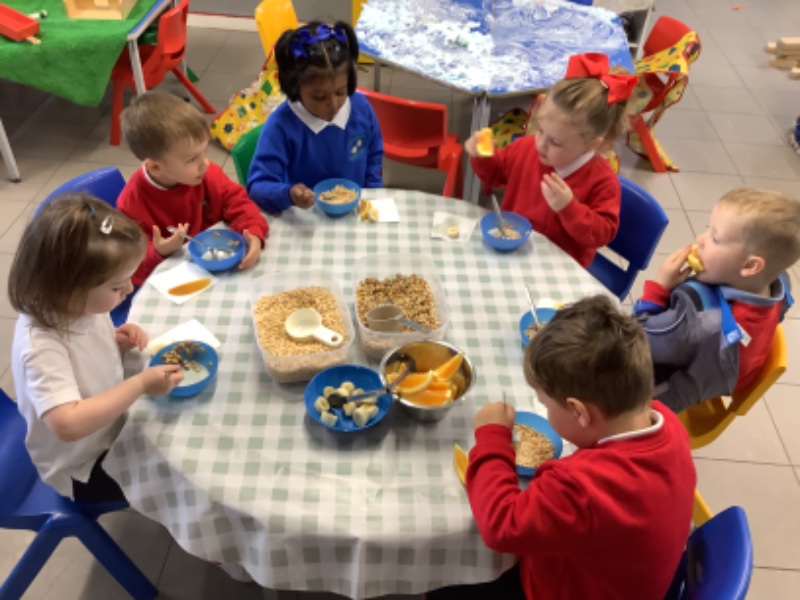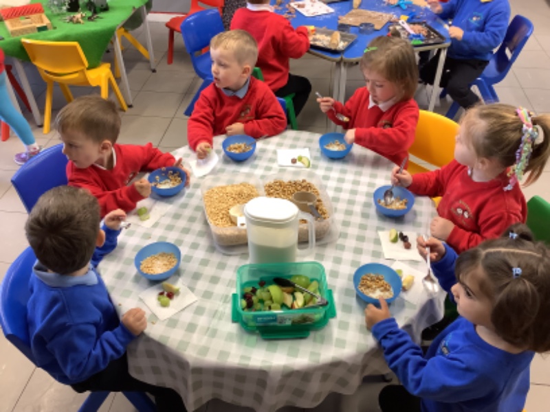 Blue group have really enjoyed welcoming all our new friends in the red group to Nursery 2 this week. The children are now confidently following class routines and are loving this weeks snack of cereals and fruit.