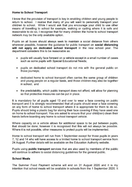 The Department of Education has released revised guidance regarding the reopening of schools in September.