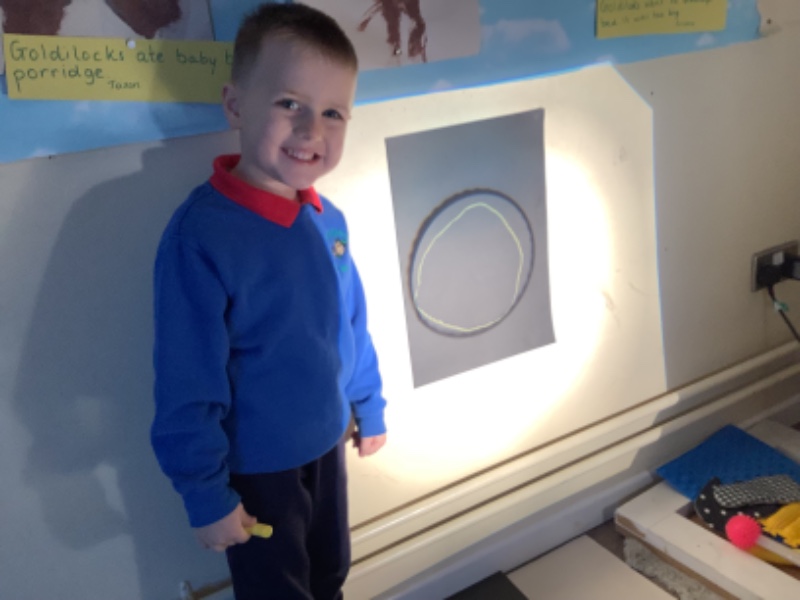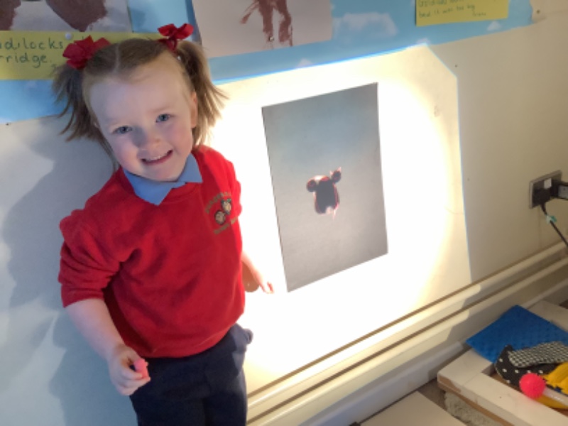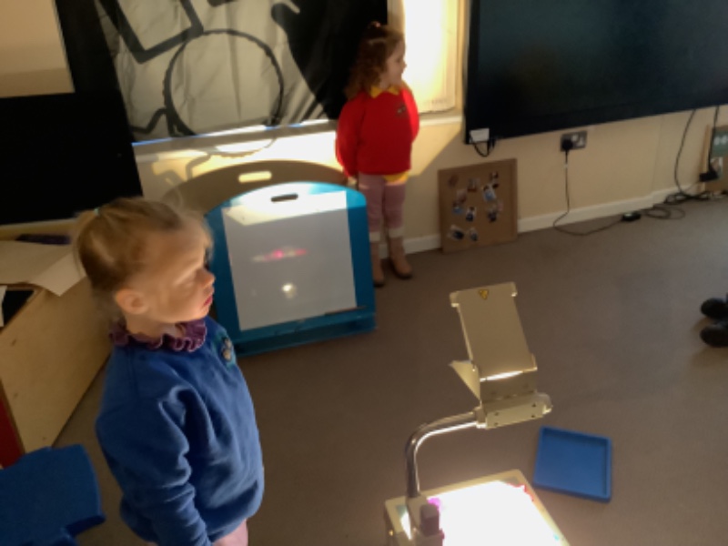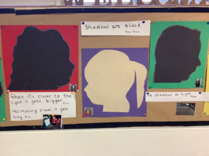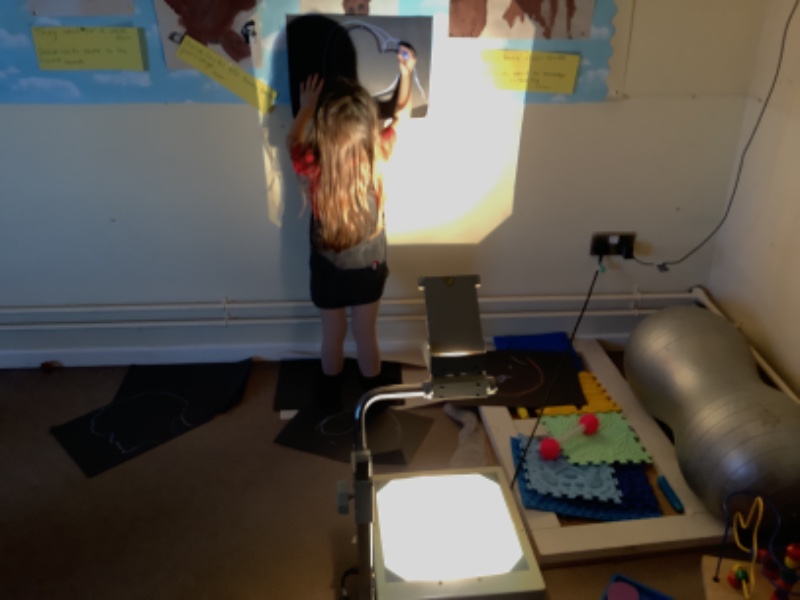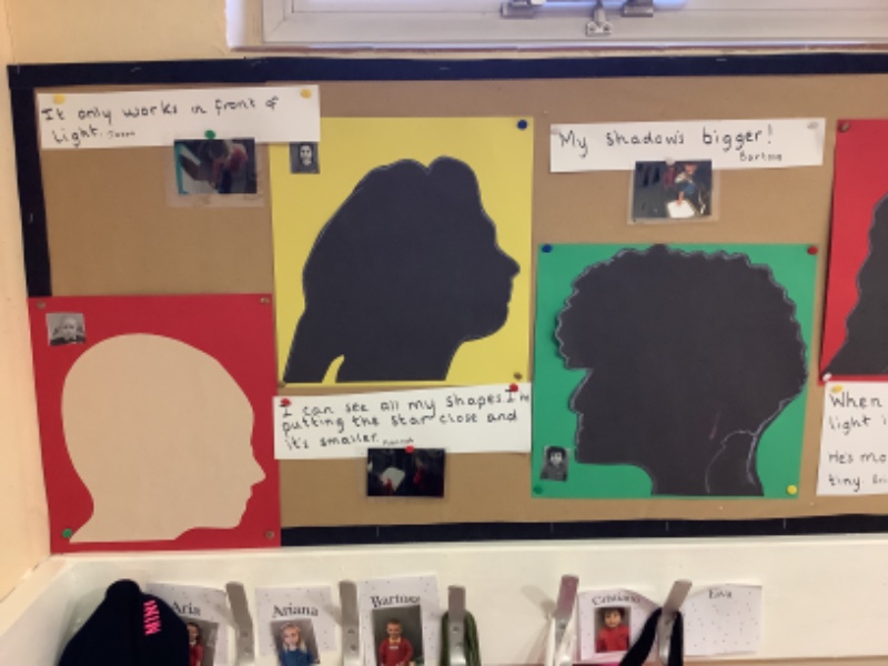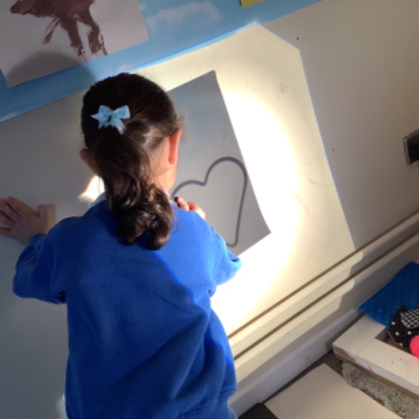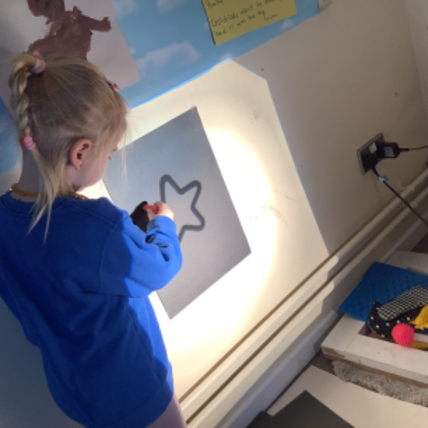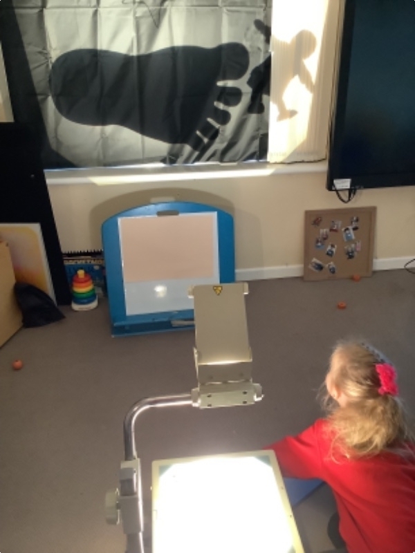 Nursery 2 have turned very scientific and have been learning about shadows. We chased our shadows outside and used the projector in class to create shadows on the wall and draw round our own profiles.