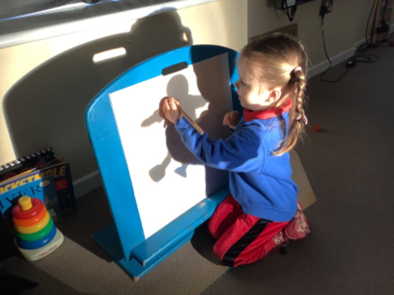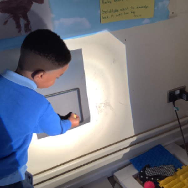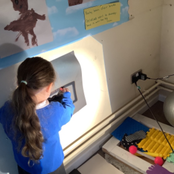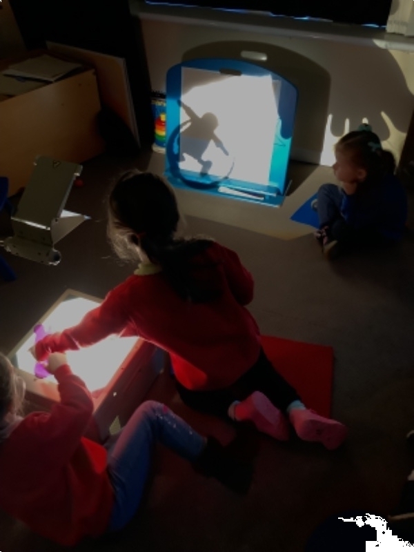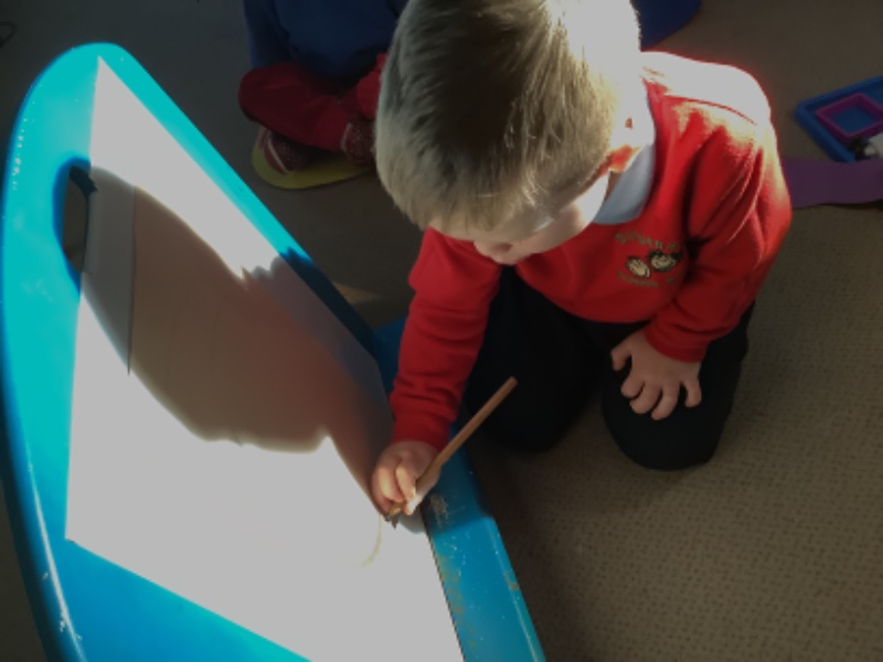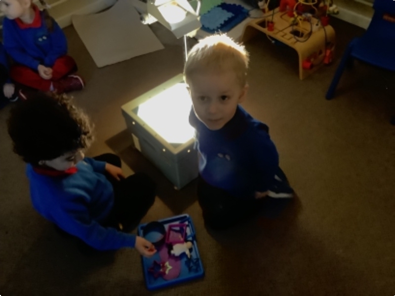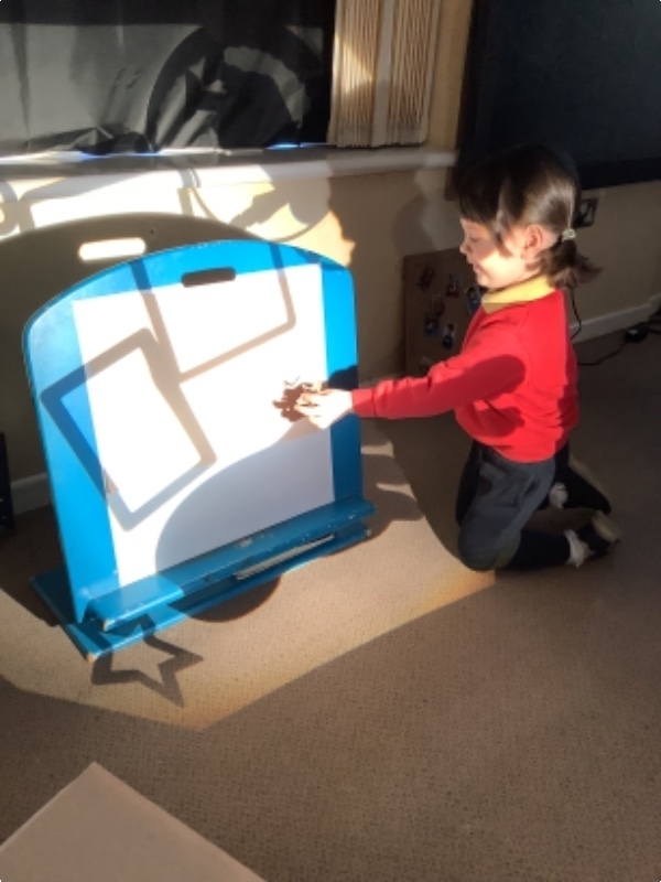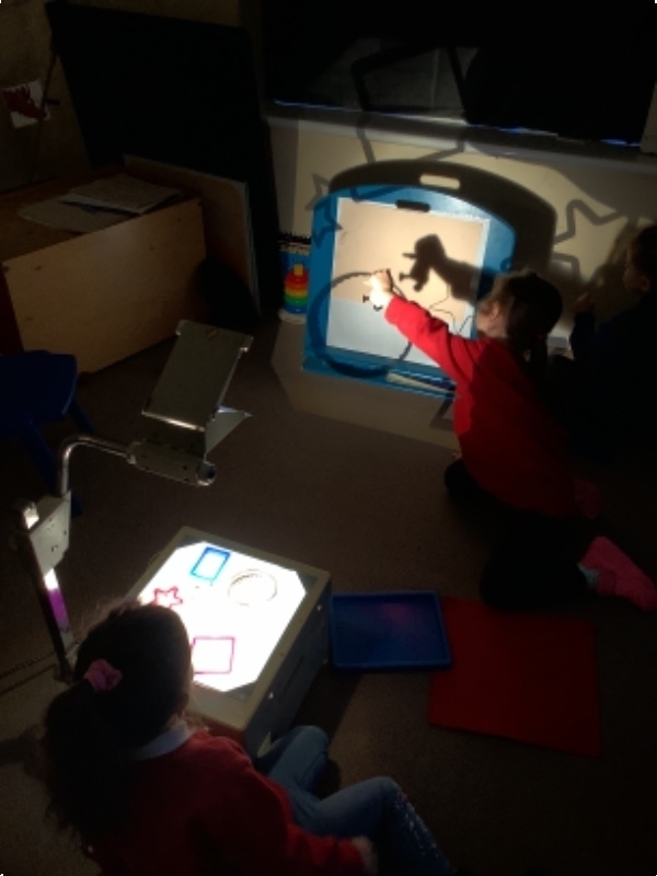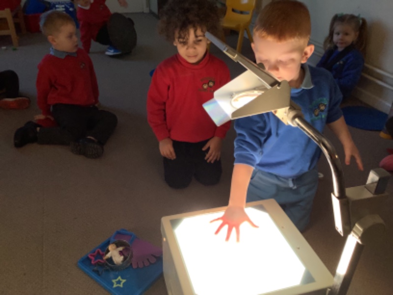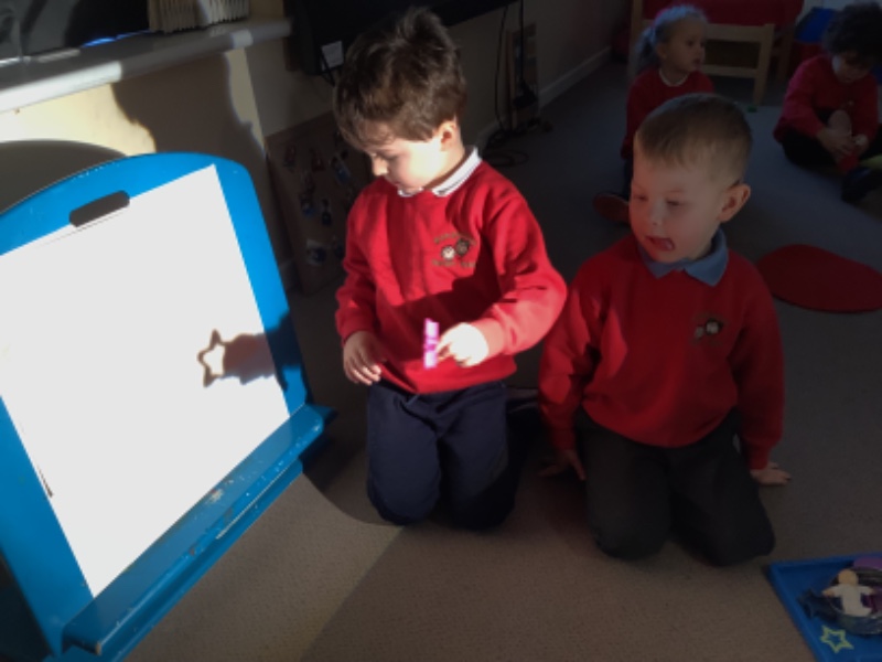 Nursery 2 have turned very scientific and have been learning about shadows. We chased our shadows outside and used the projector in class to create shadows on the wall and draw round our own profiles.