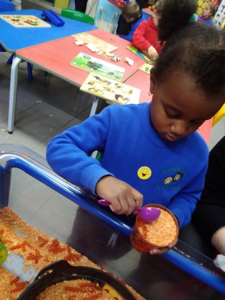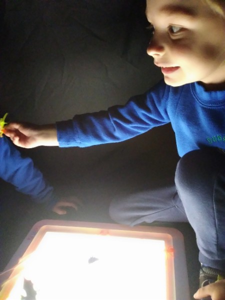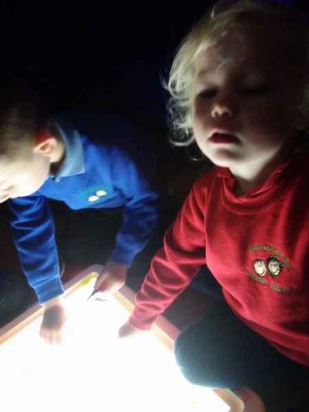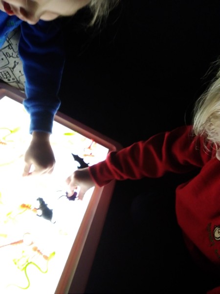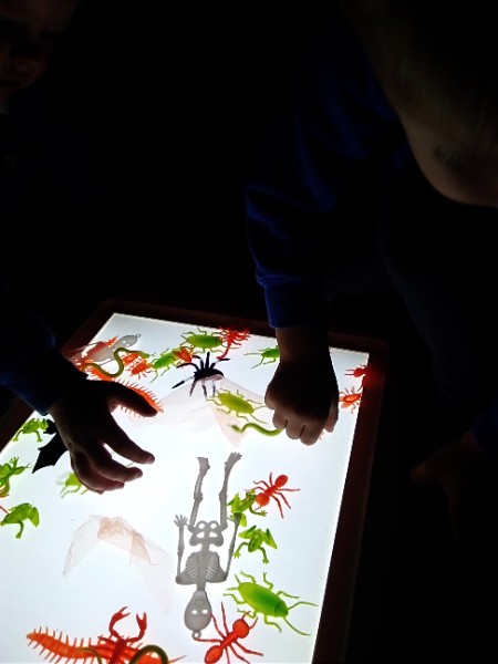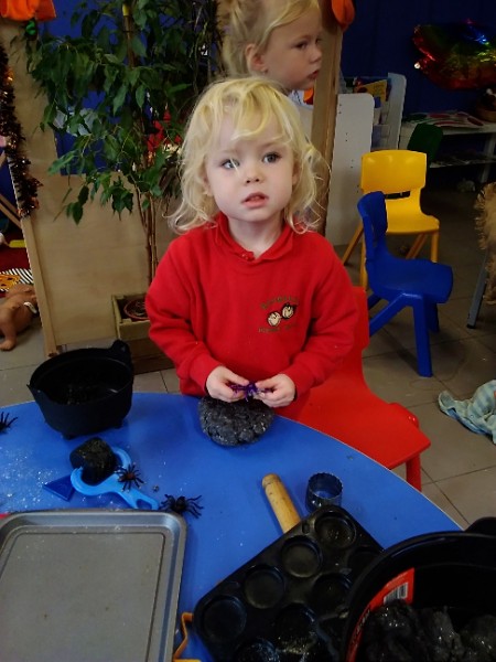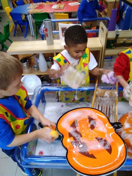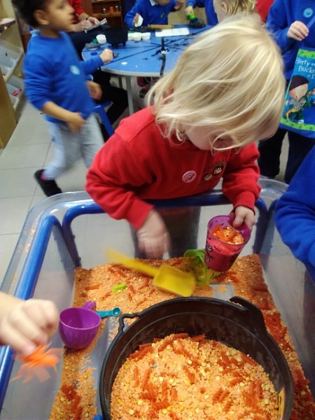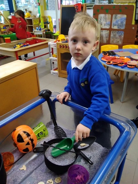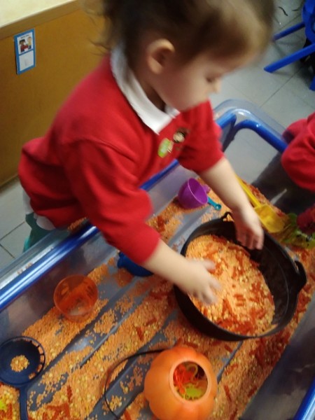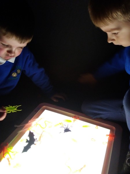 Mrs. Hudson's Class got all spooky for Halloween. The children explored the light box and some spooky creatures in the blackout tent. They also loved scooping and exploring rice, pasta and lentils with their senses.