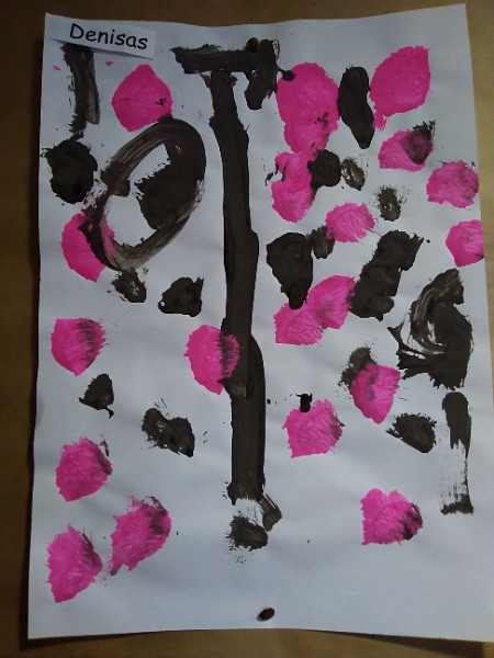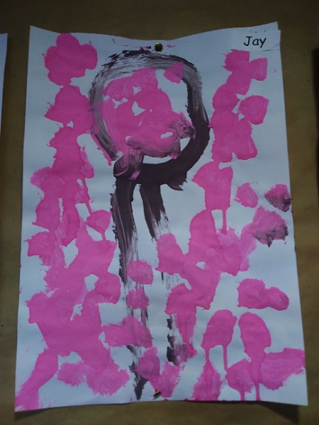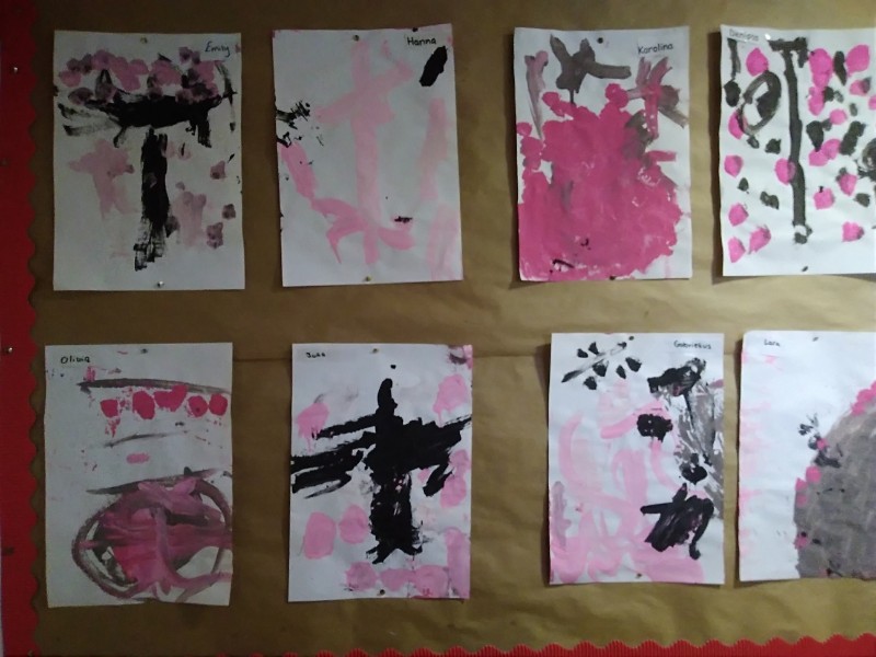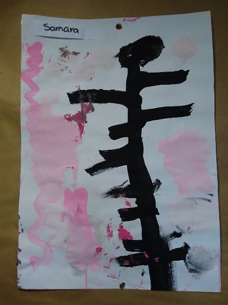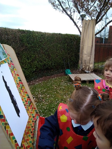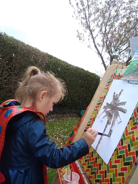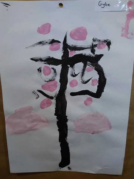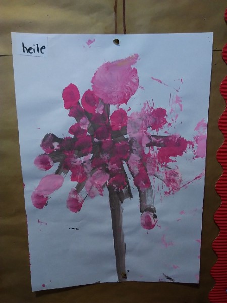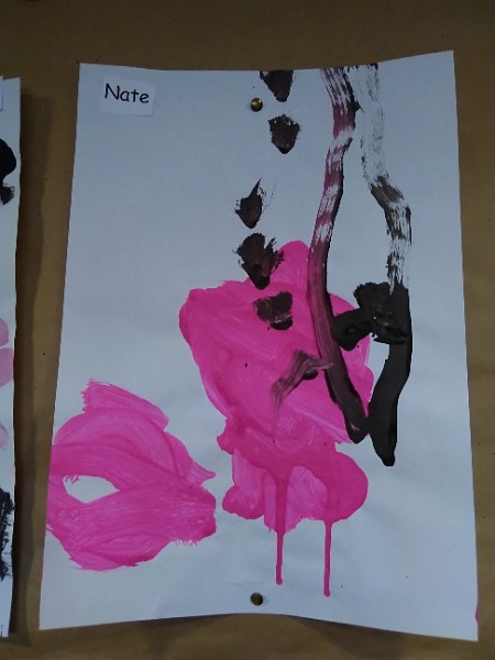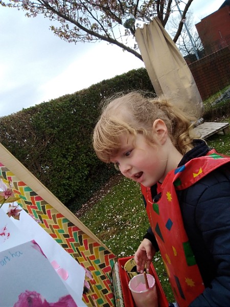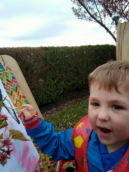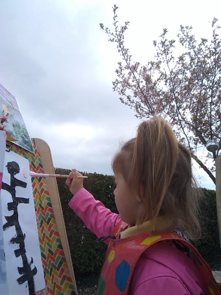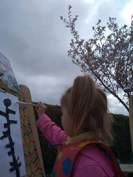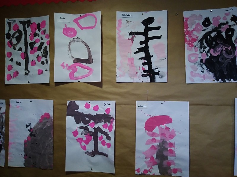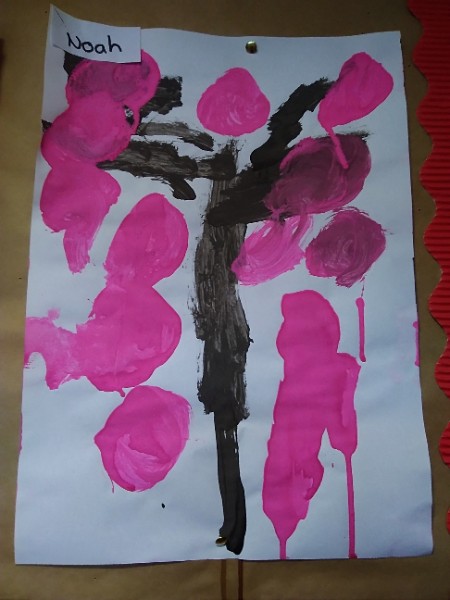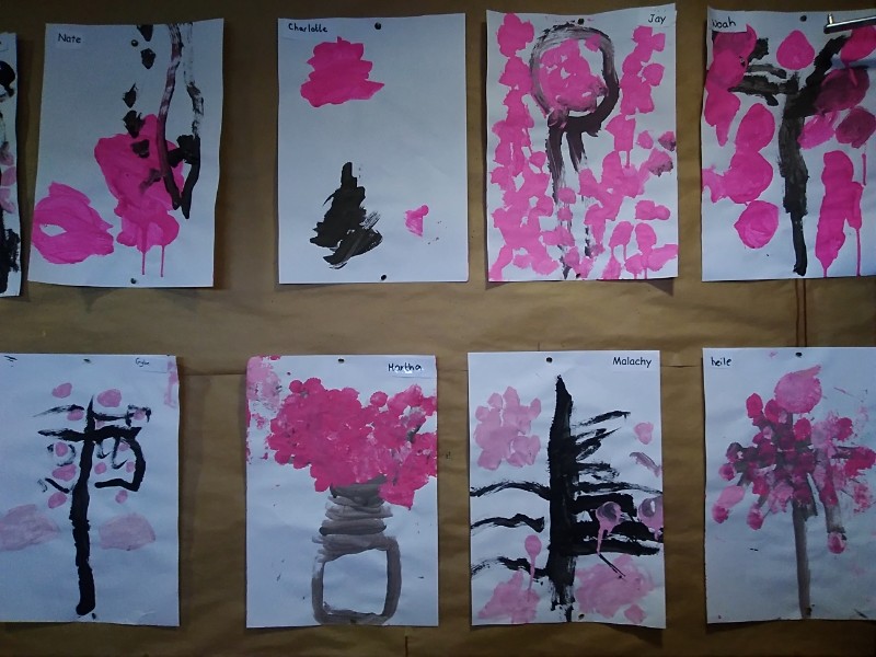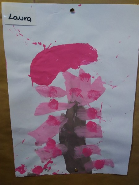 Mrs. Hudson's class painted pictures of the cherry tree in the Nursery garden.