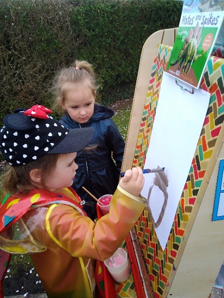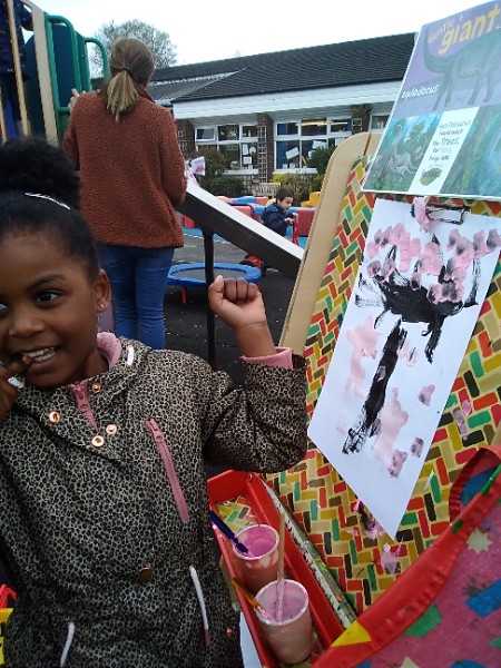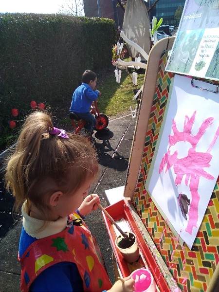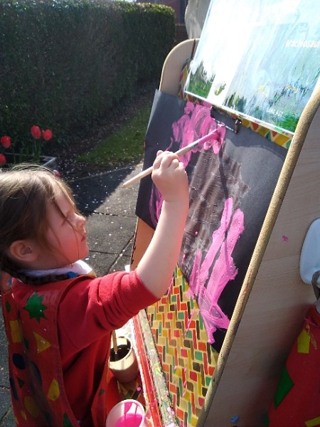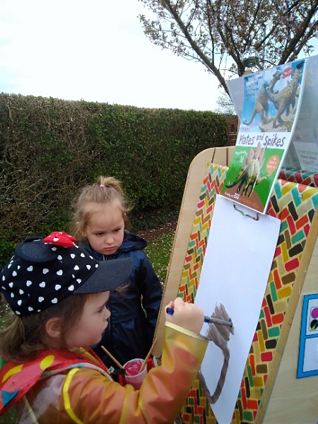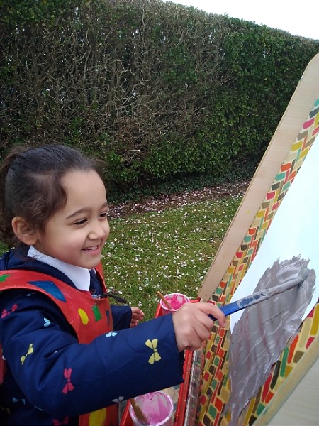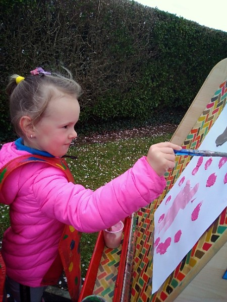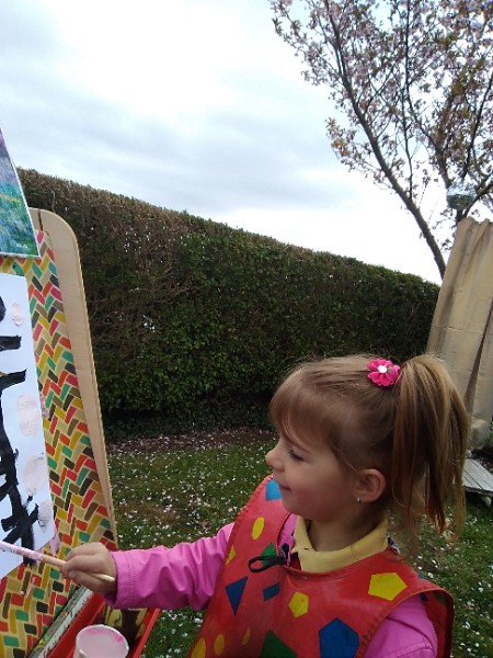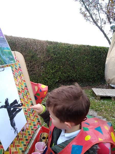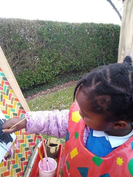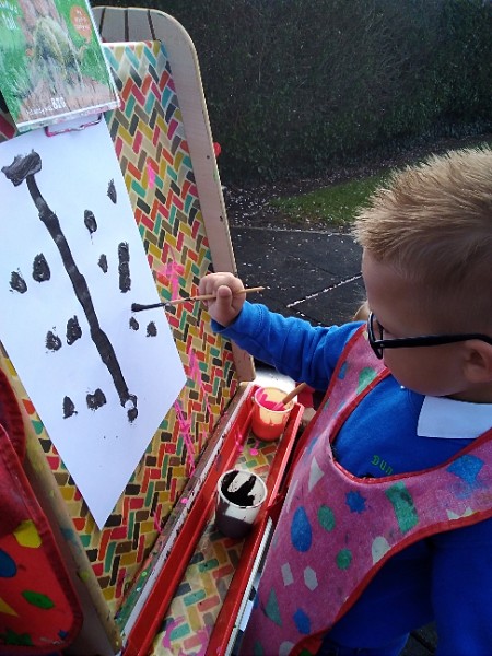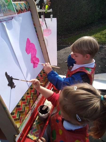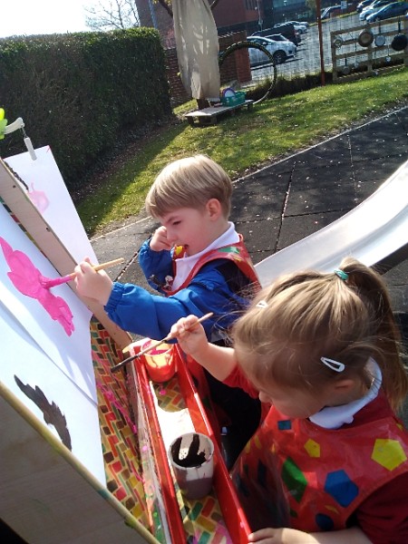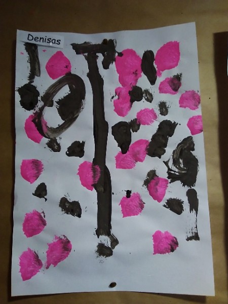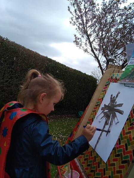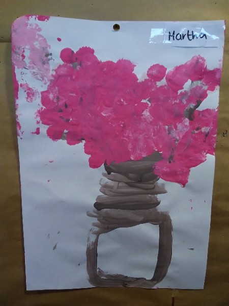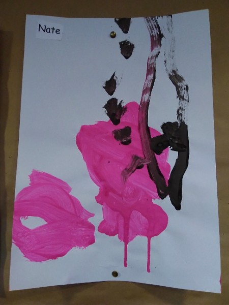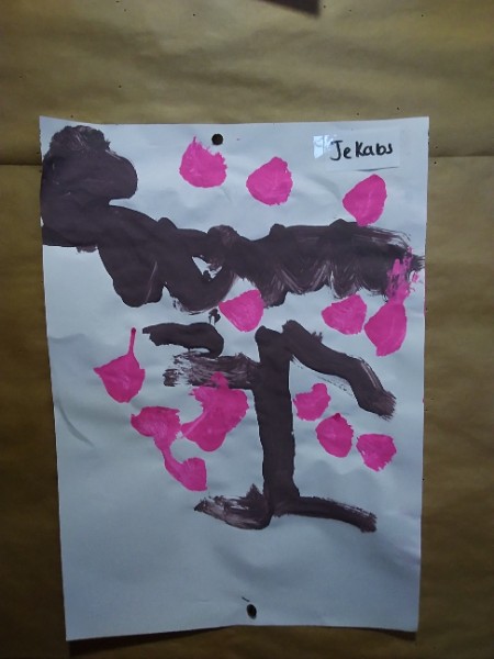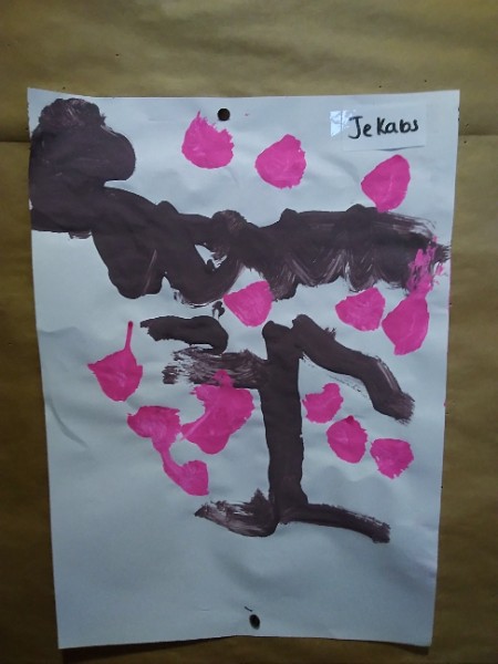 Mrs. Hudson's class painted pictures of the cherry tree in the Nursery garden.