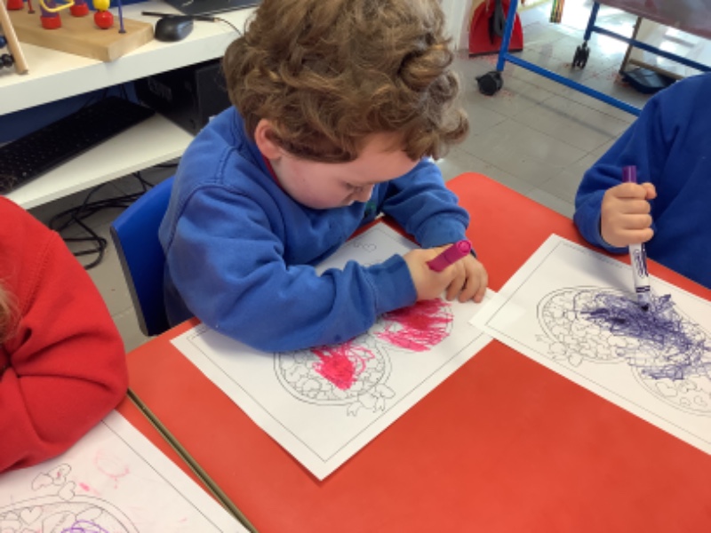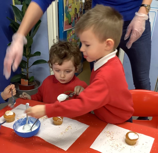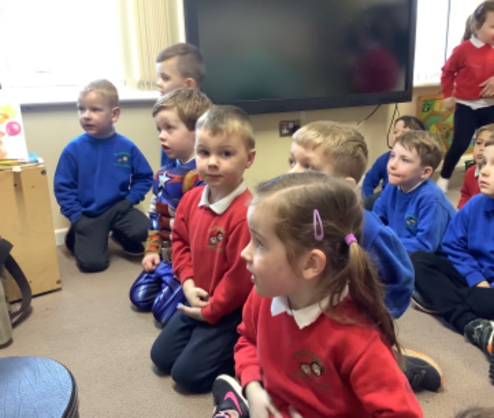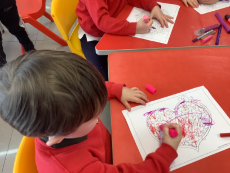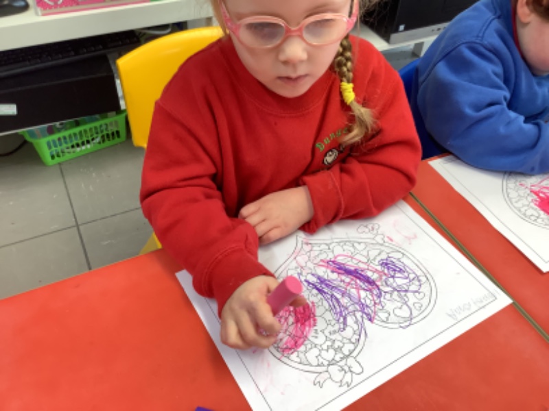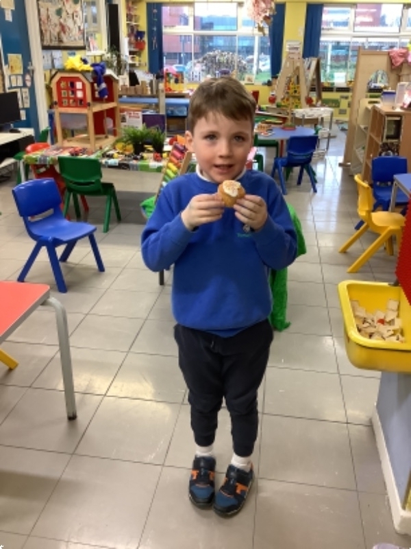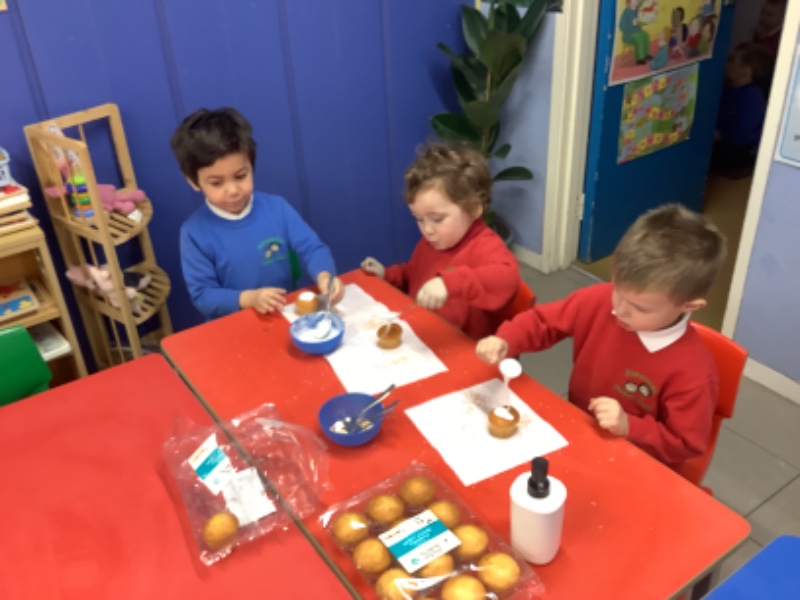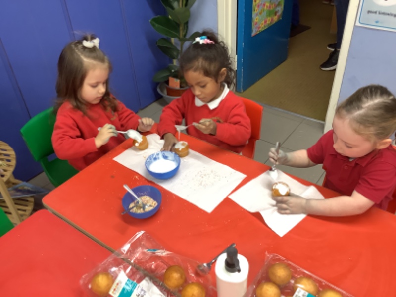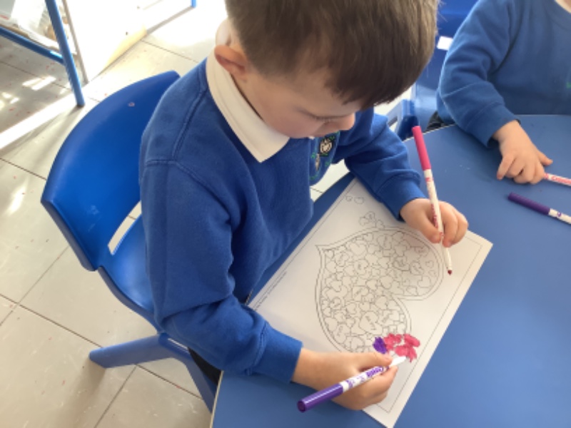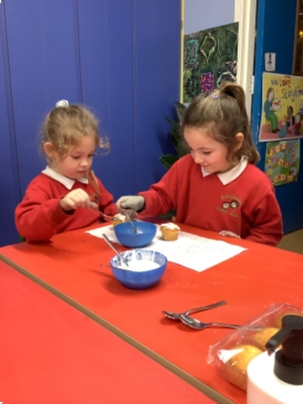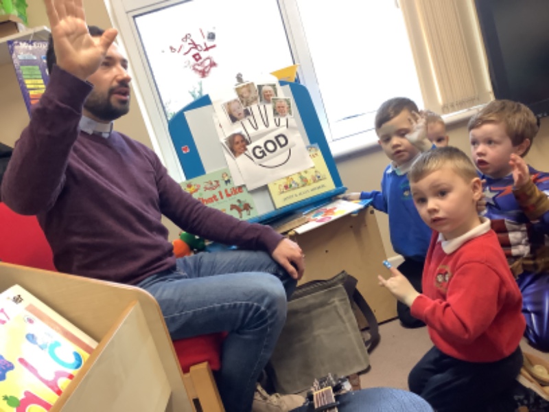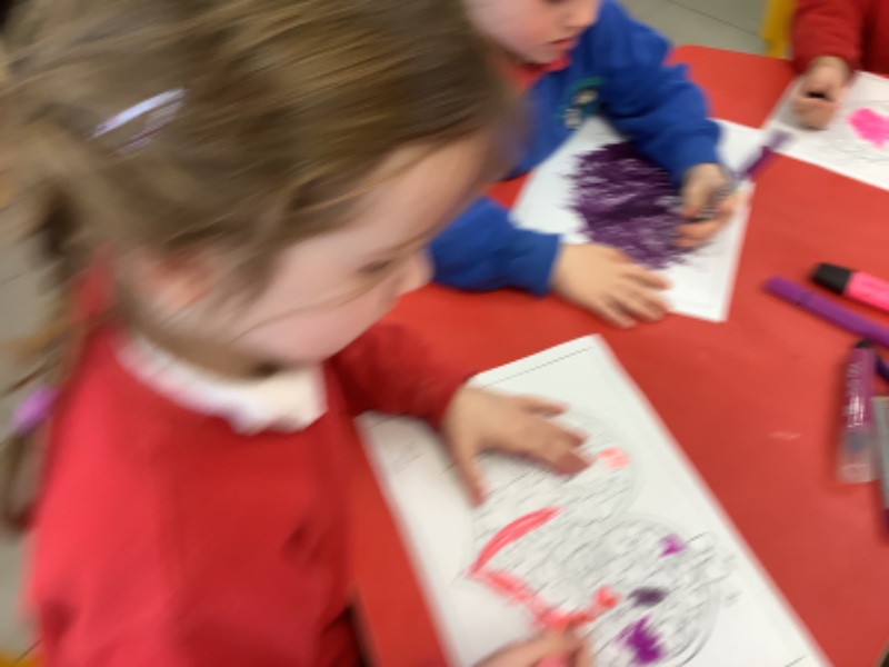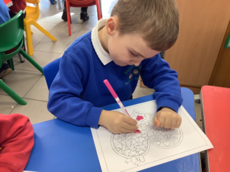 Lots of fun on St. Valentine's Day. We had chocolate mousse and strawberries for snack. We read the story of Love Monster and made some puppets of the Love Monster. We made St. Valentine's cupcakes. Rev. Topley from Drumglass came to tell us all about being loved by our family. And to finish the day we had a St. Valentines Day disco!