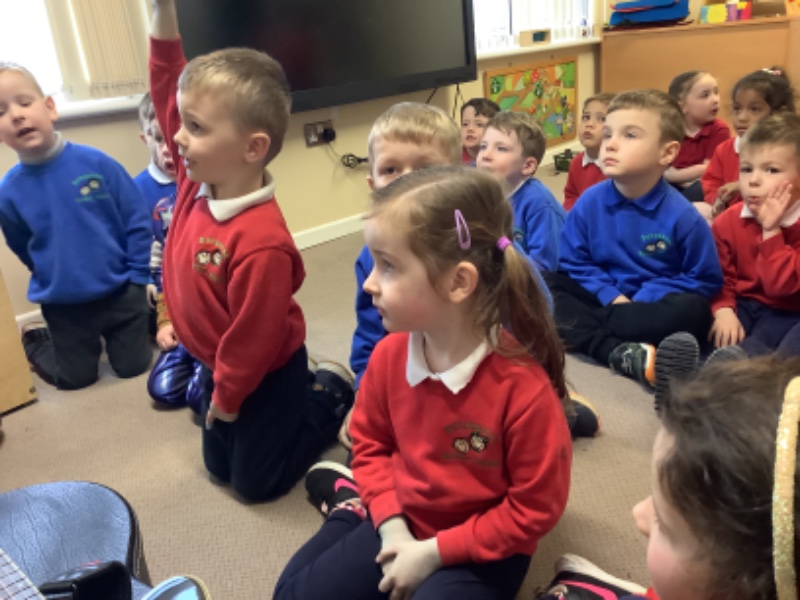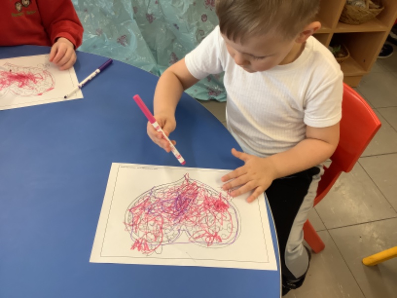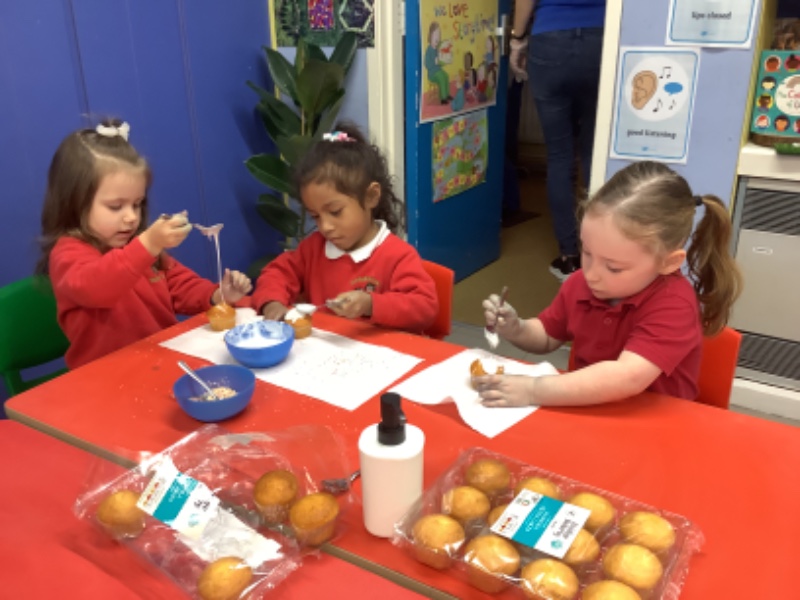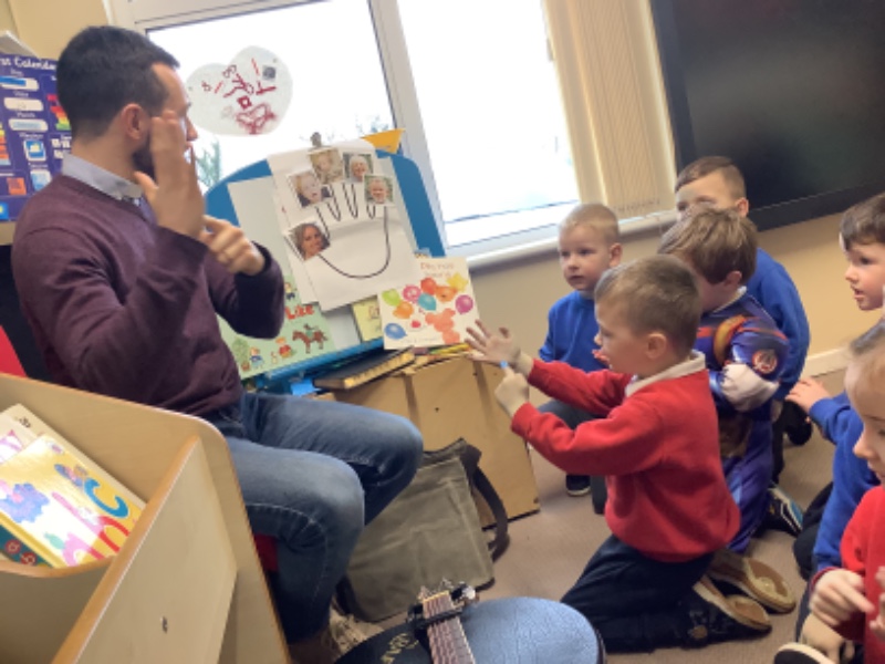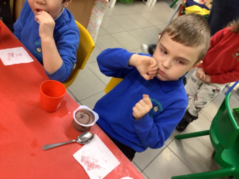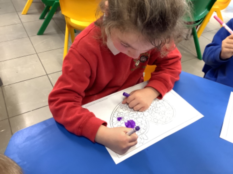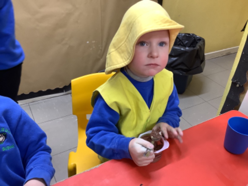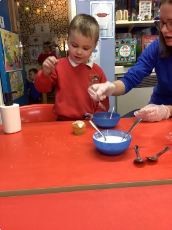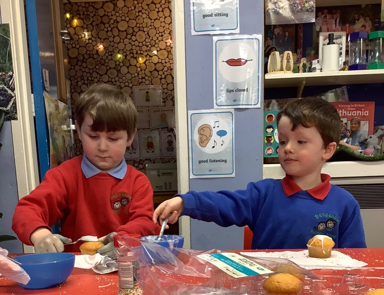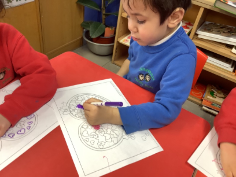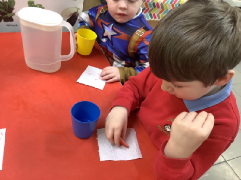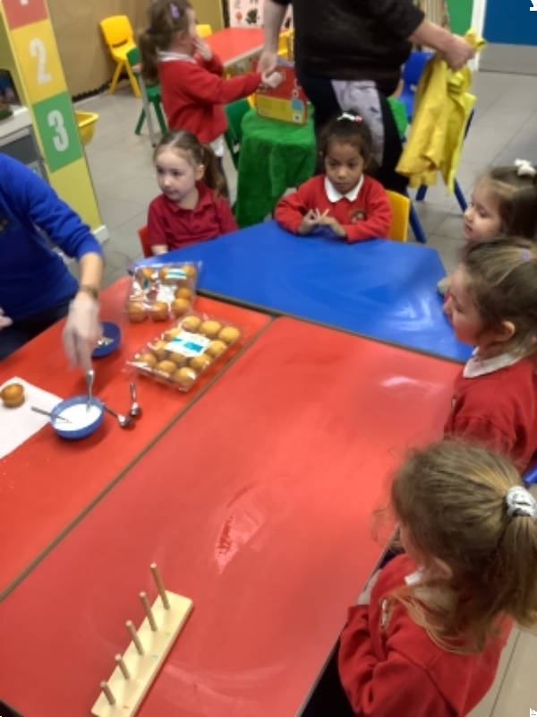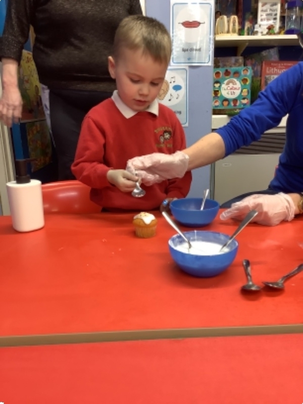 Lots of fun on St. Valentine's Day. We had chocolate mousse and strawberries for snack. We read the story of Love Monster and made some puppets of the Love Monster. We made St. Valentine's cupcakes. Rev. Topley from Drumglass came to tell us all about being loved by our family. And to finish the day we had a St. Valentines Day disco!