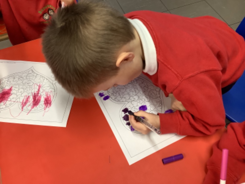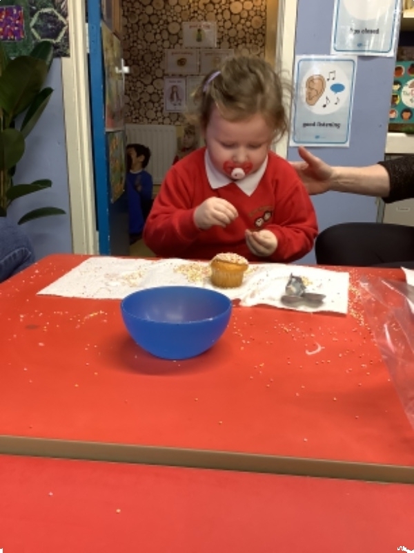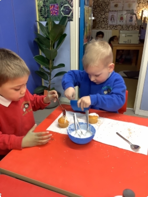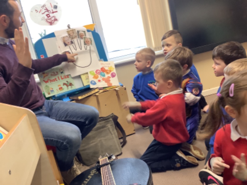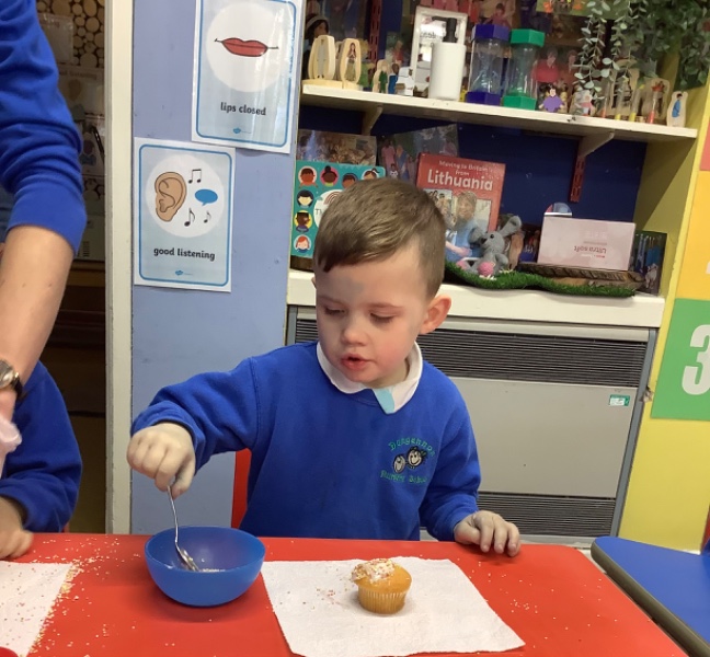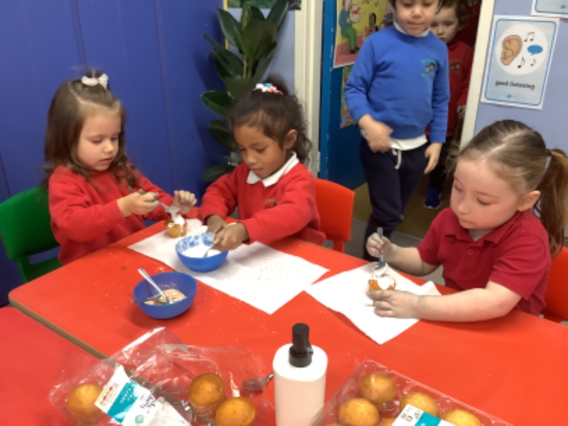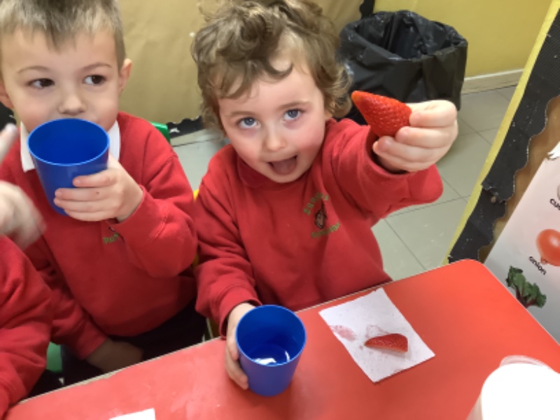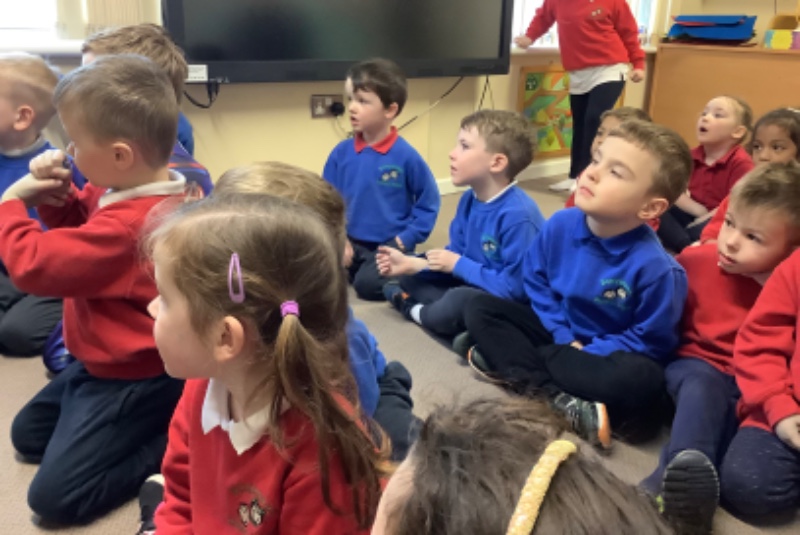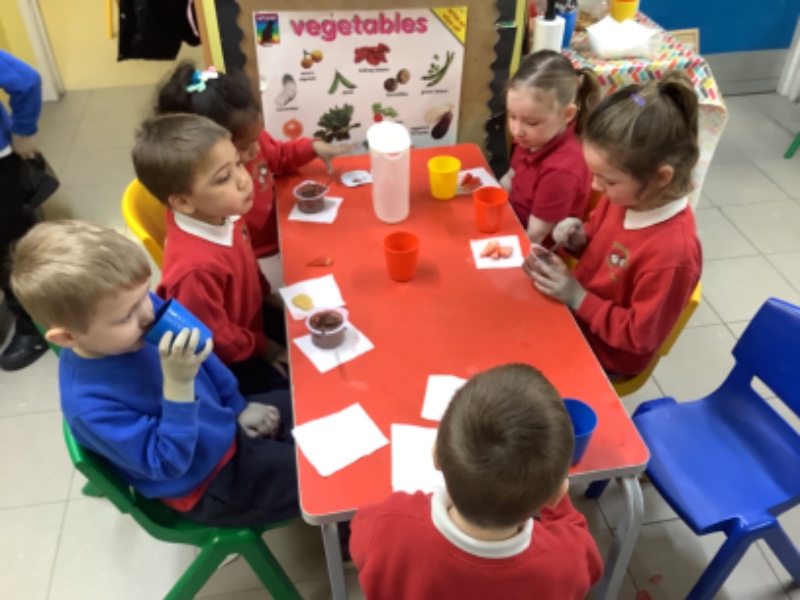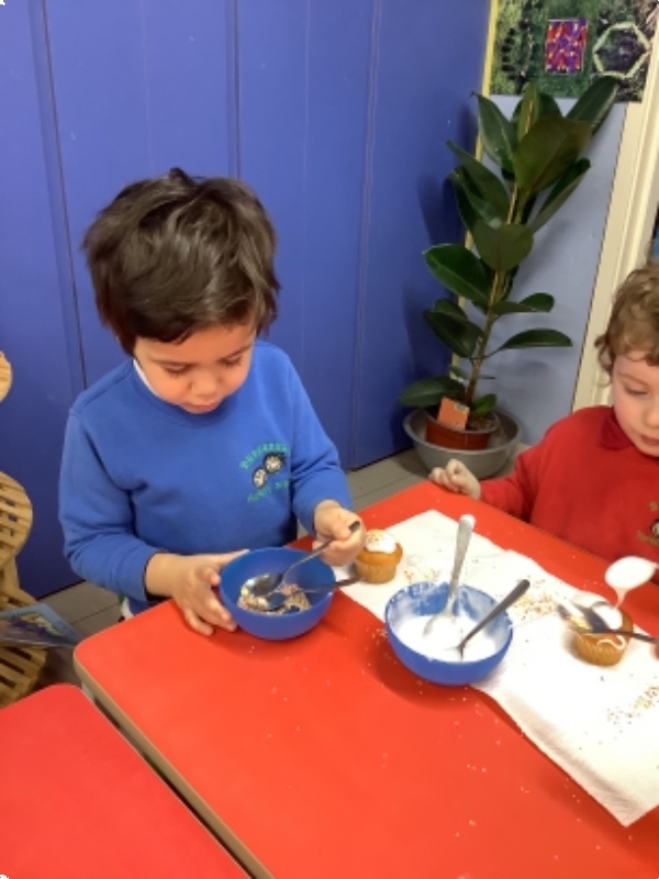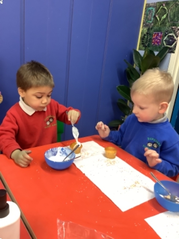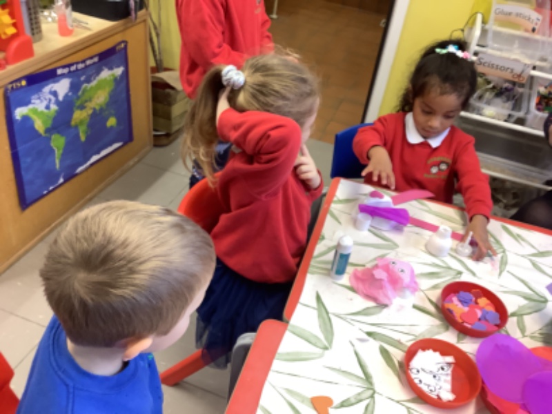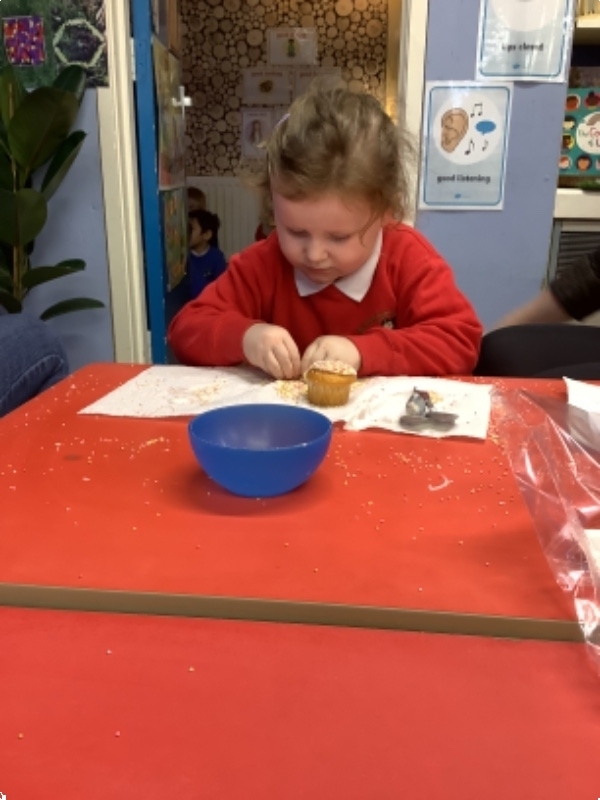 Lots of fun on St. Valentine's Day. We had chocolate mousse and strawberries for snack. We read the story of Love Monster and made some puppets of the Love Monster. We made St. Valentine's cupcakes. Rev. Topley from Drumglass came to tell us all about being loved by our family. And to finish the day we had a St. Valentines Day disco!