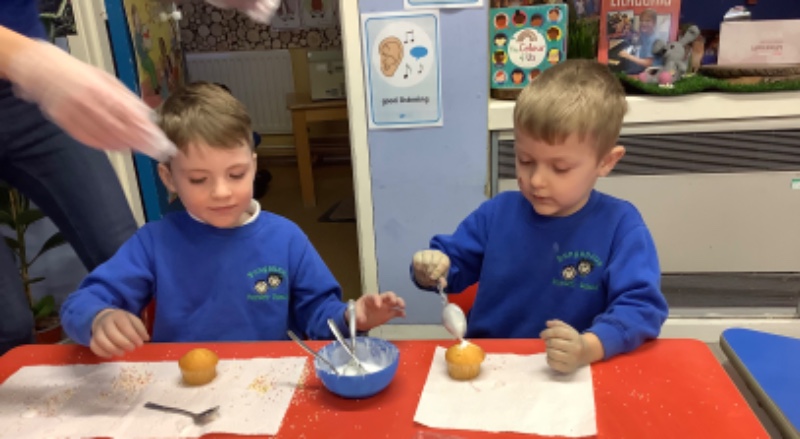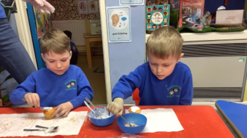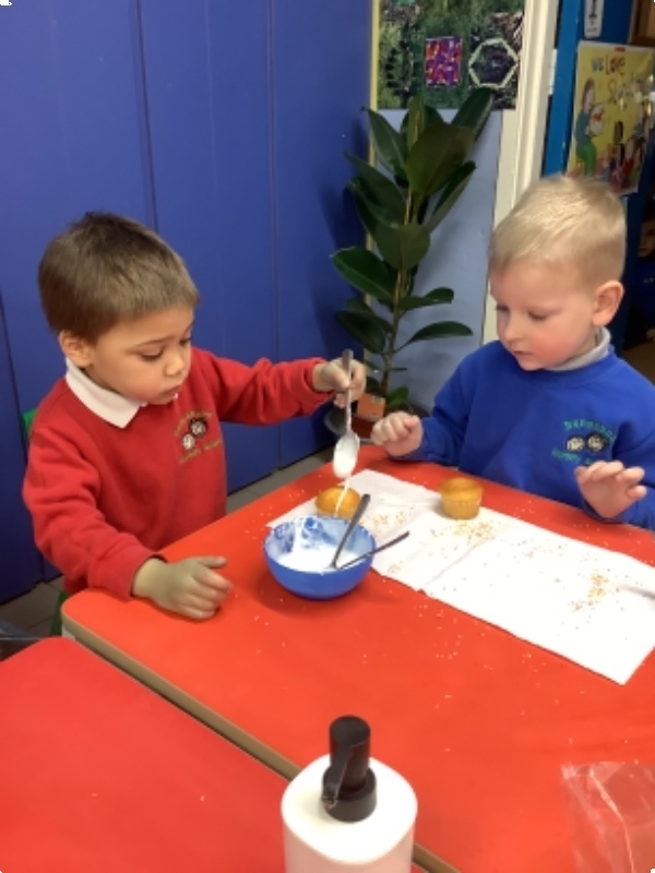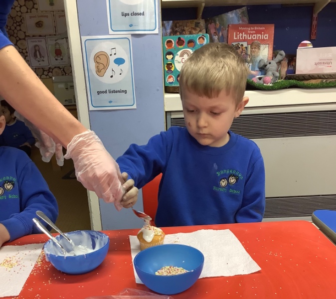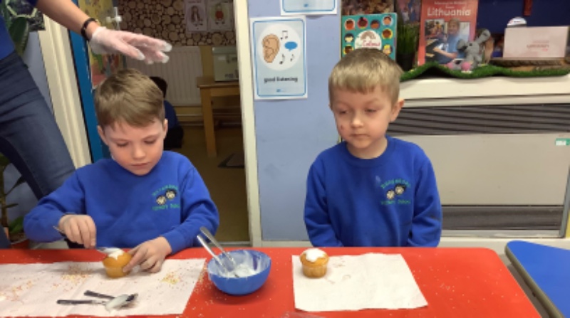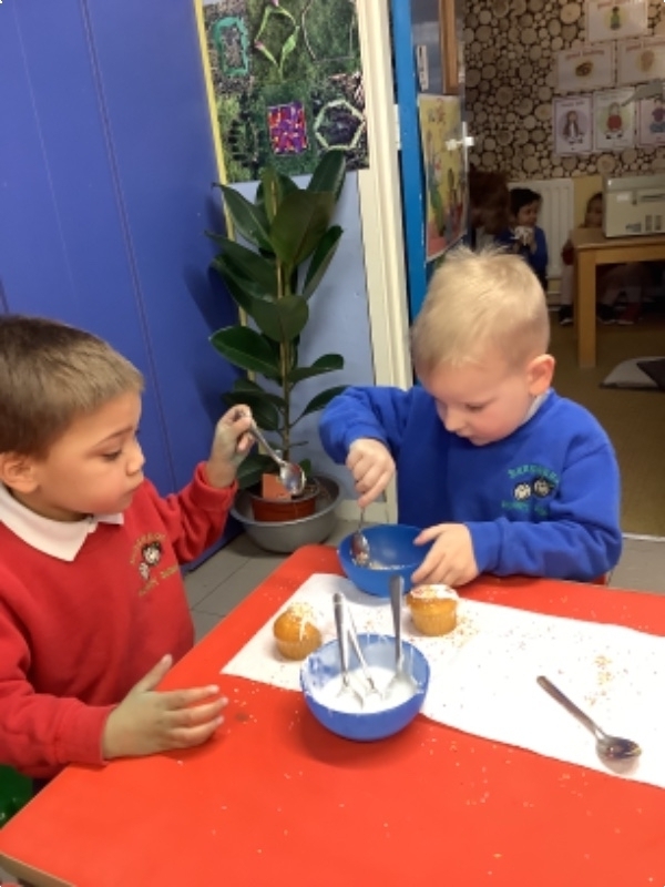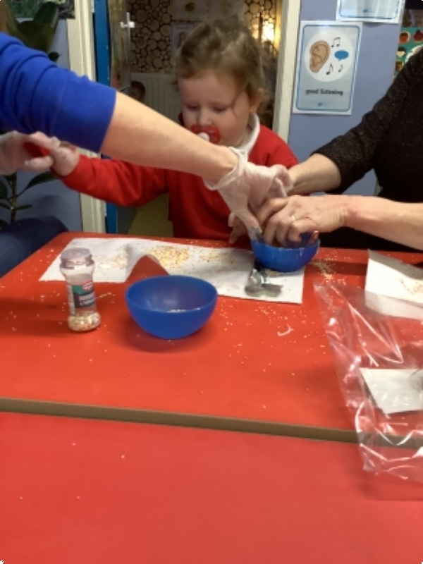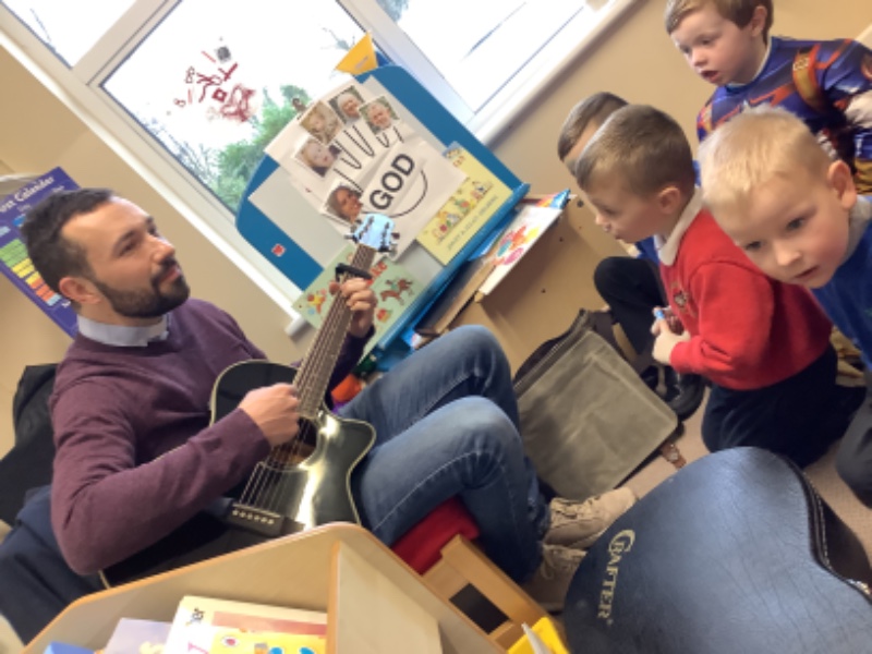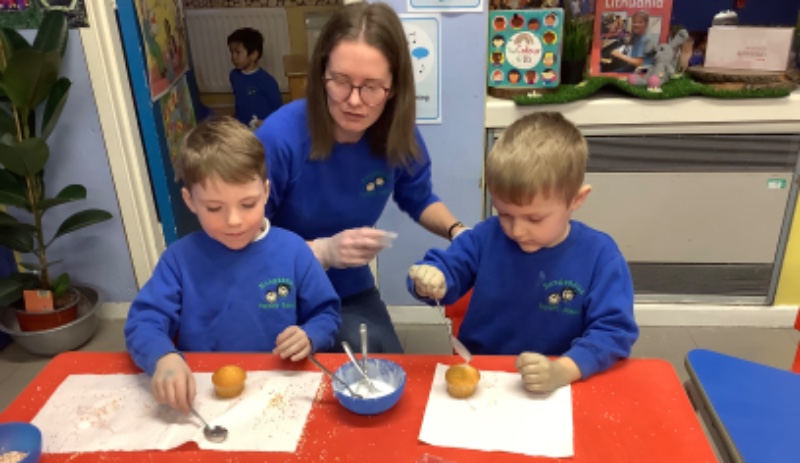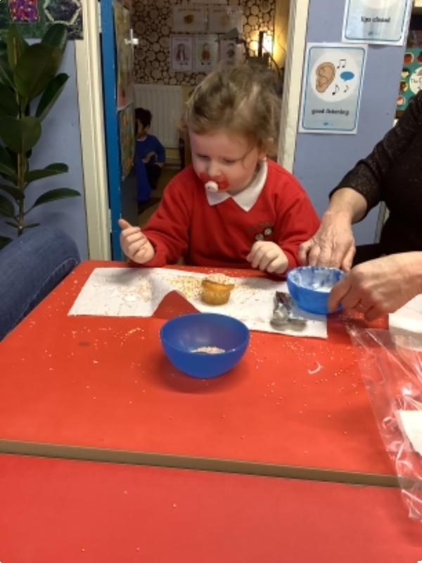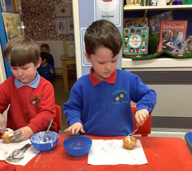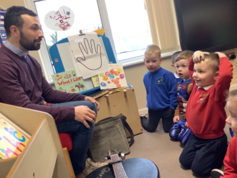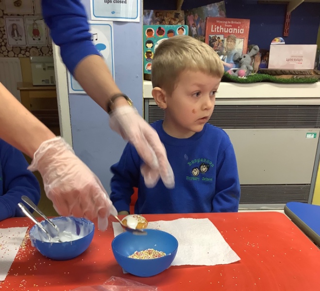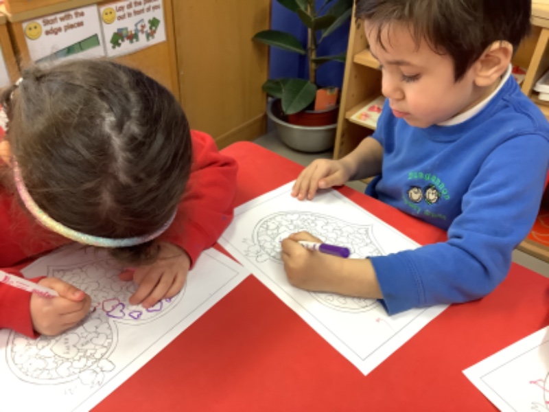Lots of fun on St. Valentine's Day. We had chocolate mousse and strawberries for snack. We read the story of Love Monster and made some puppets of the Love Monster. We made St. Valentine's cupcakes. Rev. Topley from Drumglass came to tell us all about being loved by our family. And to finish the day we had a St. Valentines Day disco!