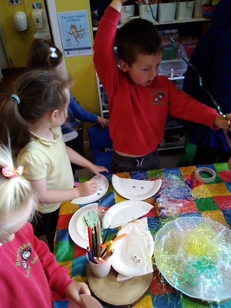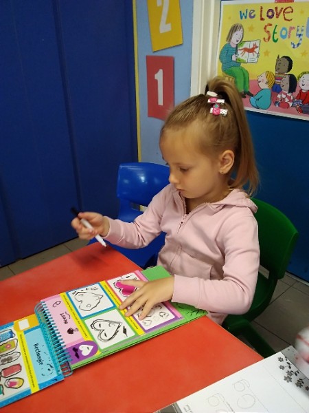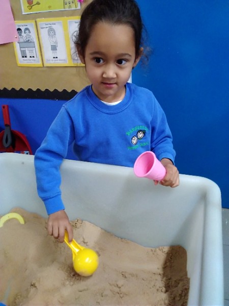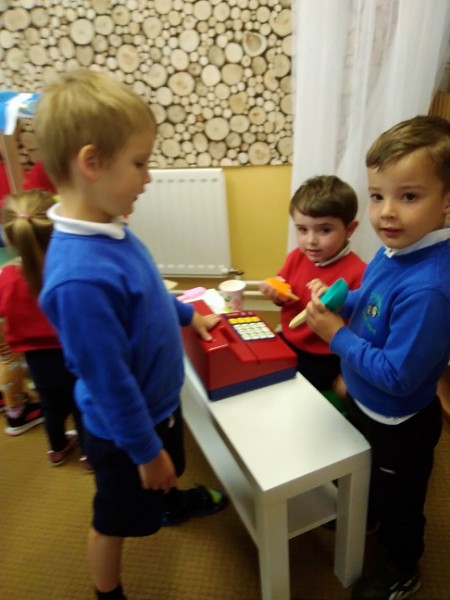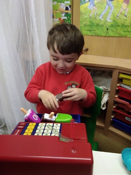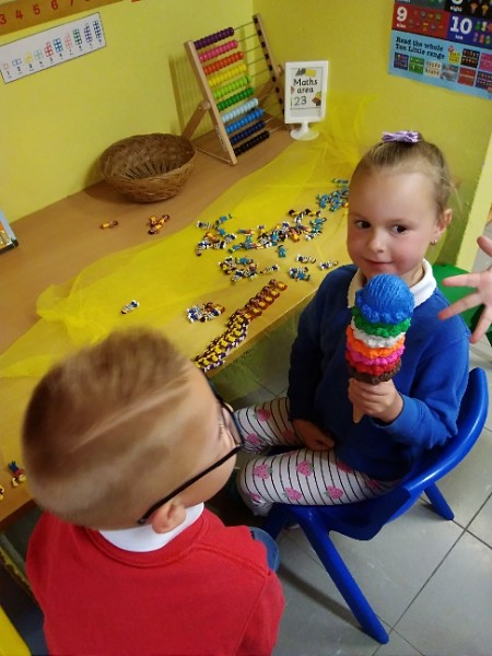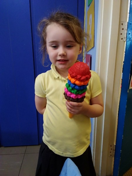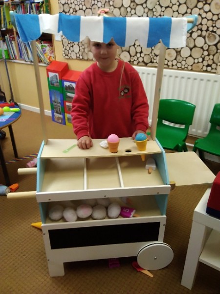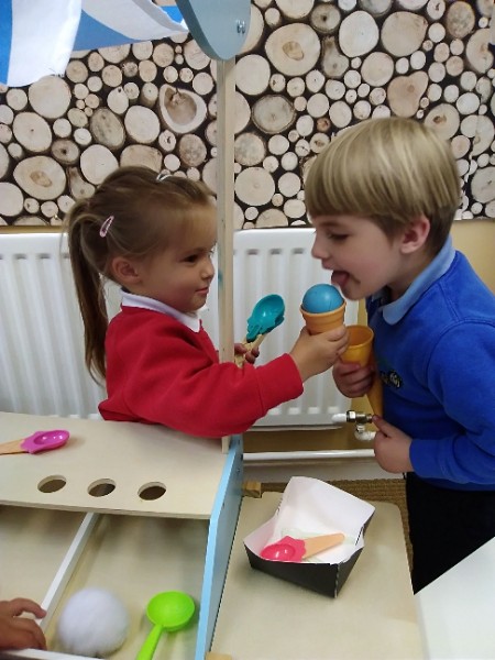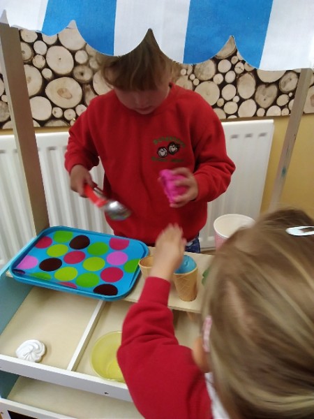 In Nursery the children have been thinking about Summer Time. They've been playing 'schools' and dressing up in school uniforms, writing and printing letters and numbers. They've set up an ice cream shop and experienced some fluffy foam sensory play.
