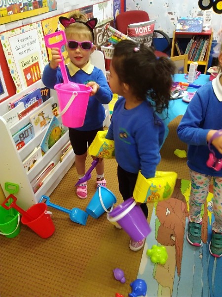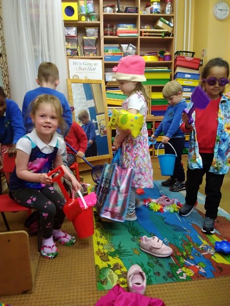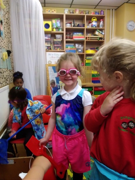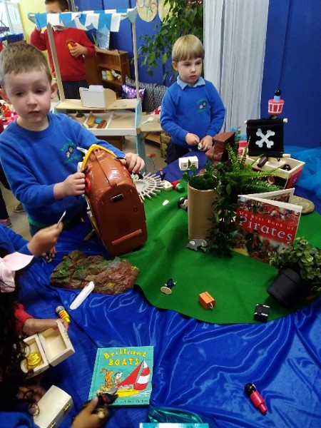 The children have been exploring the theme of Summer. They are enjoying fishing, flying planes, visiting the beach, bring pirates and digging for treasure.